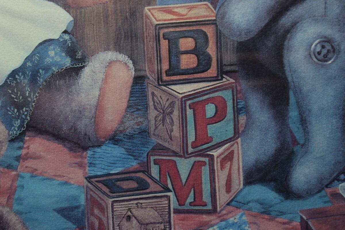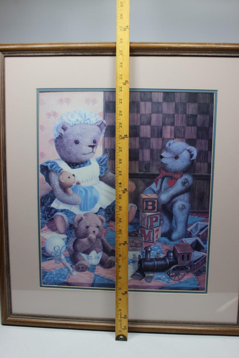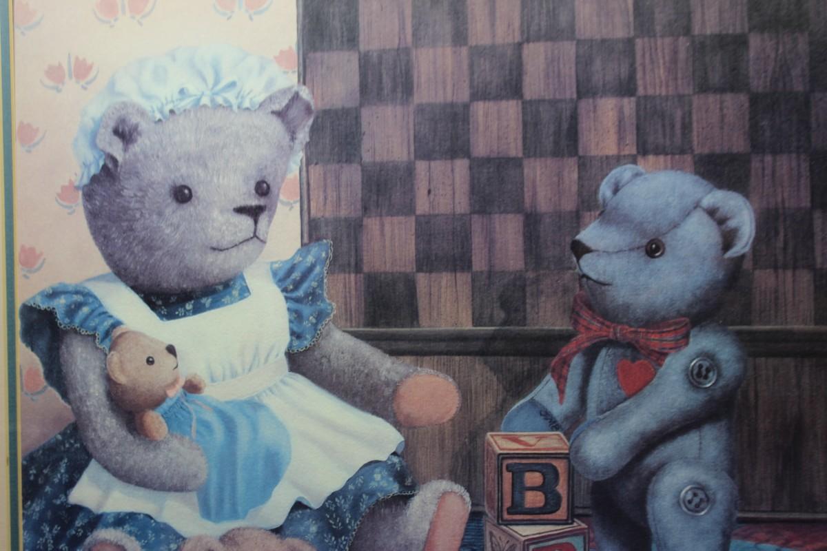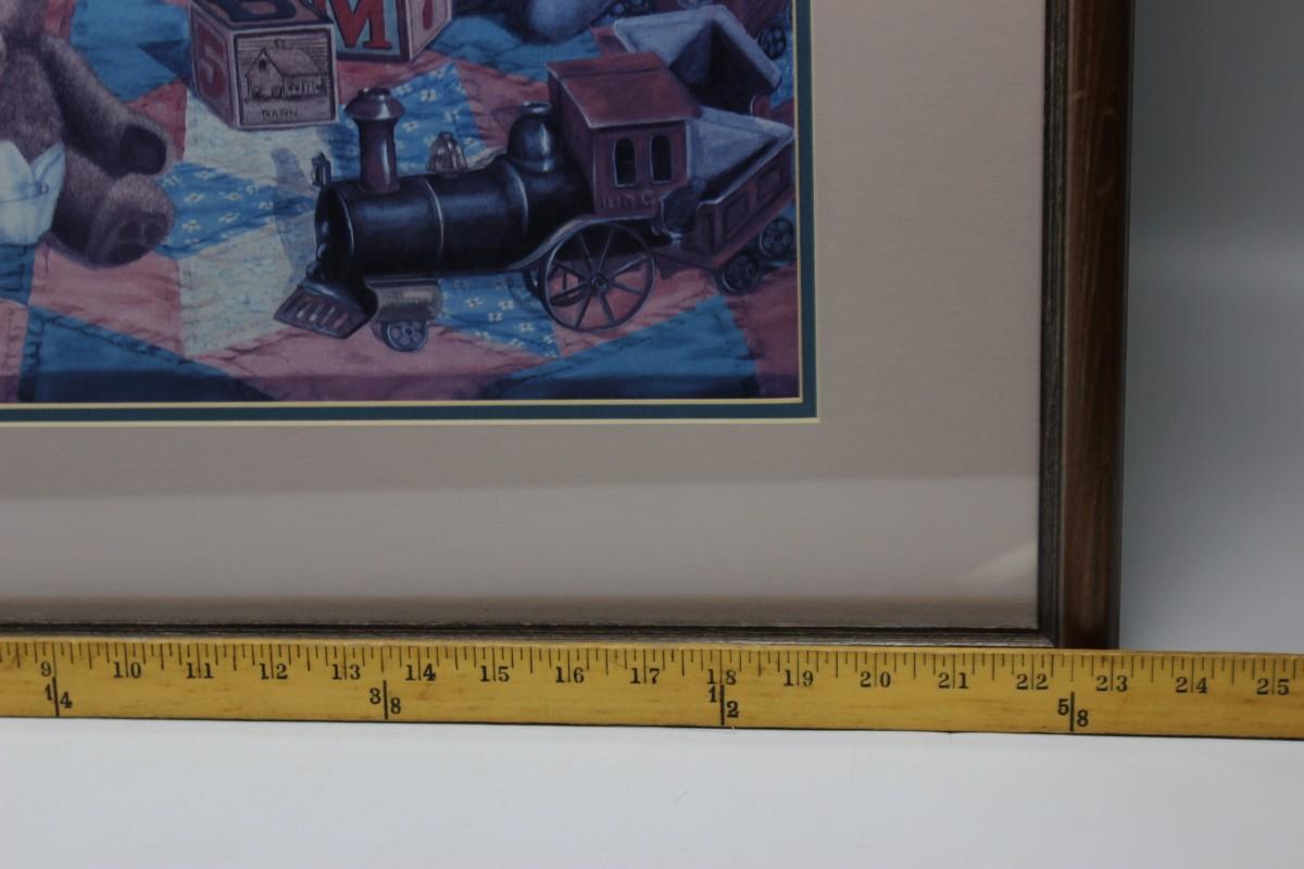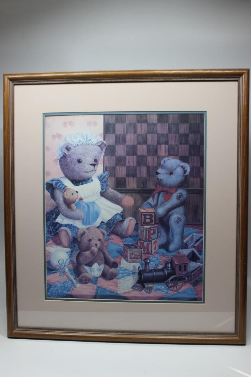Framed Art Print Teddy Bears and Toys. Large size, in good condition.
