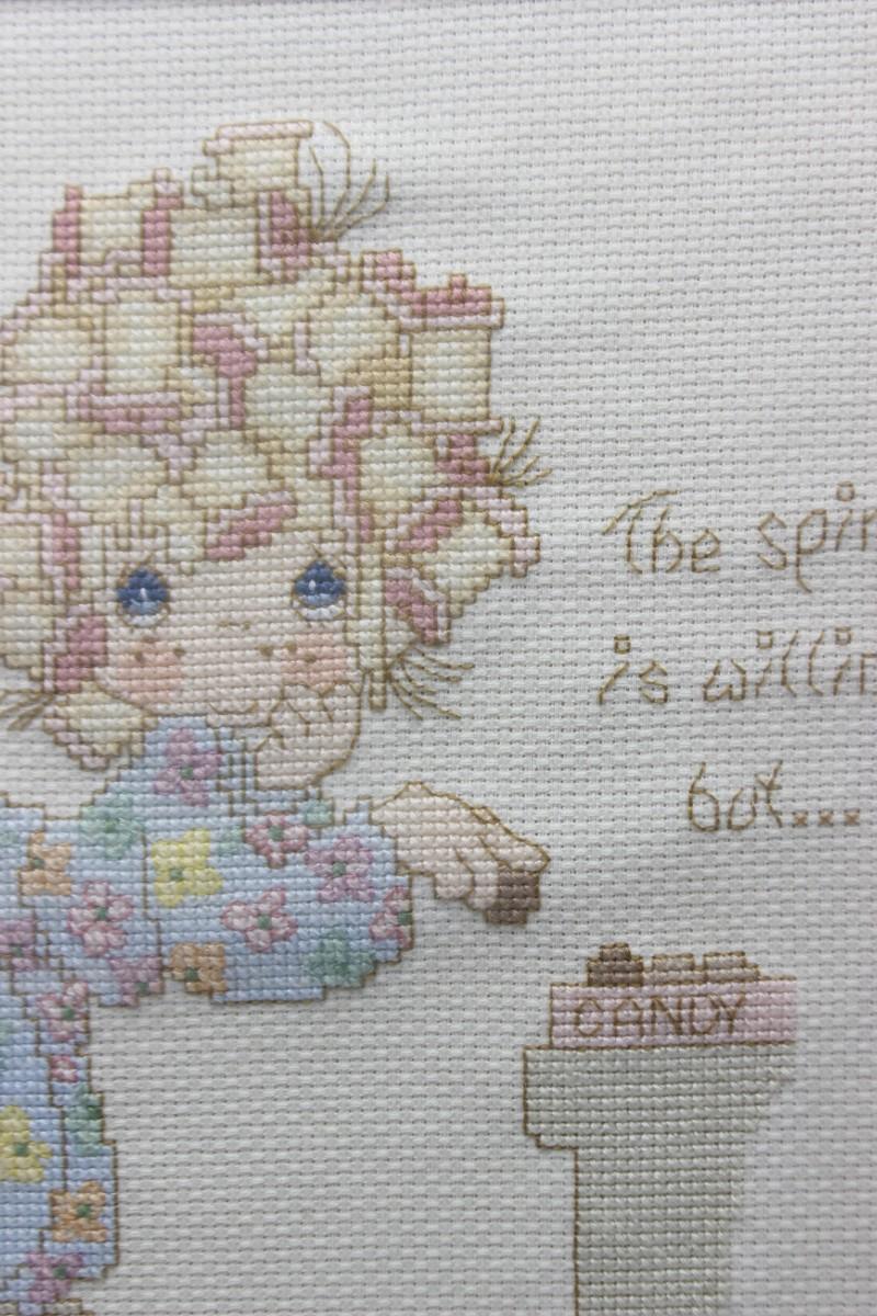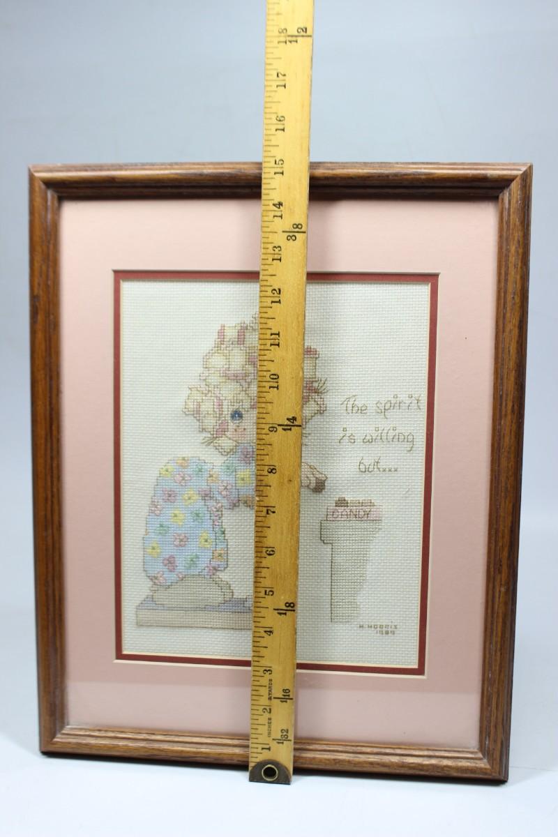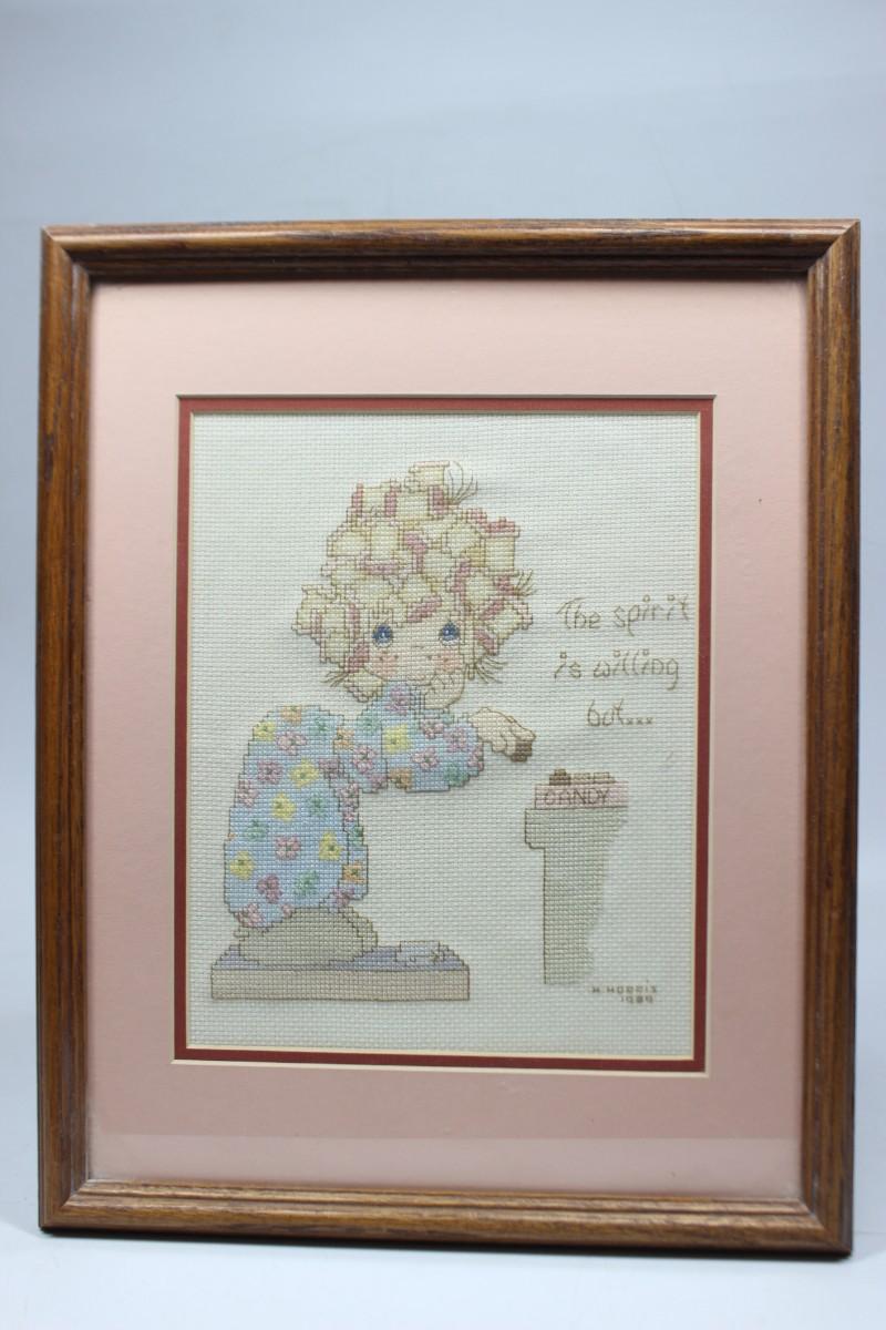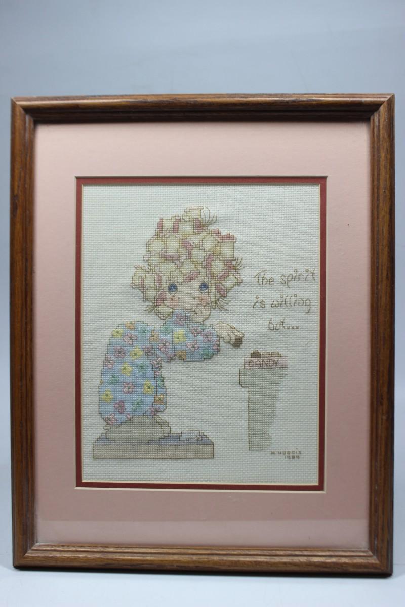 Vintage Retro Cross Stitch Needlepoint Wall Art The Spirit is Willing but...