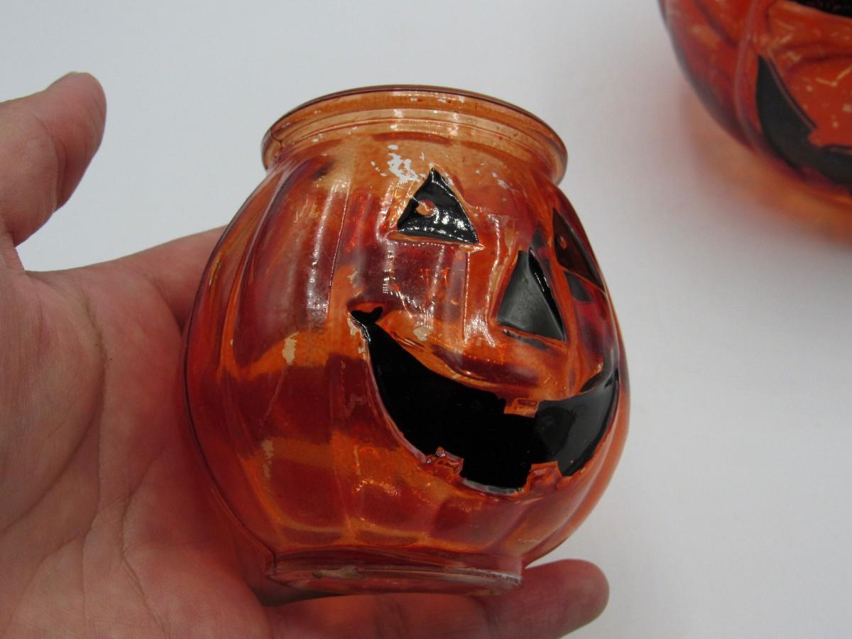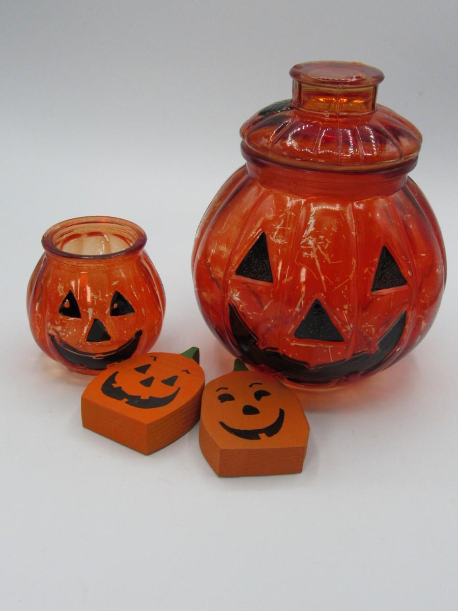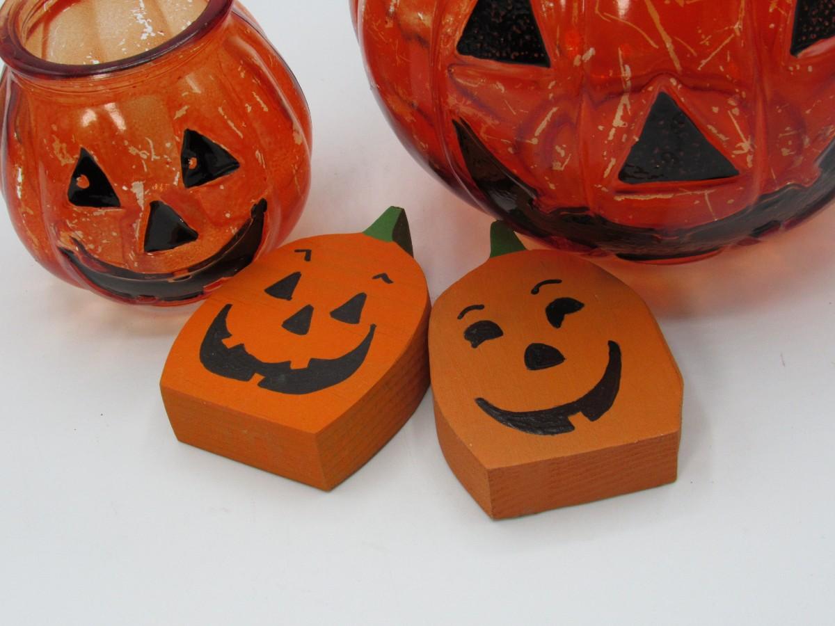 Retro Lot of Halloween Glass & Wood Pumpkin Holiday Decor
