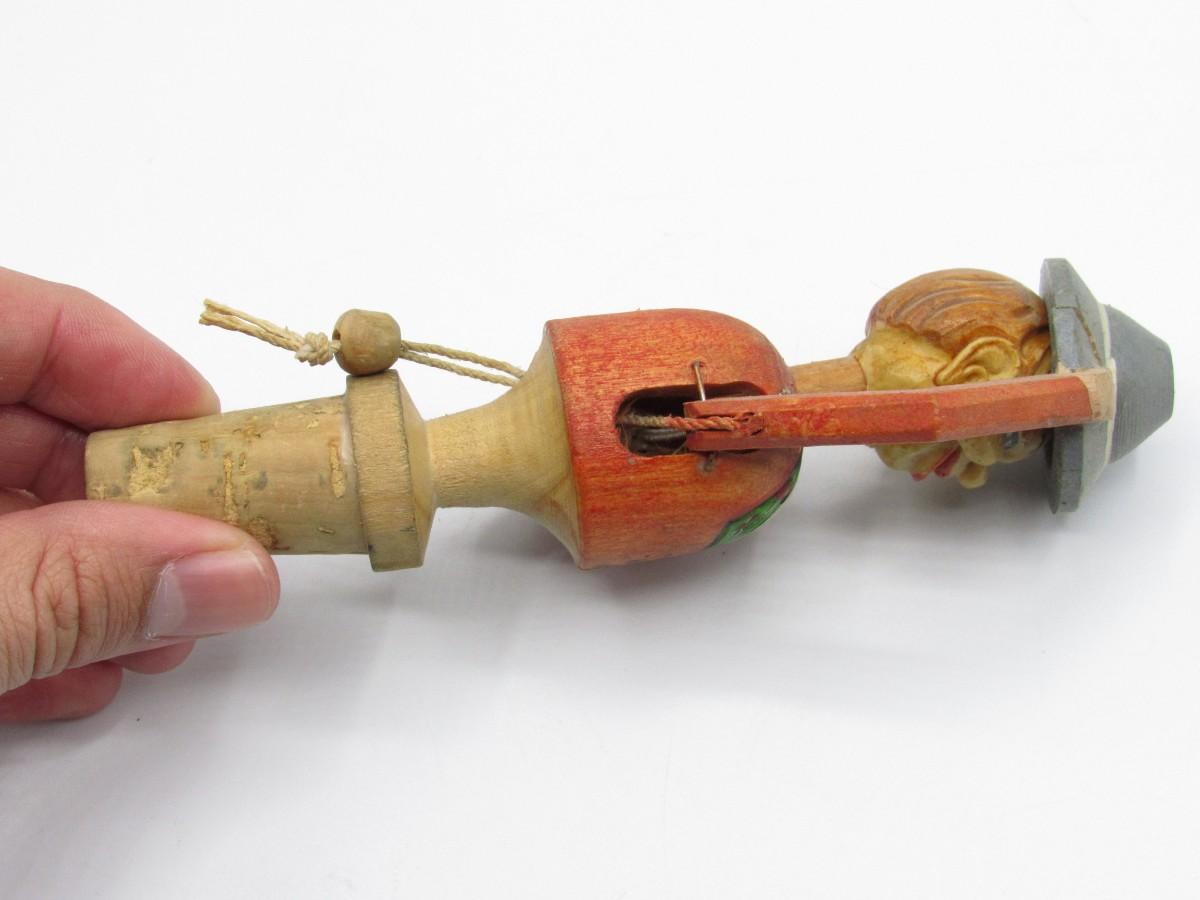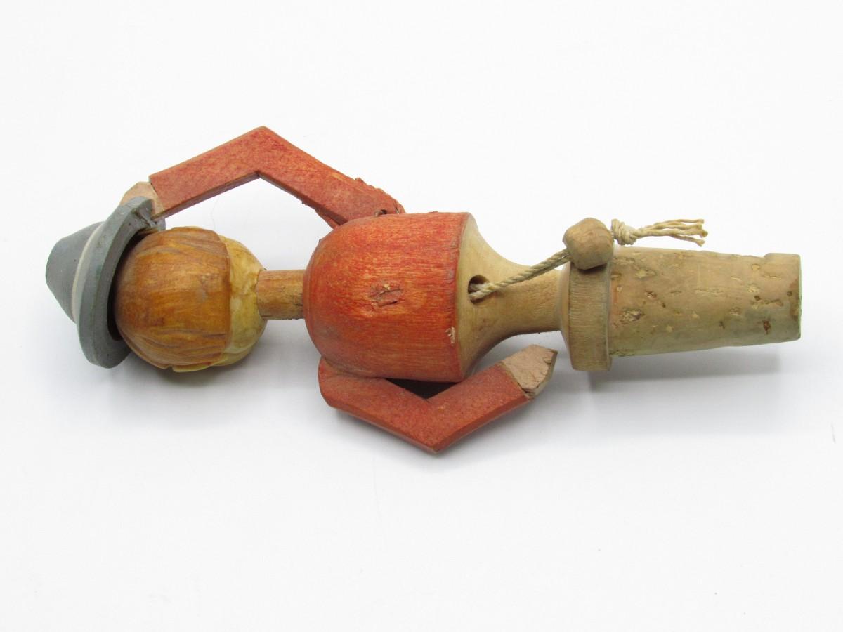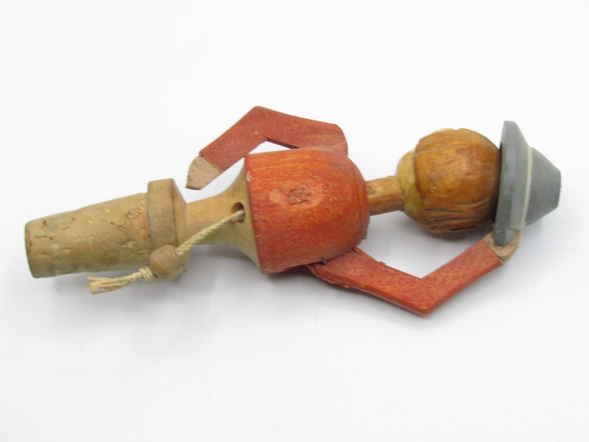 Vintage Carved Wood Novelty Wine Bottle Stopper Hat Tipping Gentleman Barware Figurine