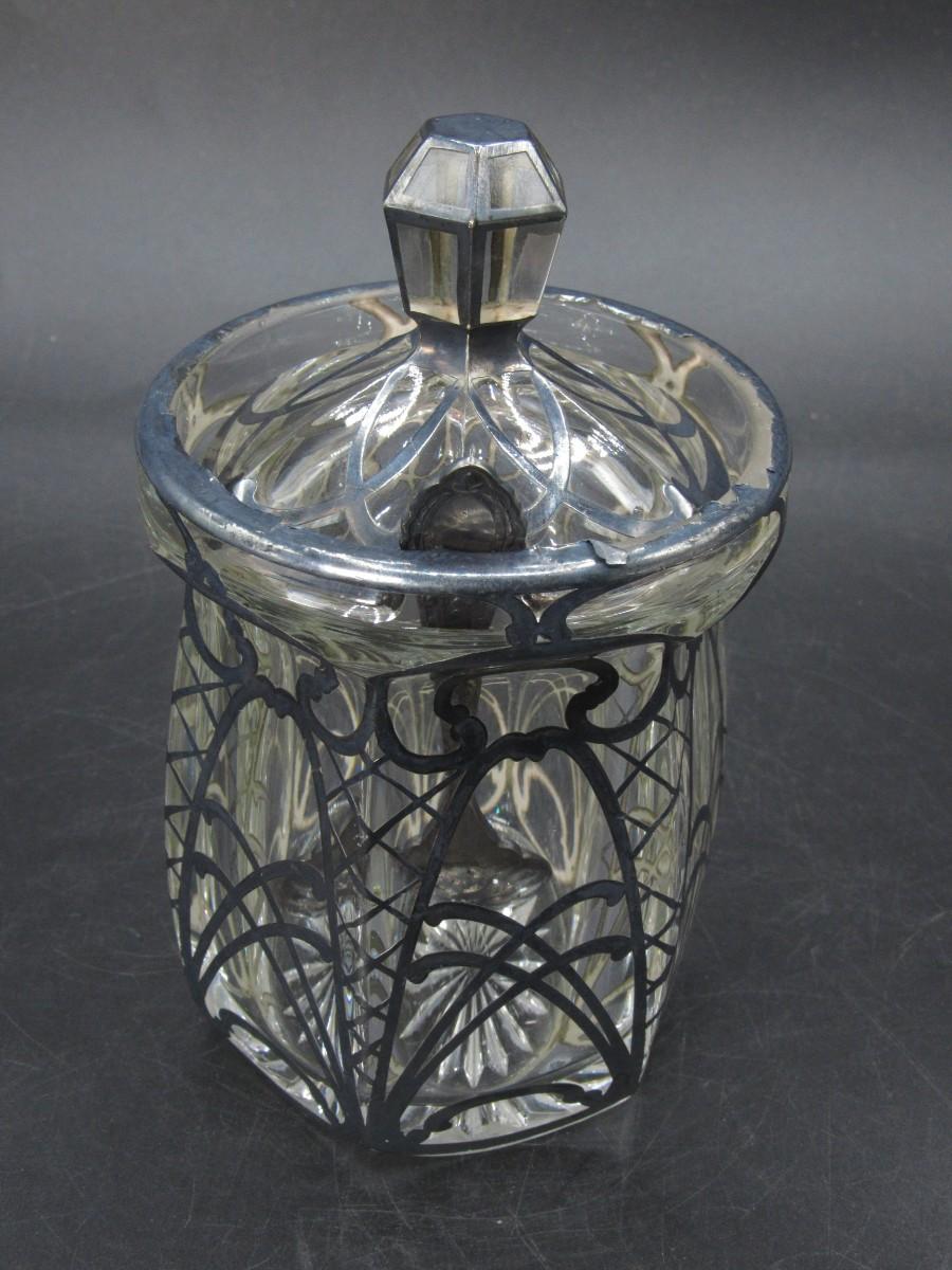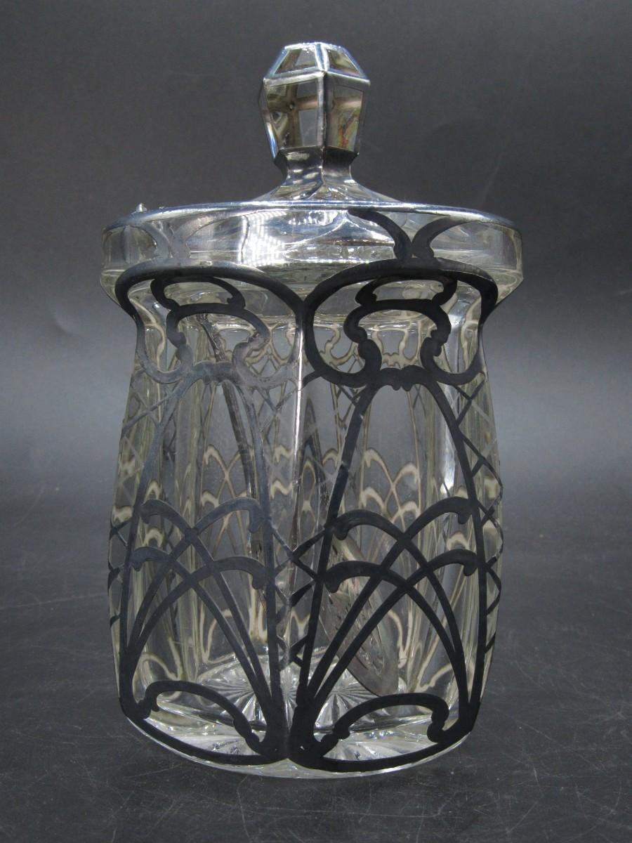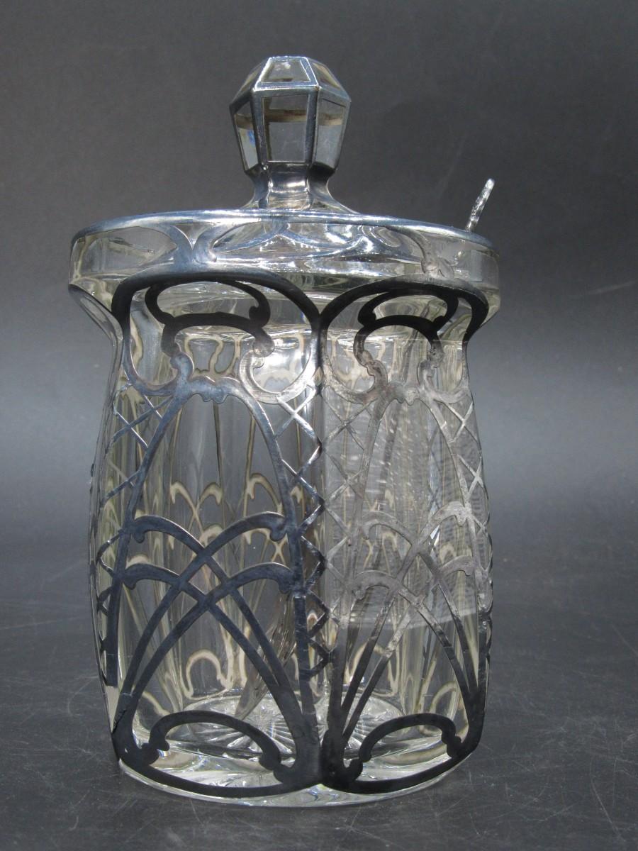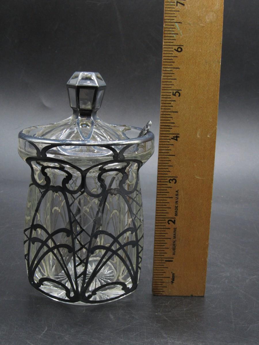 Antique A.H. Heisey & Co. Pressed-Cut Glass Condiment Jar with Sterling Overlay c.1920