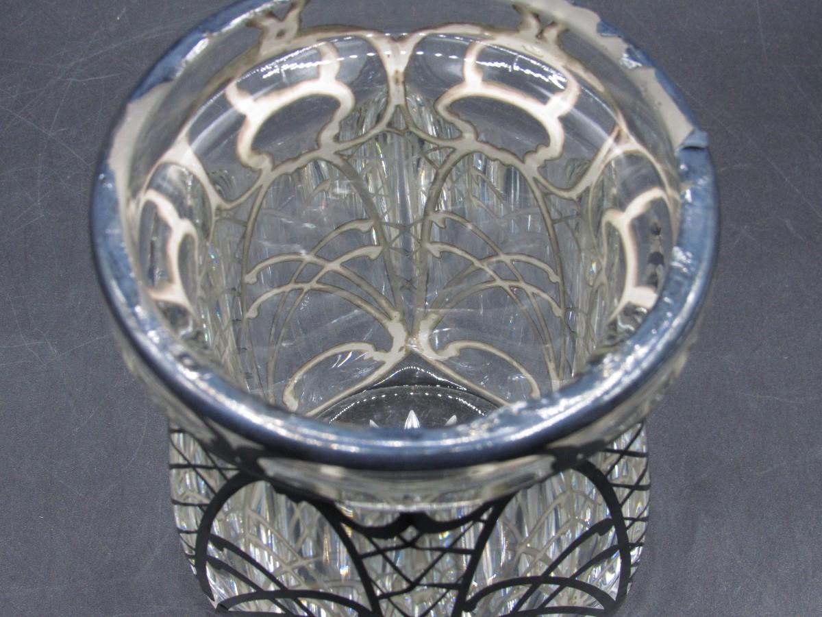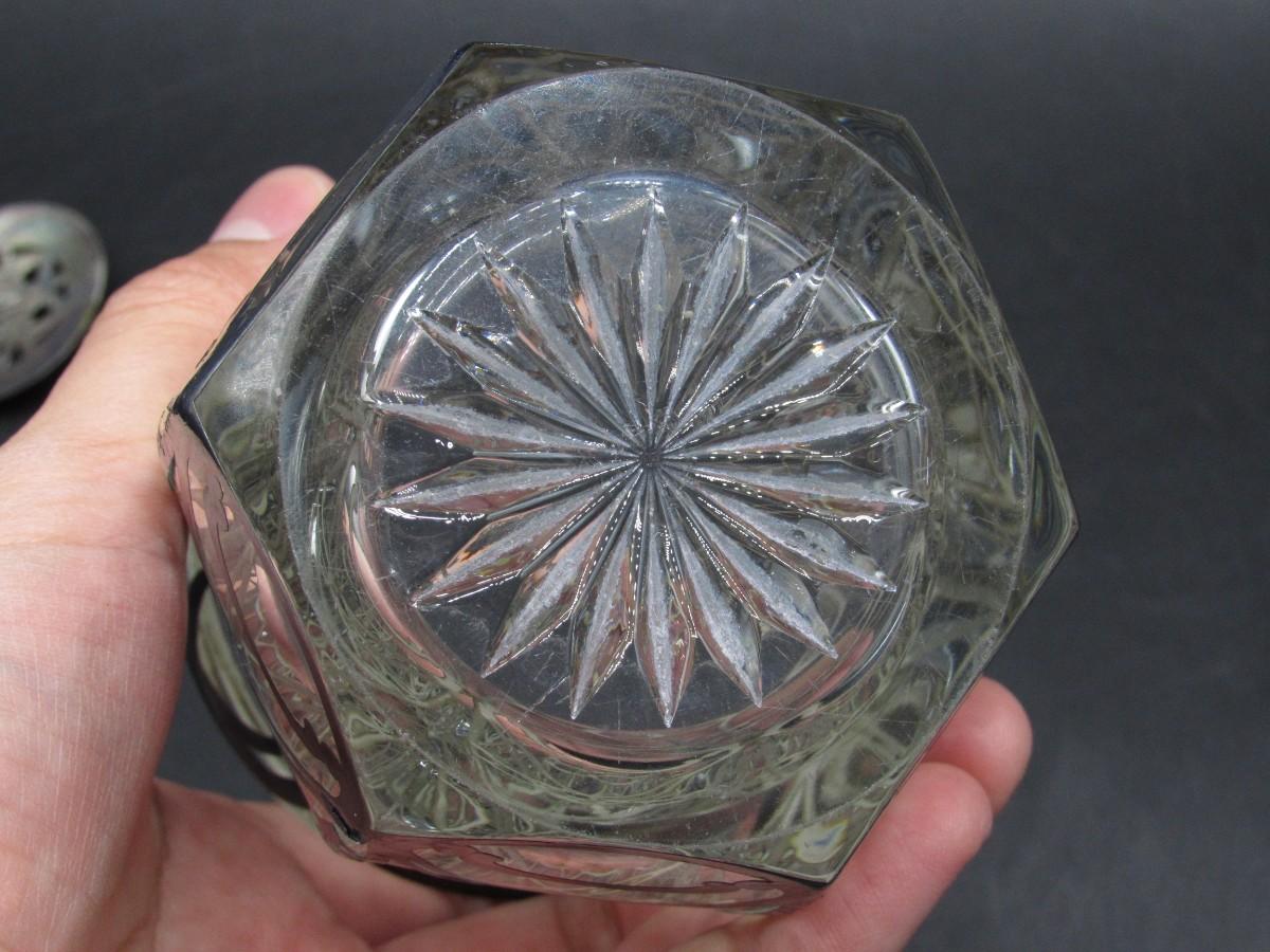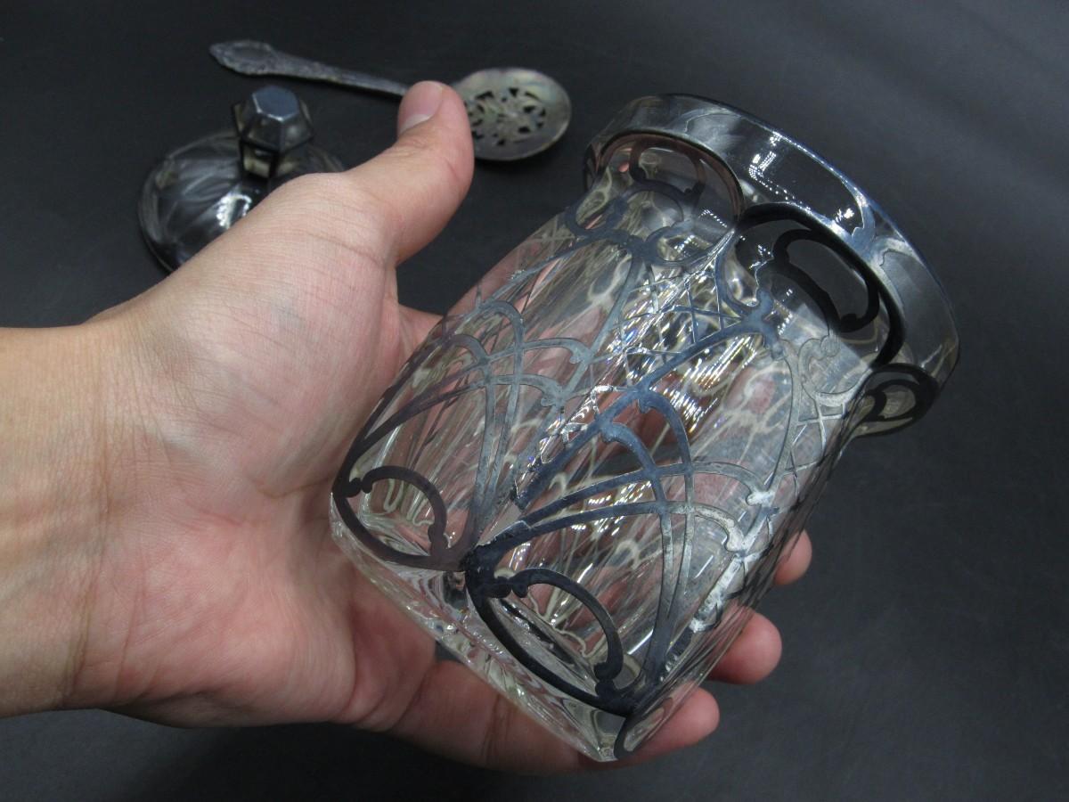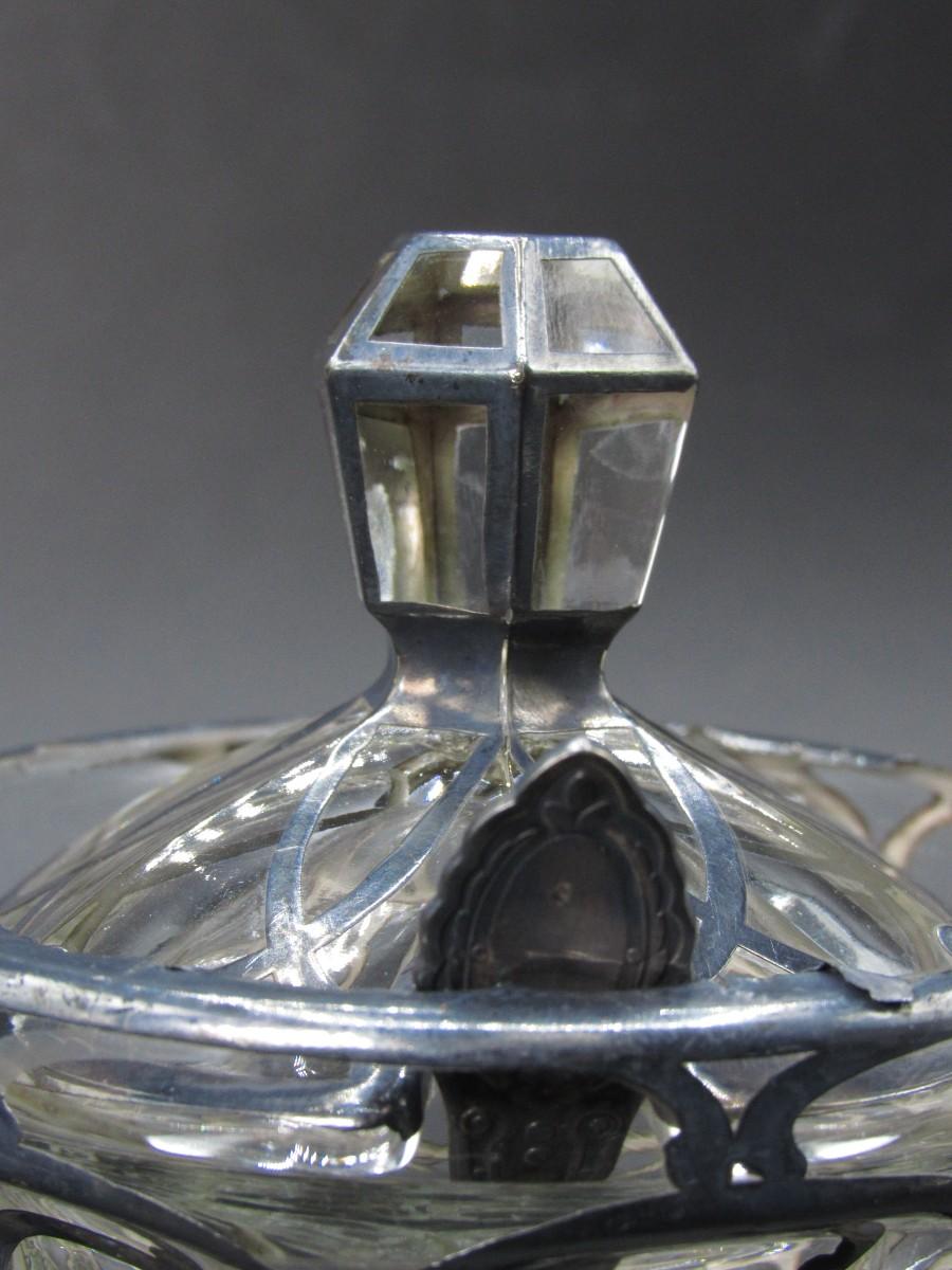 Antique A.H. Heisey & Co. Pressed-Cut Glass Condiment Jar with Sterling Overlay c.1920
