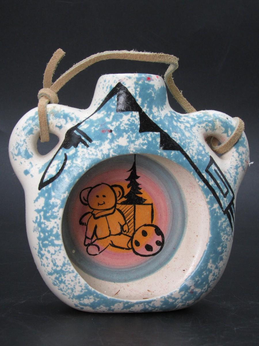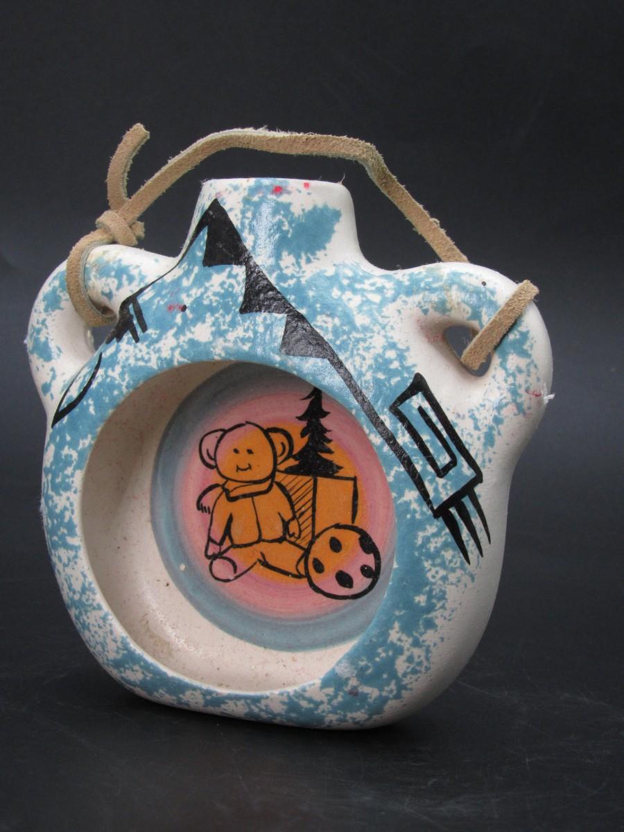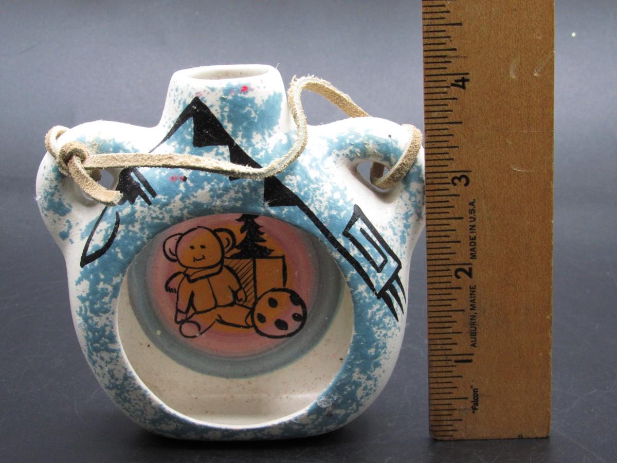 Vintage Signed Southwestern Style Pottery Canteen Figurine. In good condition. 4" size.