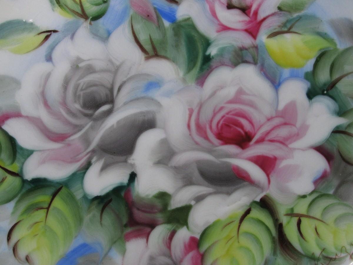 Vintage Floral Rose Painted Collectible China Plate. In good vintage condition. Some light wear from display. Almost 9" size. Has a couple of holes in back for hanging.