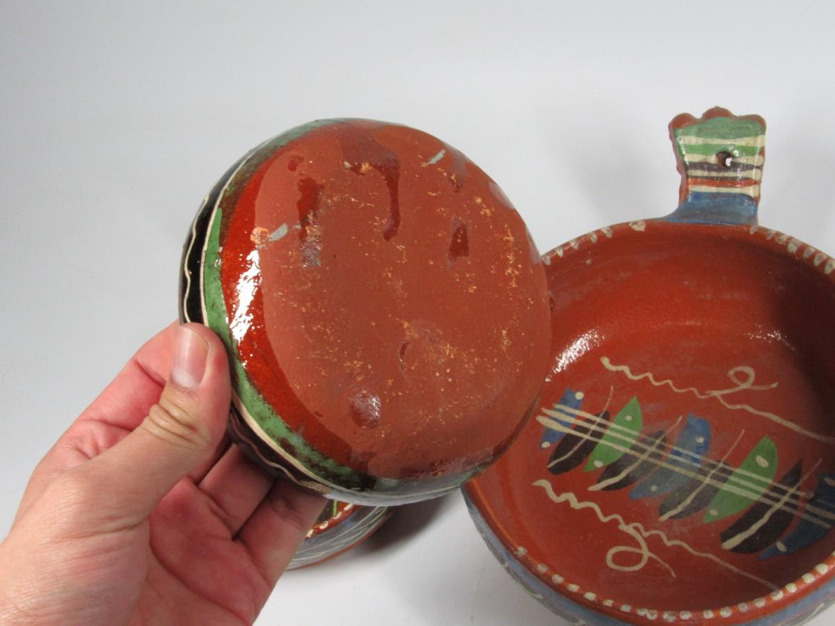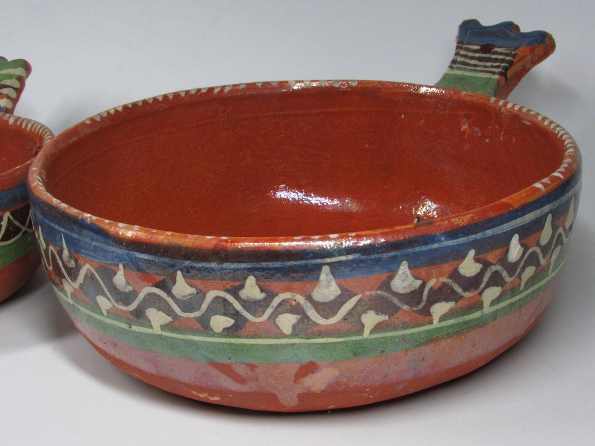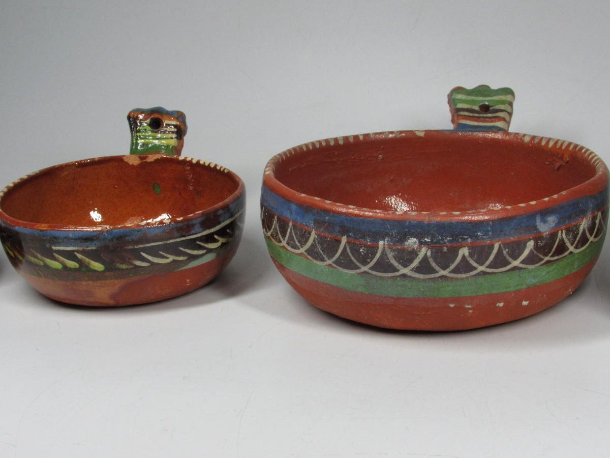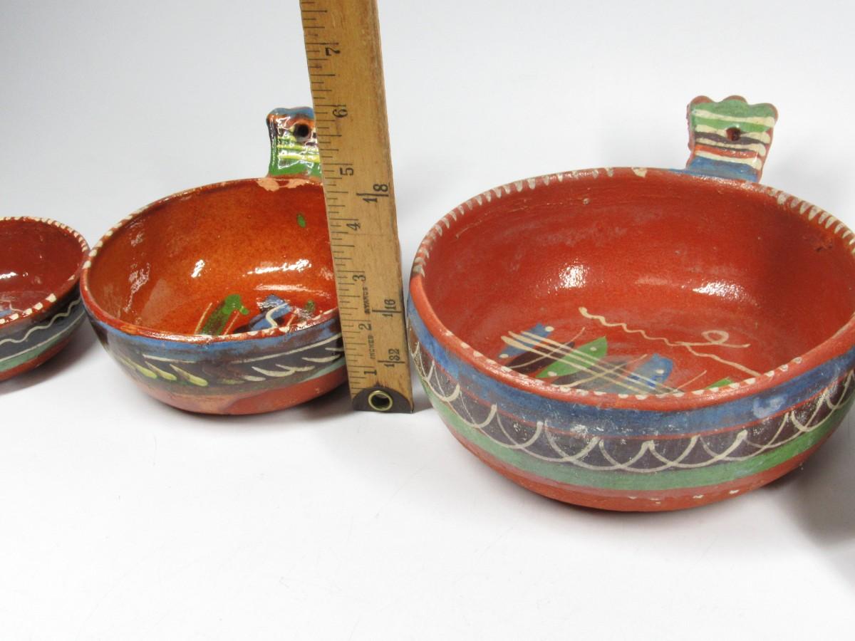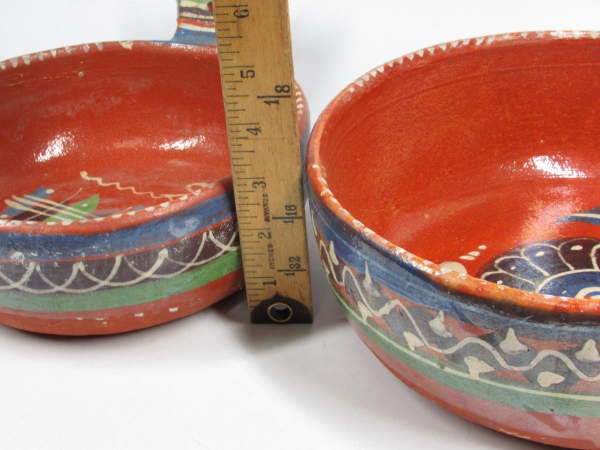 Vintage Mexican Tlaquepaque Folk Art Clay Serving Bowl Pots with Handles