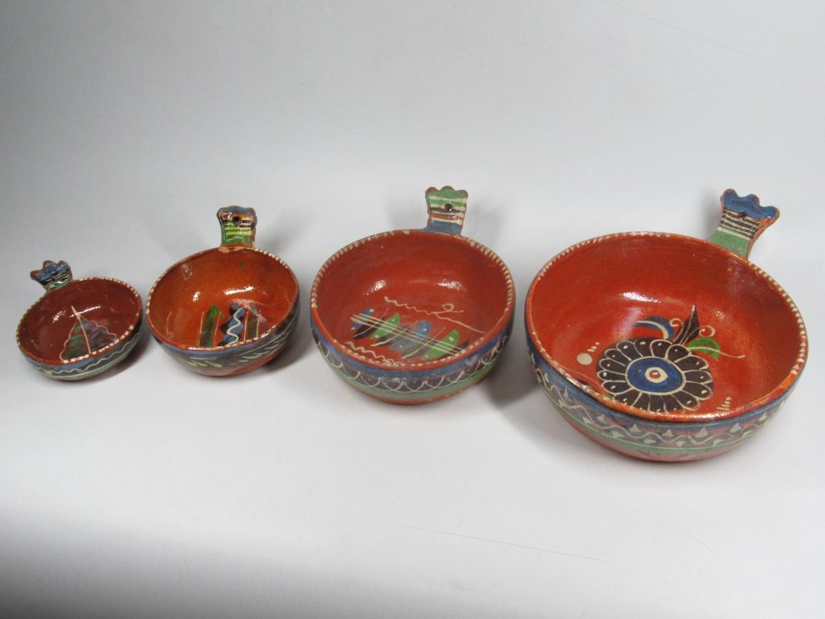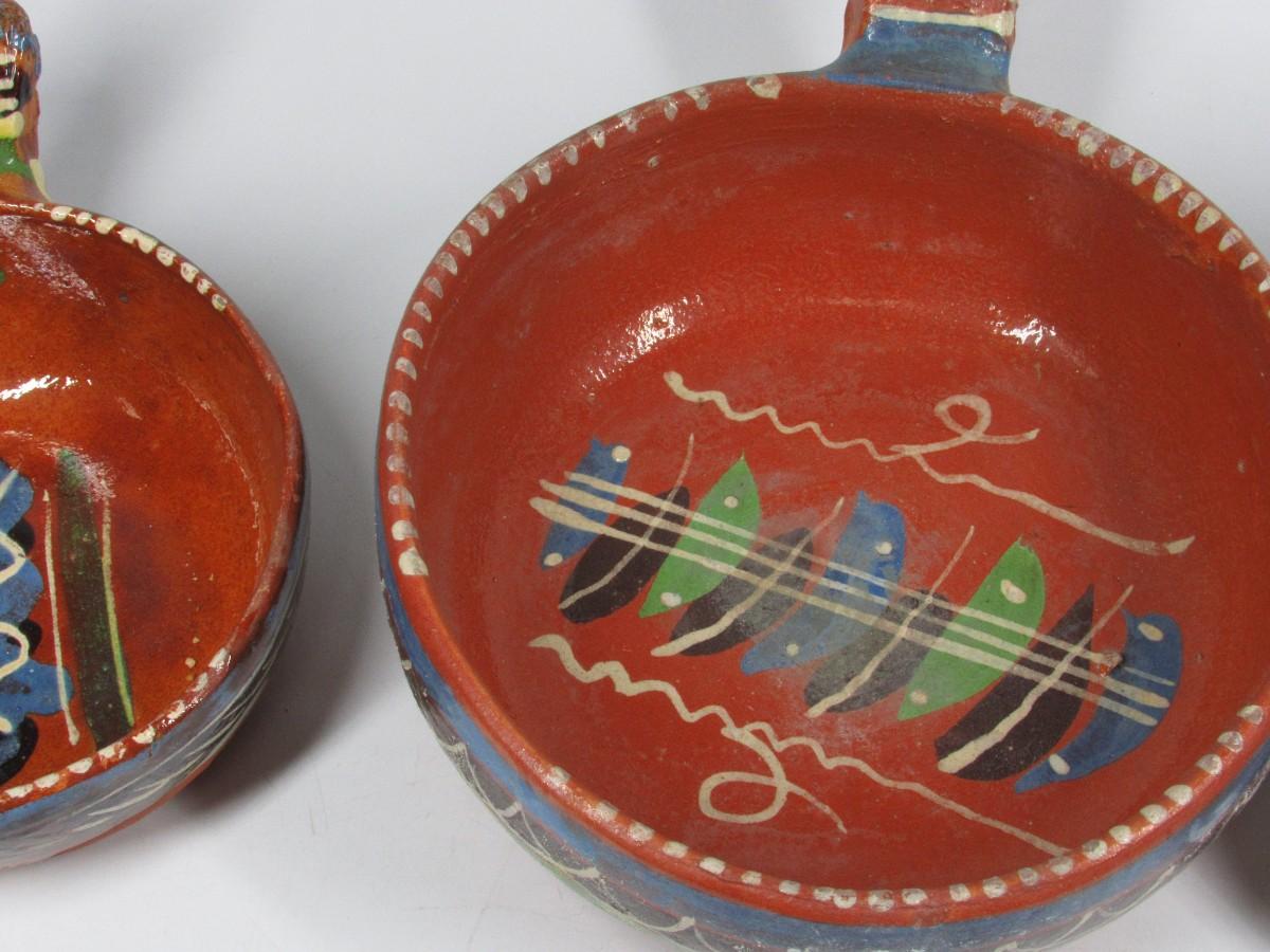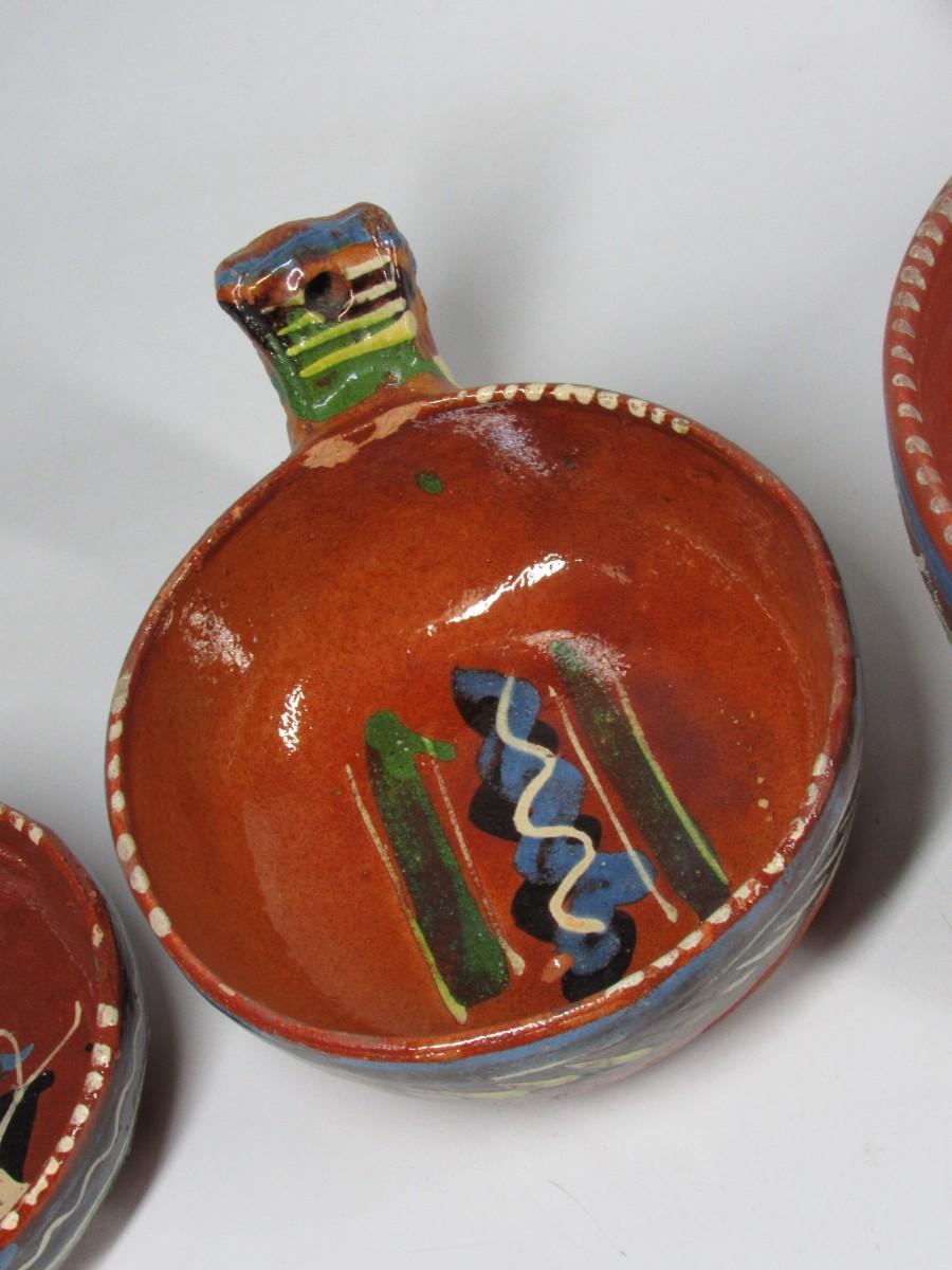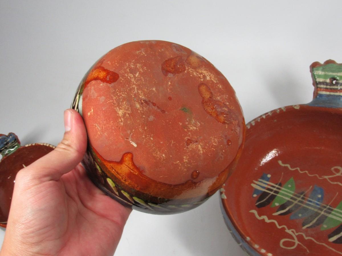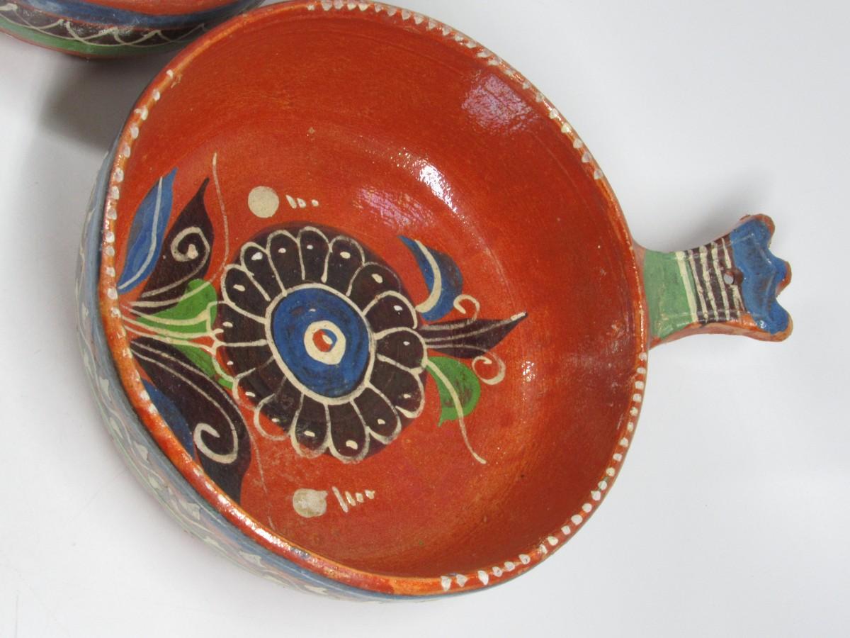 Vintage Mexican Tlaquepaque Folk Art Clay Serving Bowl Pots with Handles