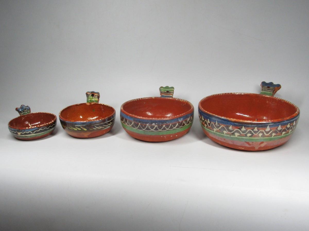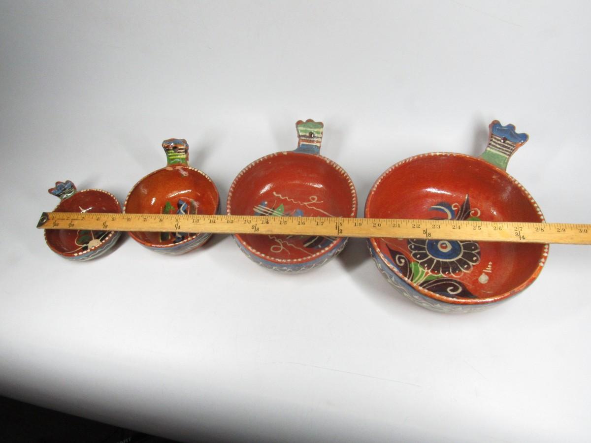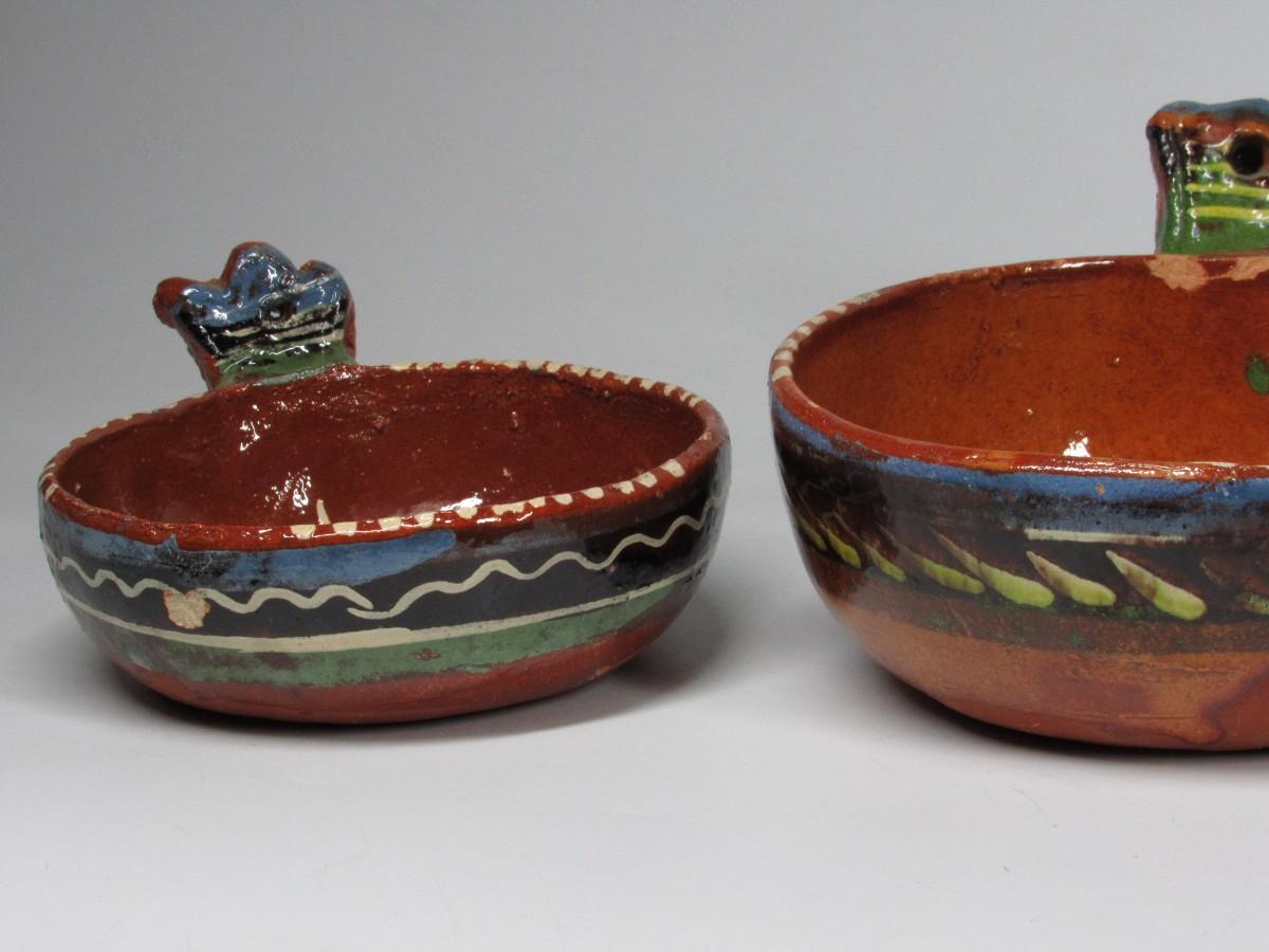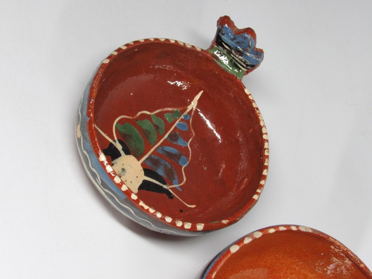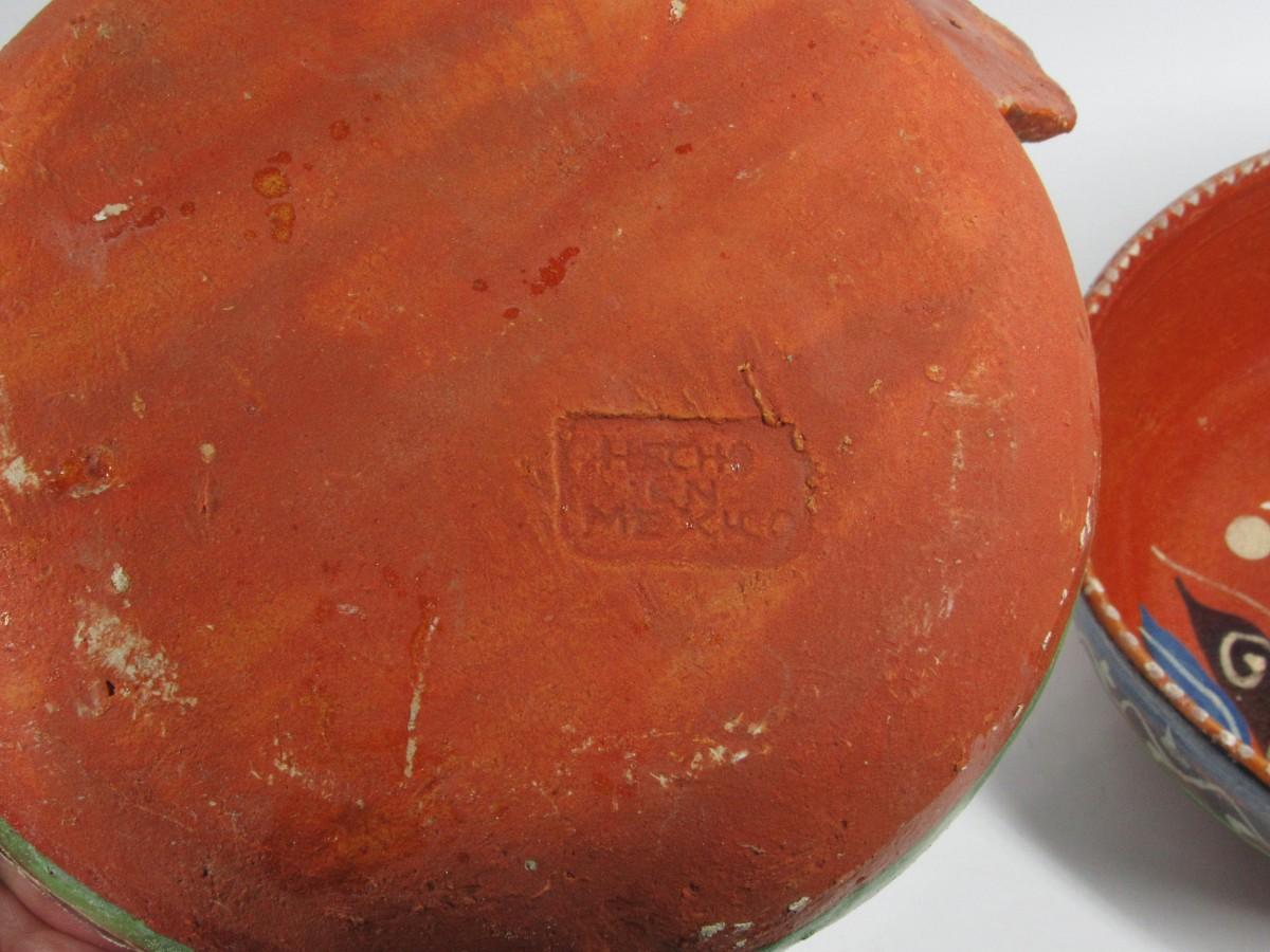 Vintage Mexican Tlaquepaque Folk Art Clay Serving Bowl Pots with Handles
