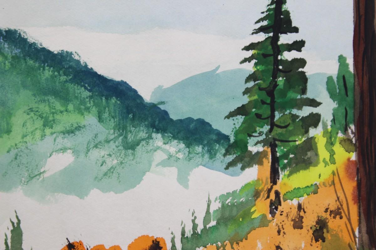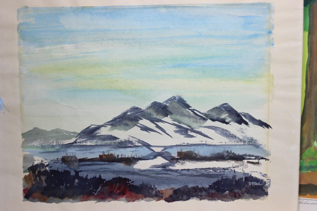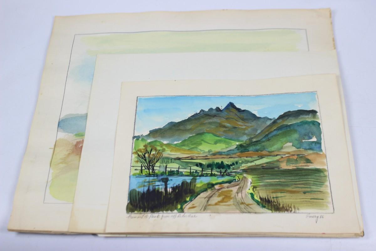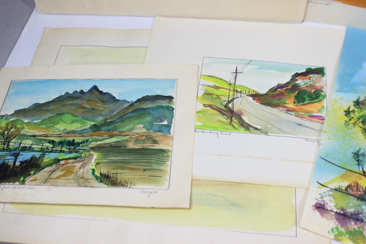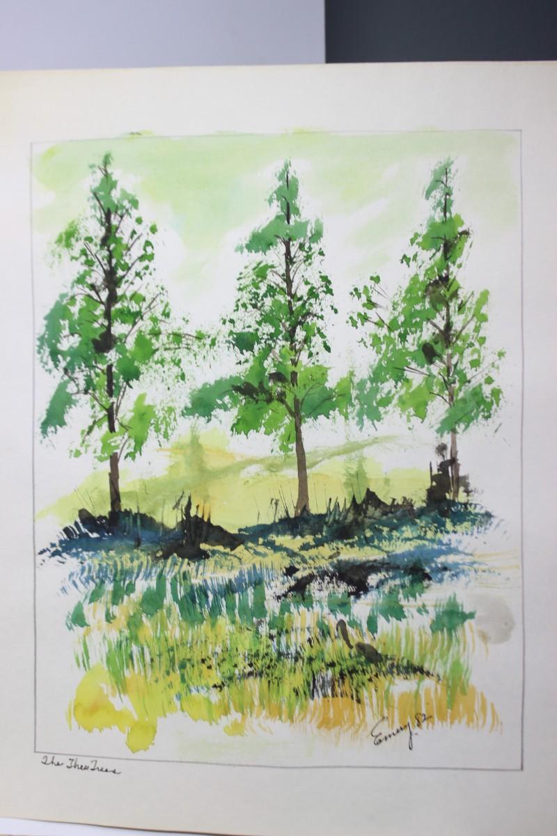 Vintage 1980's Original Artwork Green Scenery Landscape & Still Life Watercolor Mix Media Sketches Collection