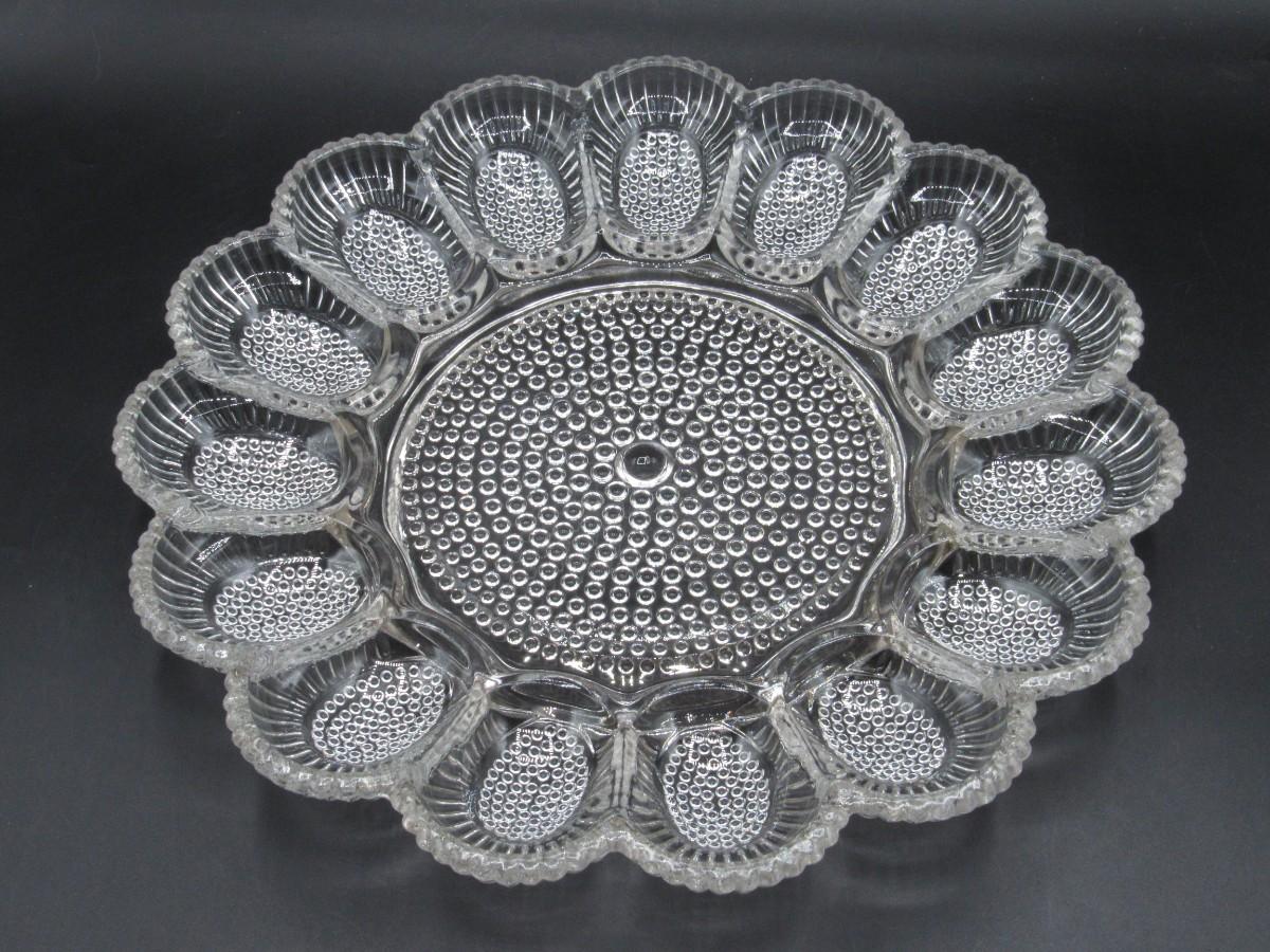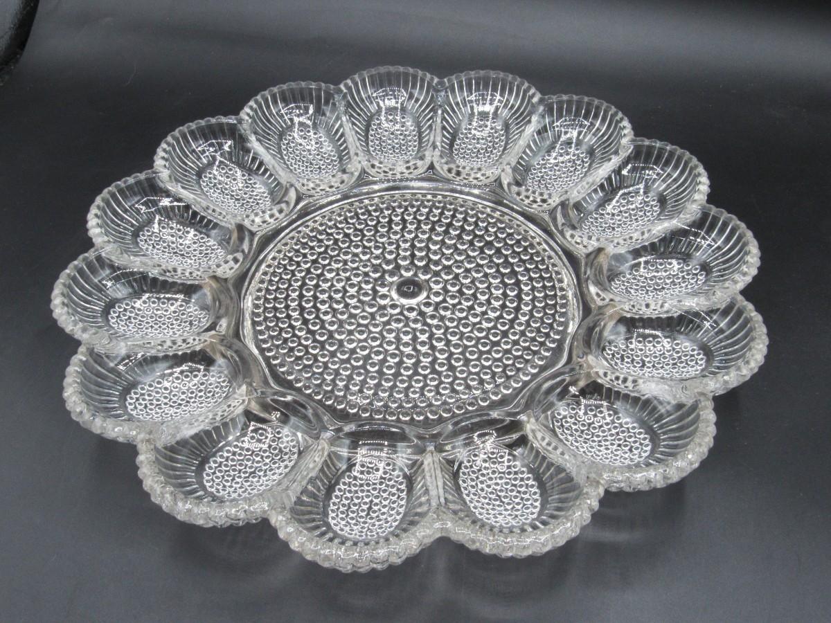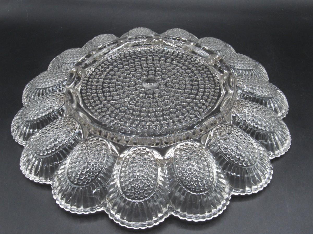 Vintage Indiana Glass Clear Hobnail Deviled Egg Serving Platter
