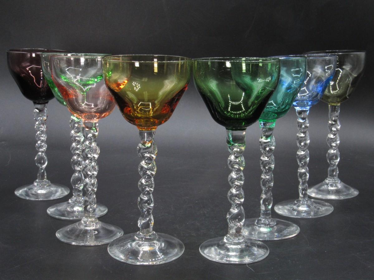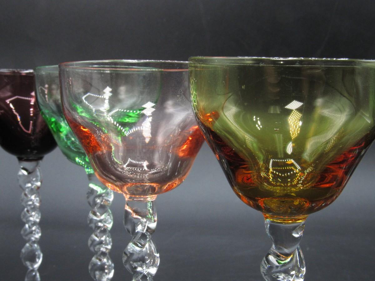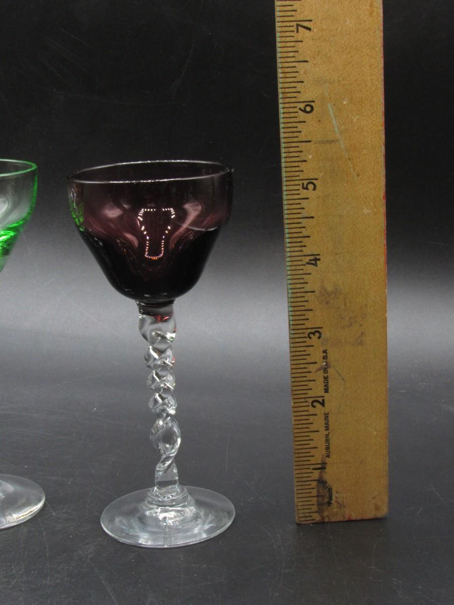 Lot of Multicolored Twisted Stemmed Small Shot Tasting Liquor Drinking Glasses