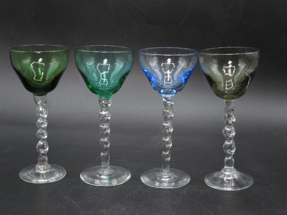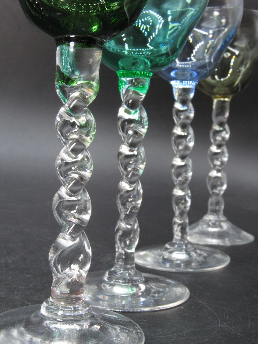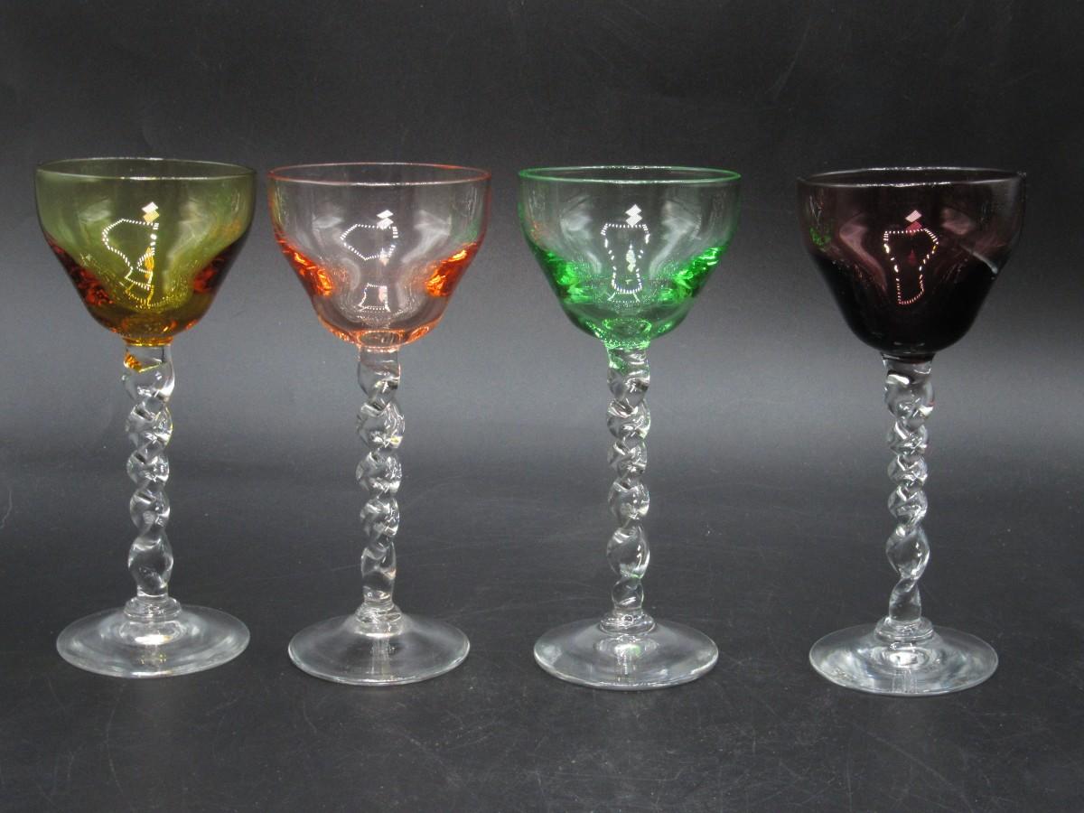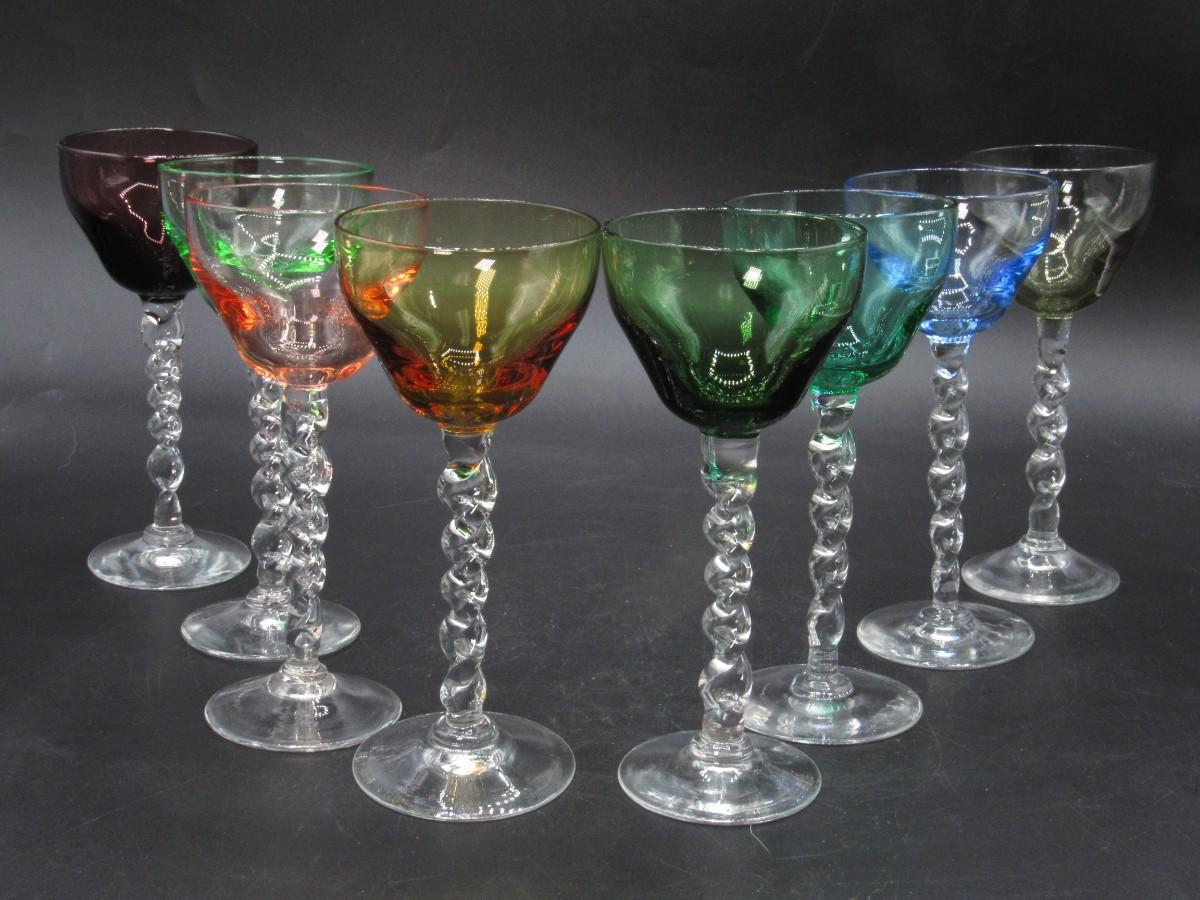 Lot of Multicolored Twisted Stemmed Small Shot Tasting Liquor Drinking Glasses