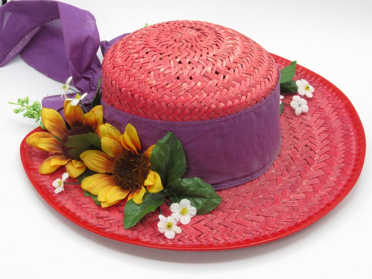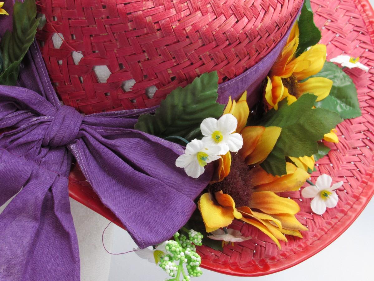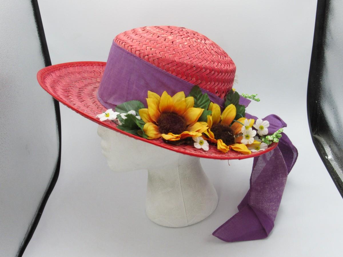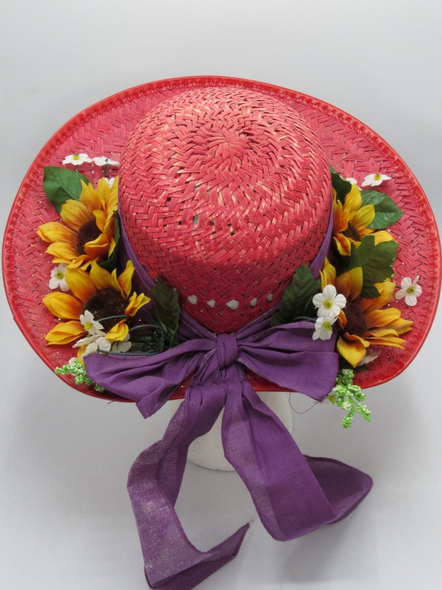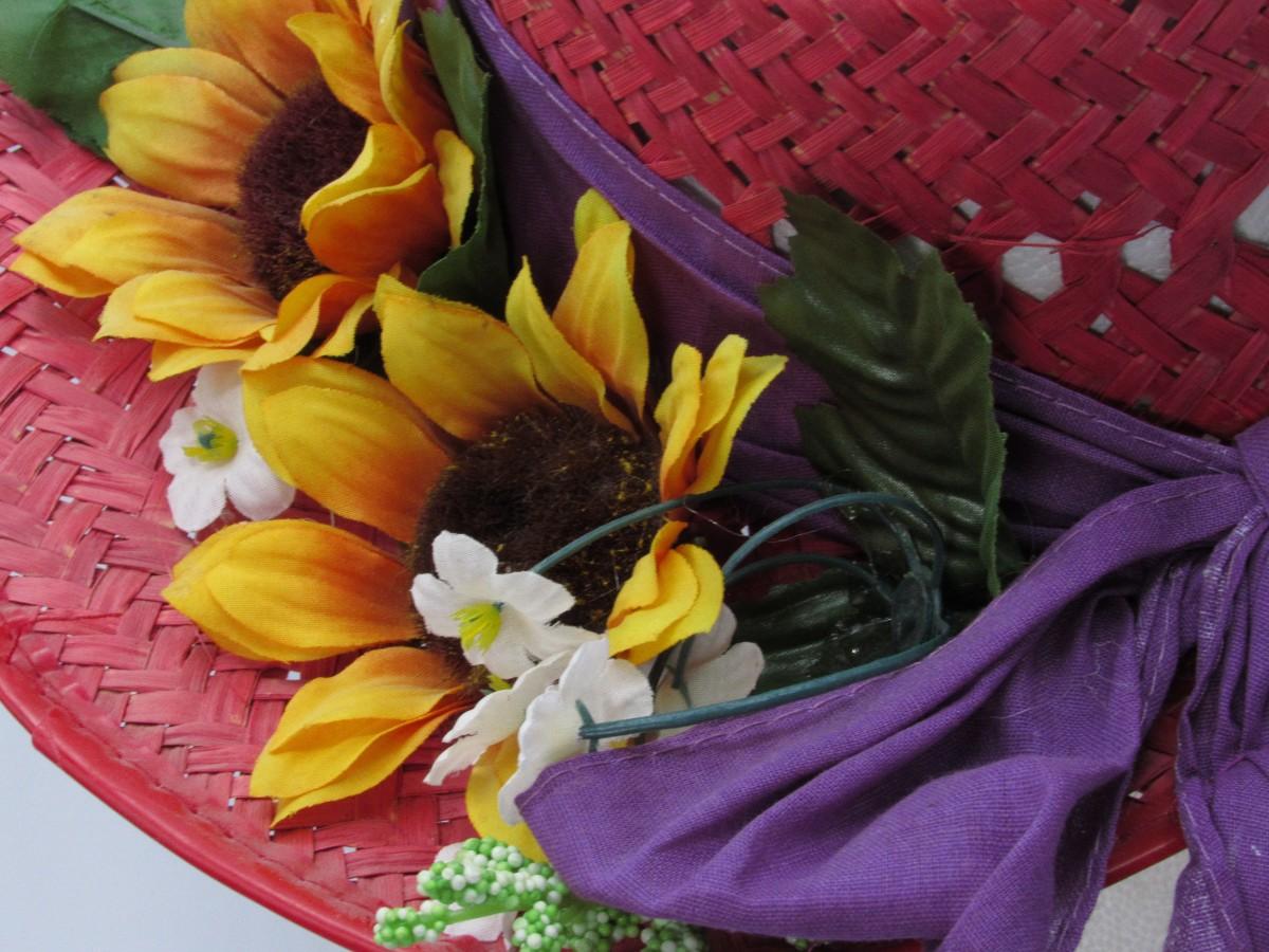 Widow Niles Wide Brim Faux Sunflowers Ribbon Sun Hat