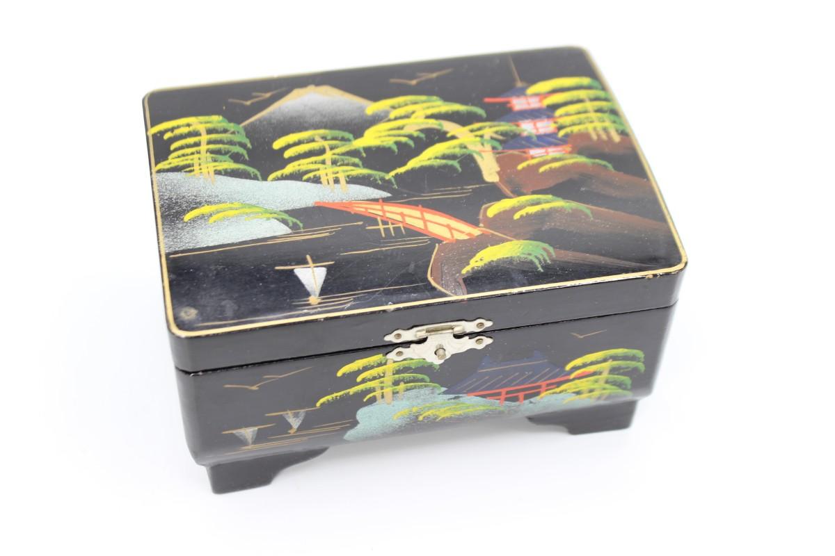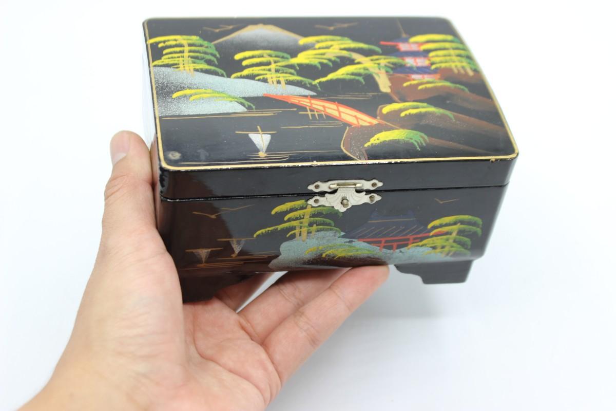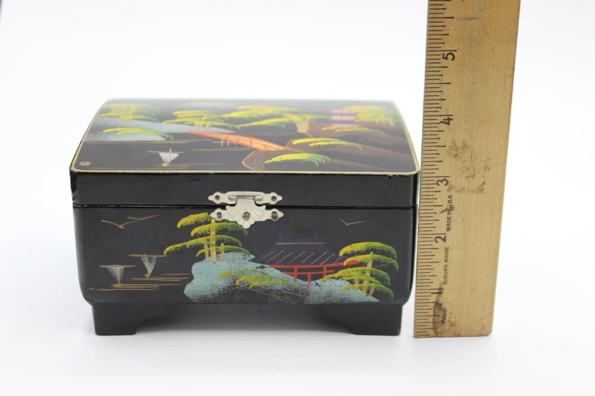 Vintage Made in Japan Hand Painted Wooden Musical Jewelry Box