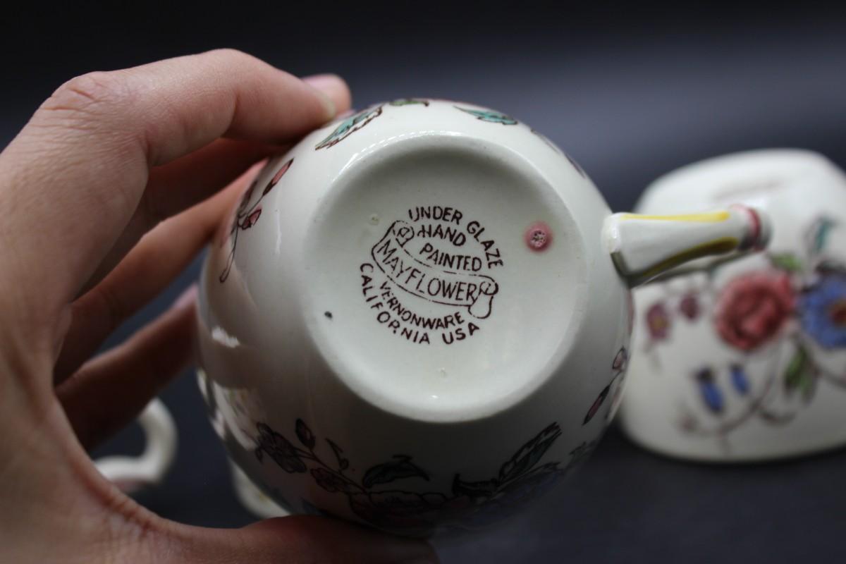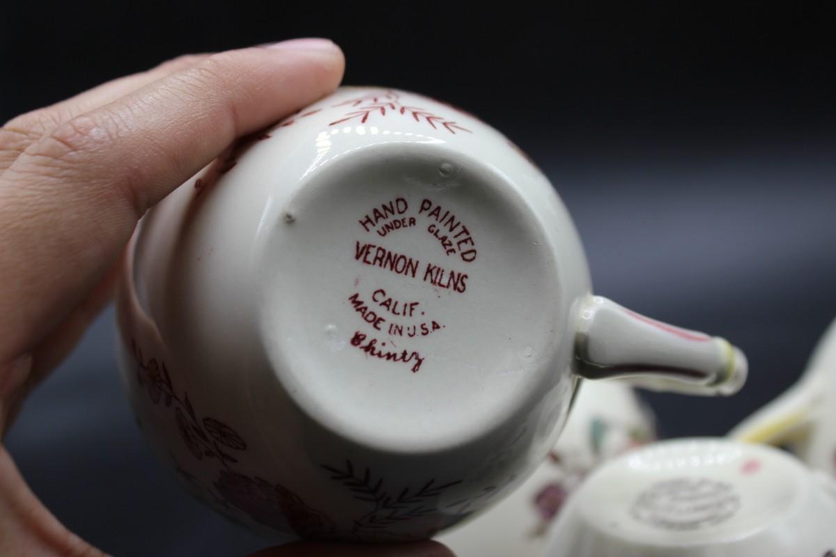 Vintage Vernon Kilns & Vernonware Underglaze Hand Painted Mayflower Tea Cups