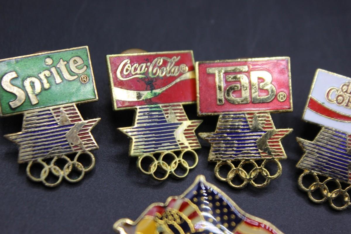 Lot of Vintage 1984 Los Angeles Olympic Sprite, Coca-Cola, & More Commemorative Pins