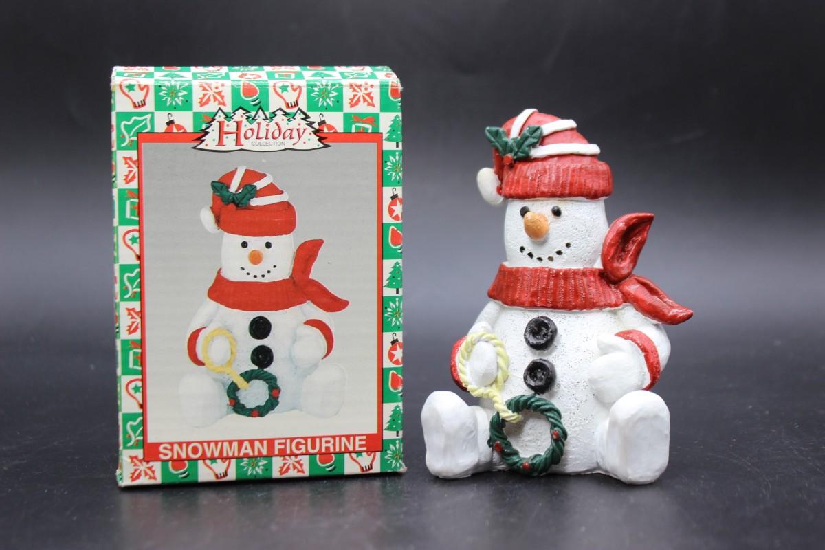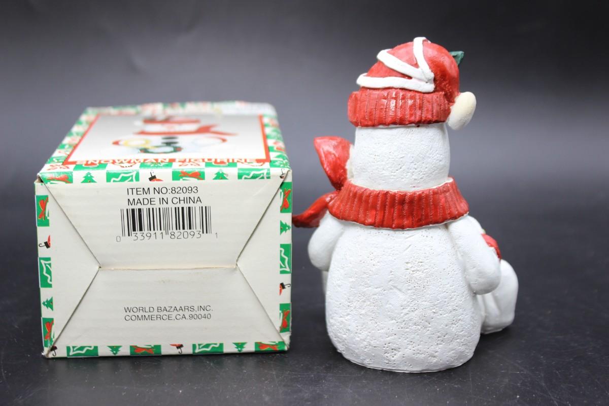 Retro Holiday Sitting Snowman Christmas Figurine with Original Box