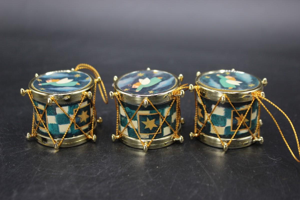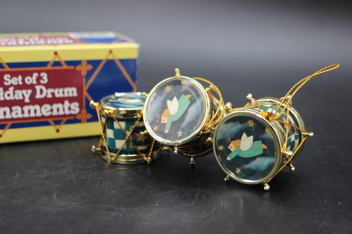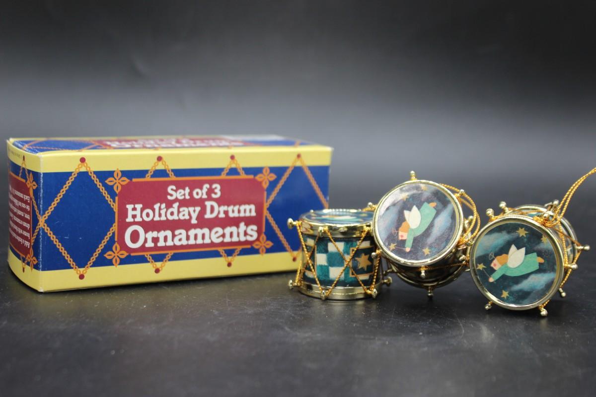 Set of 3 Holiday Drum Ornaments Giftco Inc. with Original Box