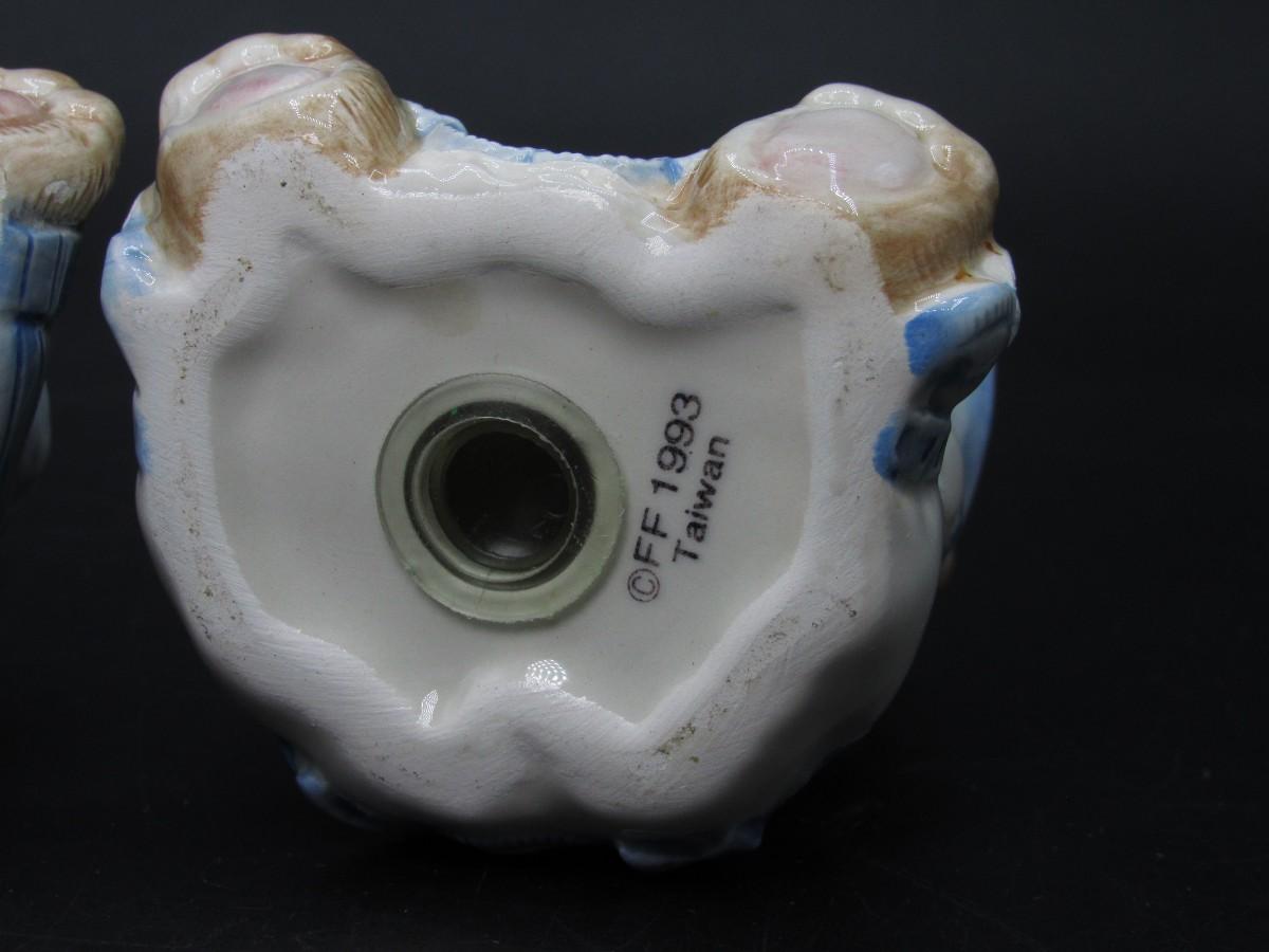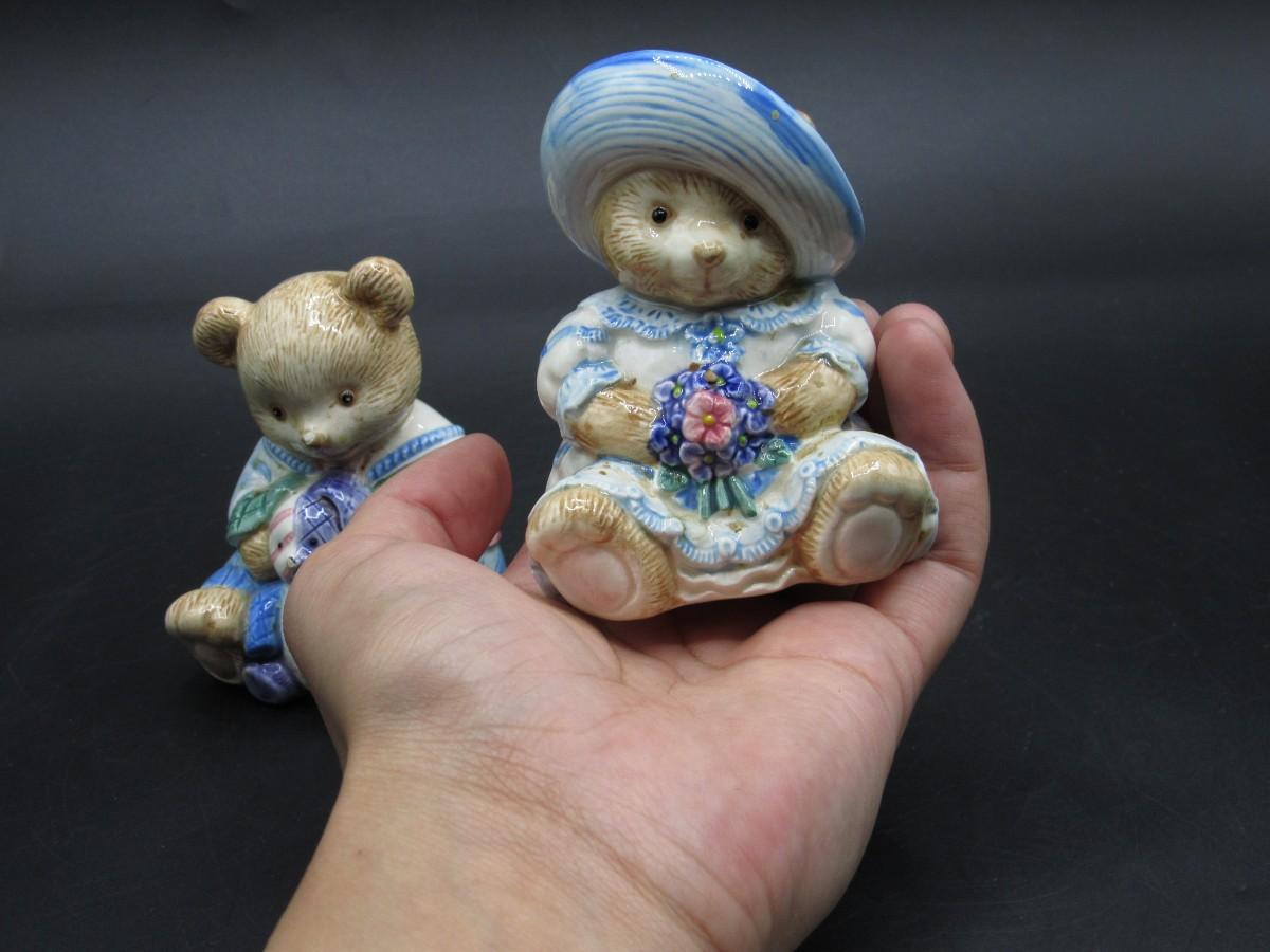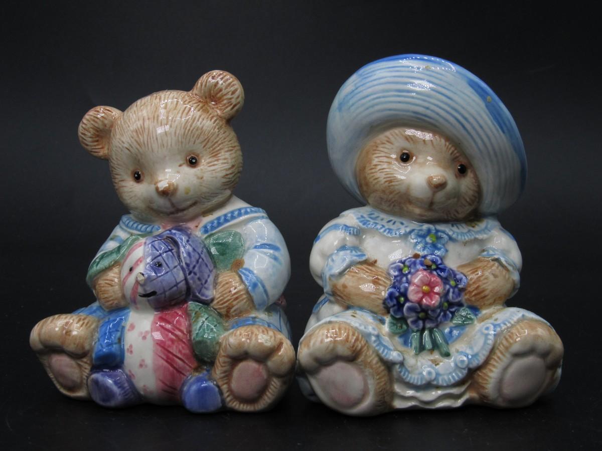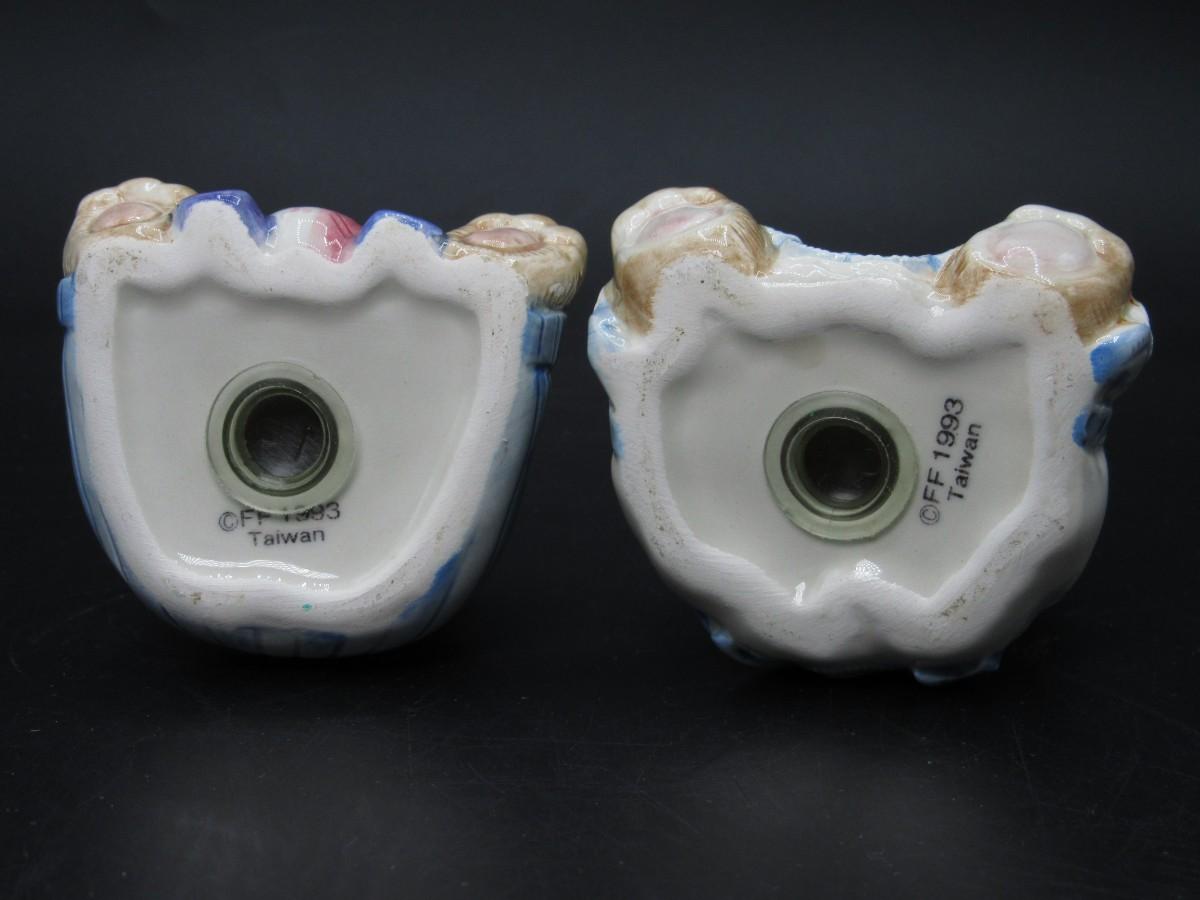 Retro Fitz & Floyd Cottagecore Style Plush Hand Painted Bear Salt & Pepper Shakers