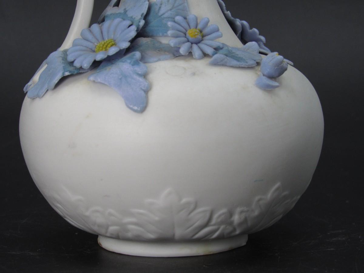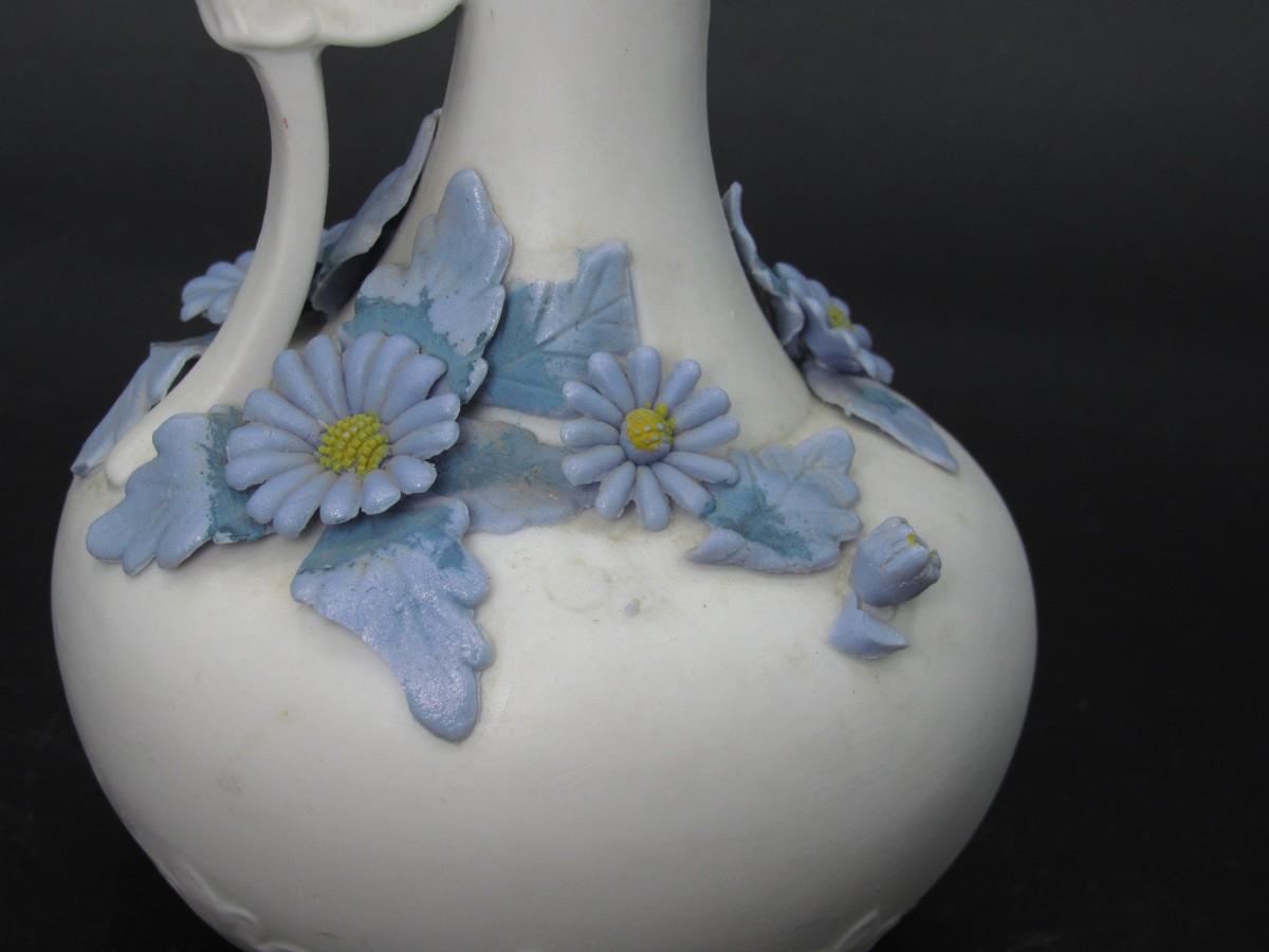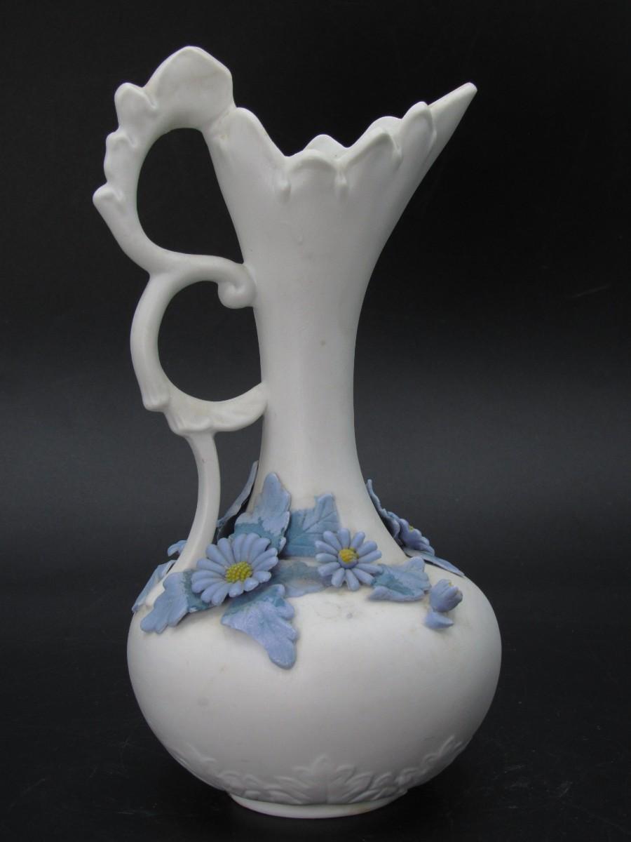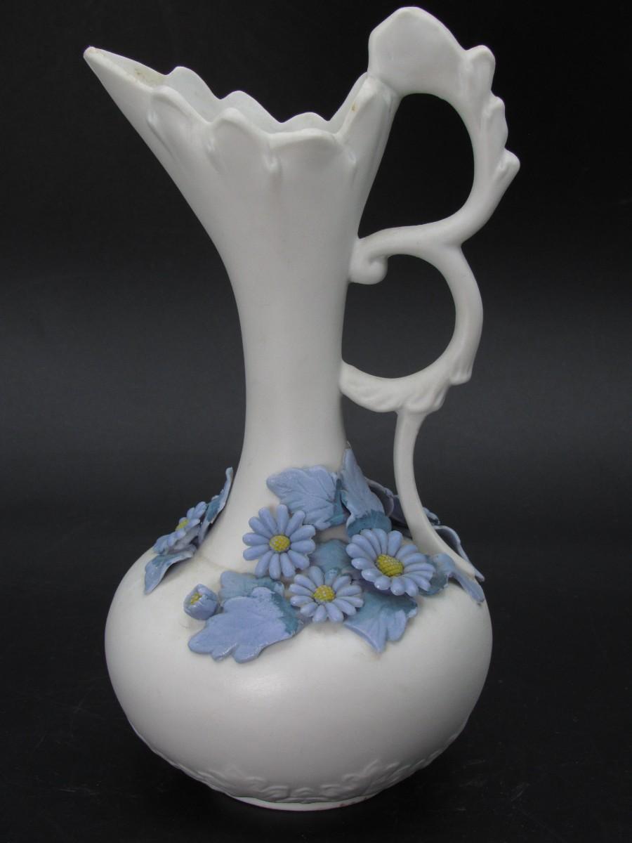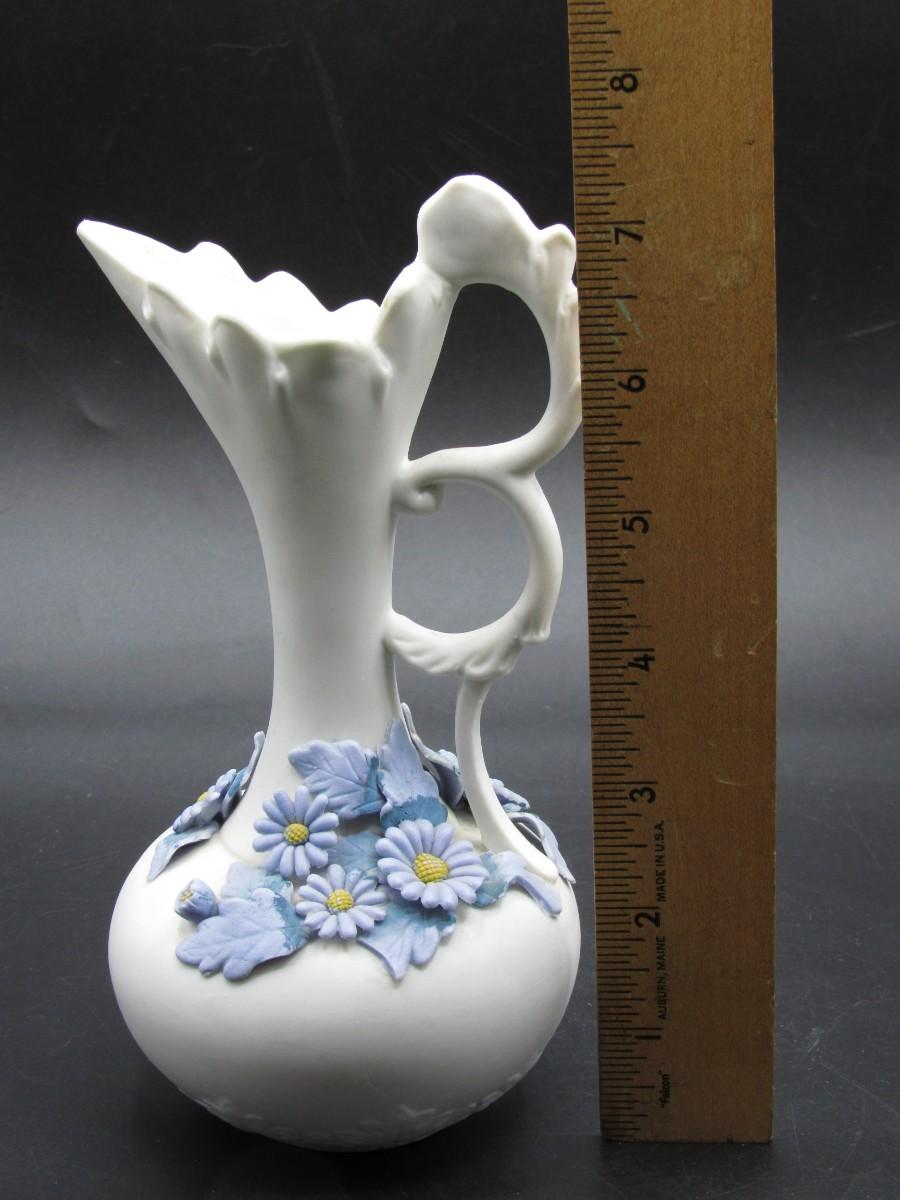 Vintage White Bisque Porcelain Raised Applied Flowers Hallmarked Bud Pitcher Vase
