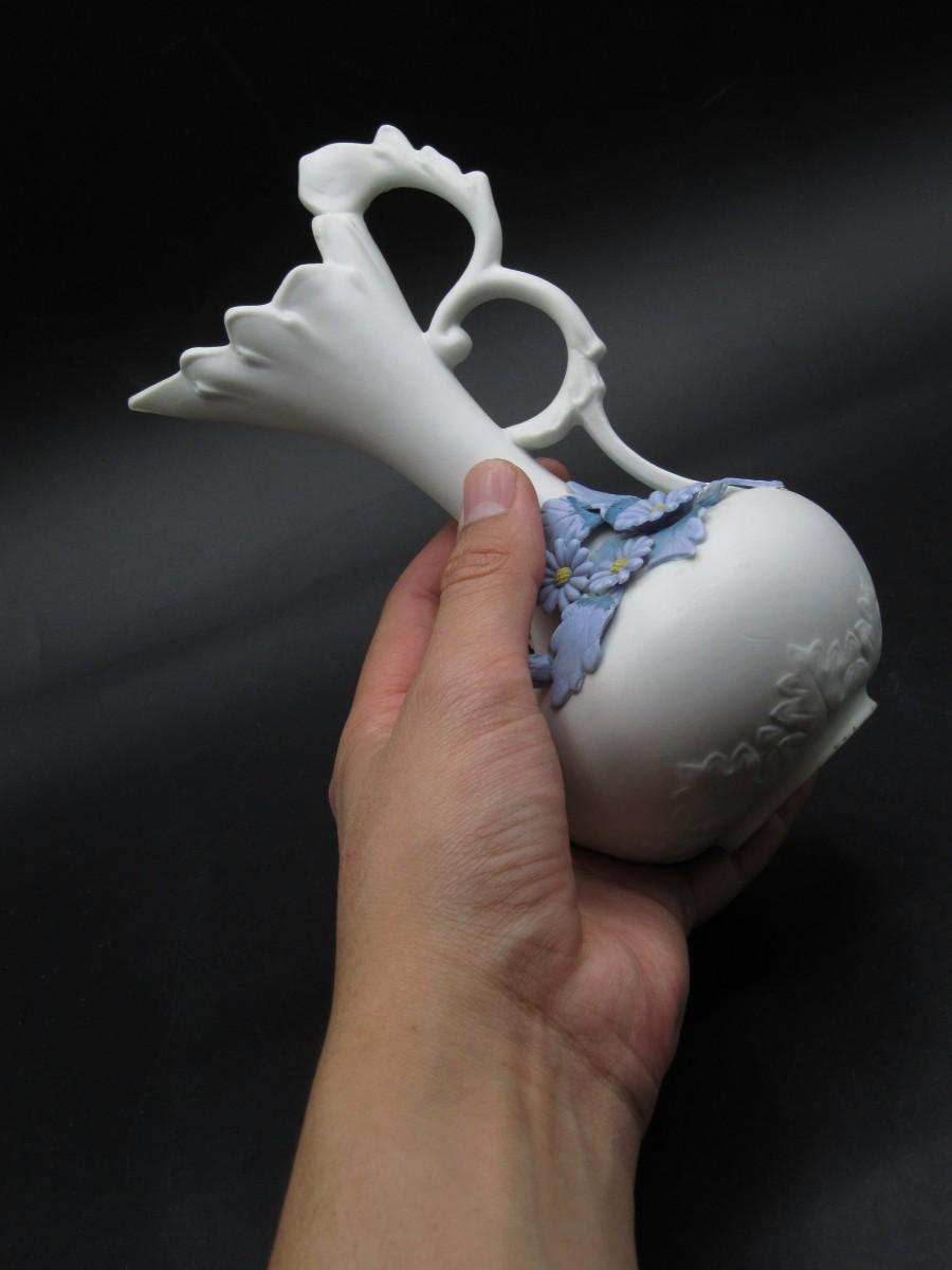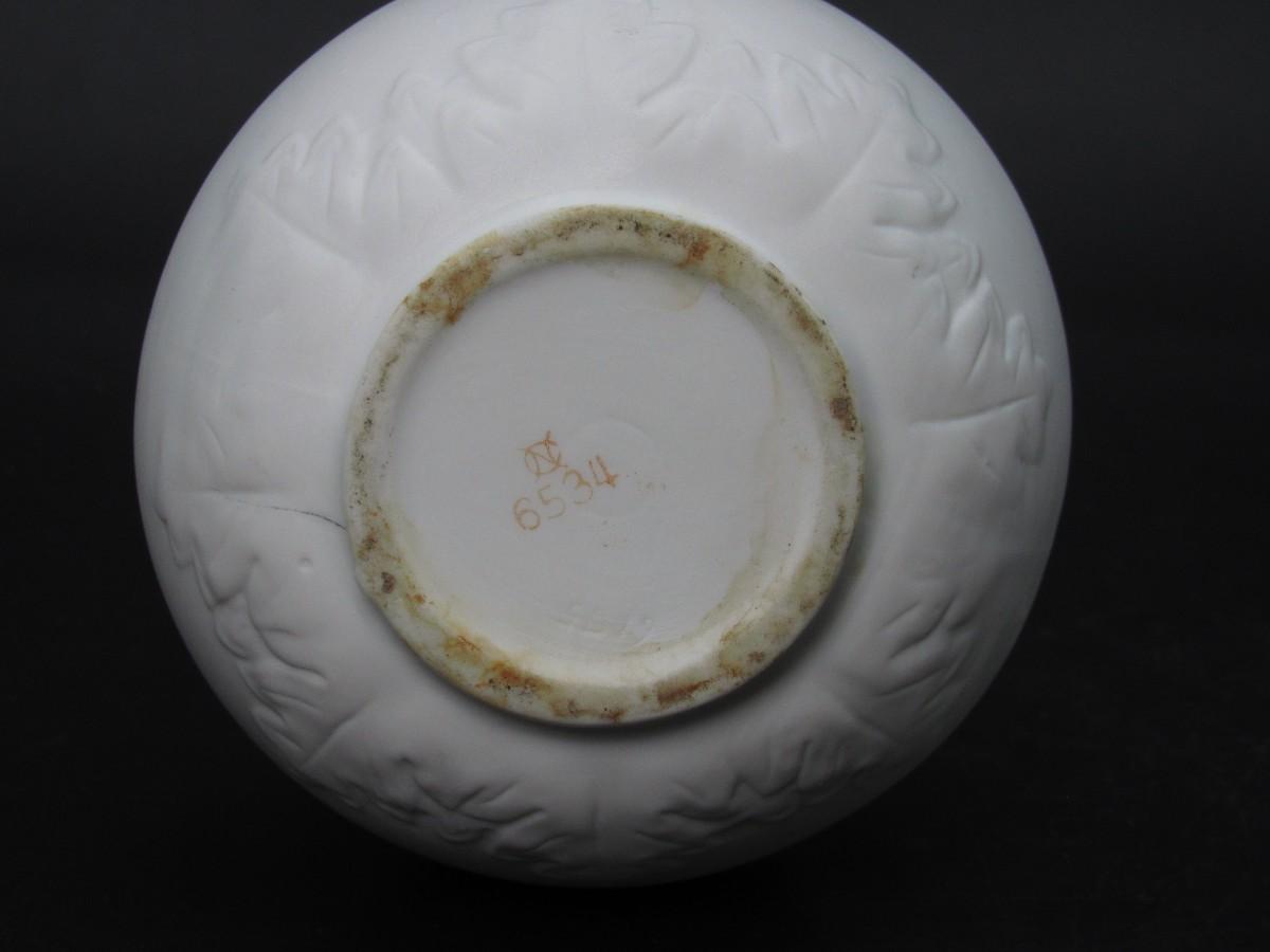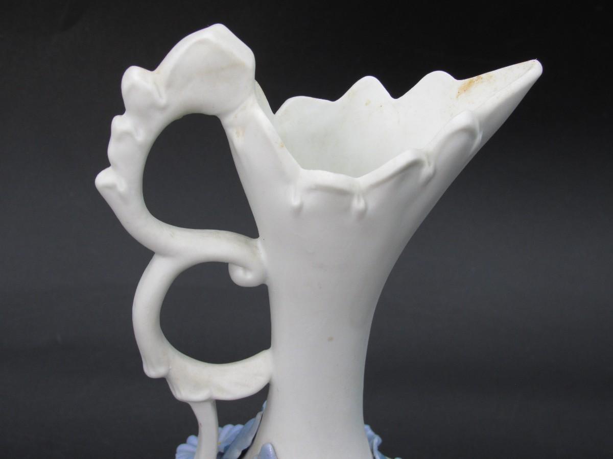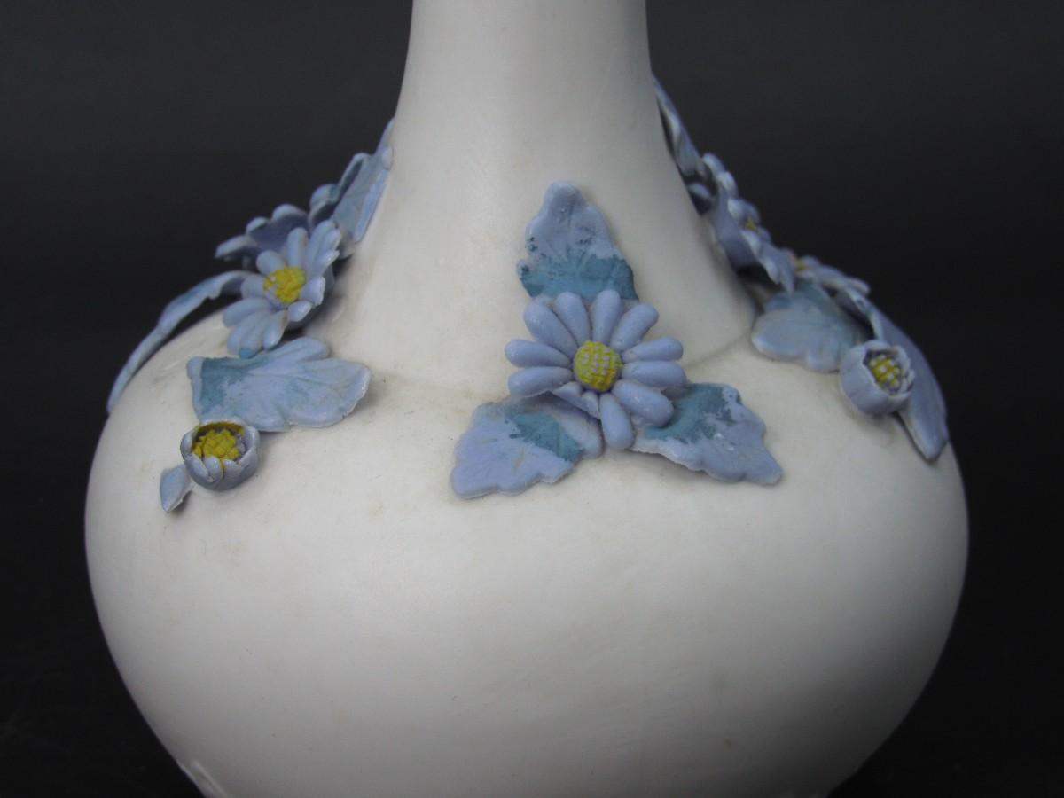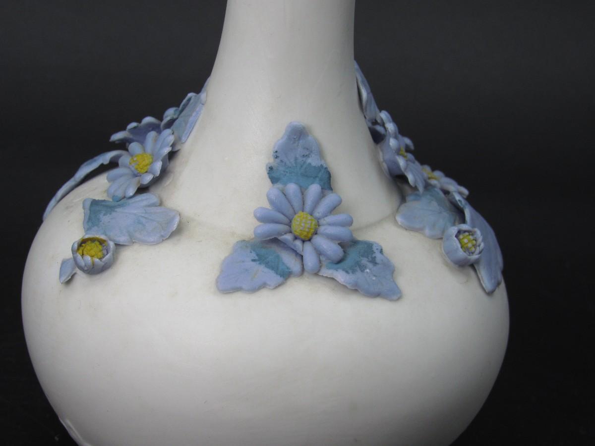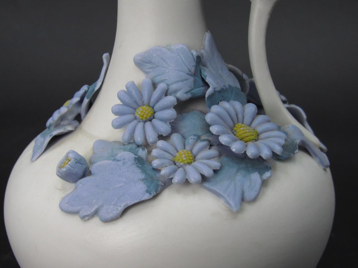 Vintage White Bisque Porcelain Raised Applied Flowers Hallmarked Bud Pitcher Vase