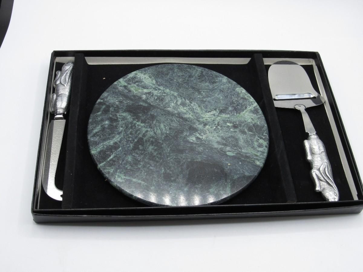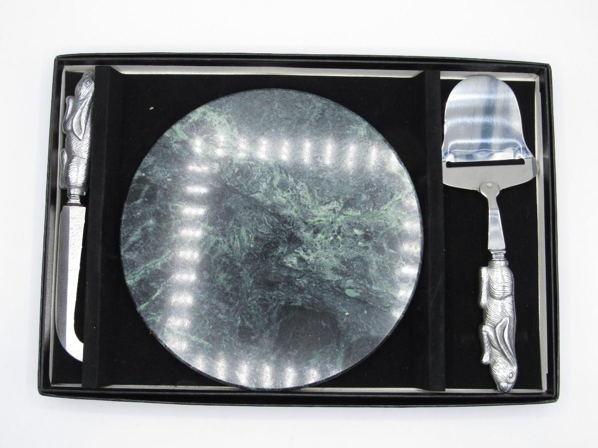 Arthur Court Designs Fish Handle Marble Cheese Plate Set