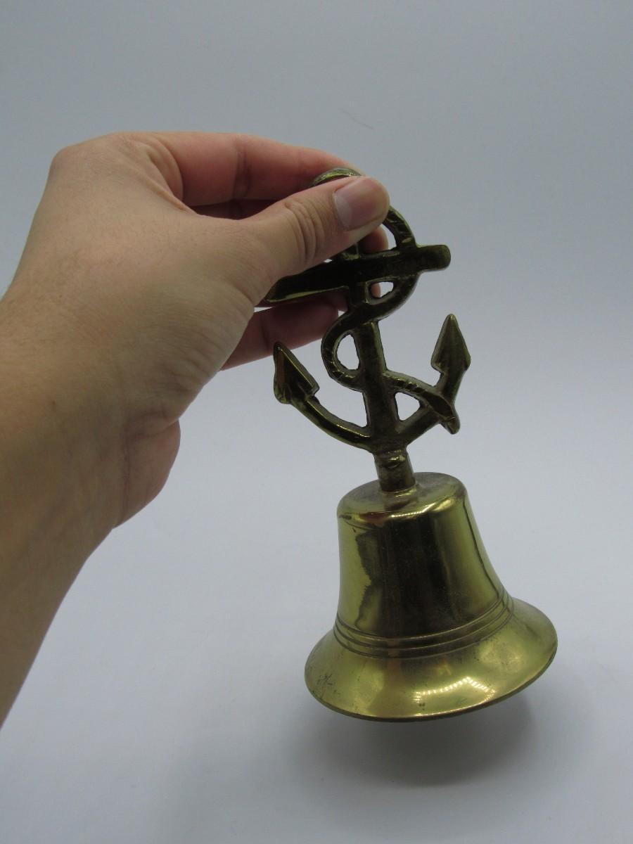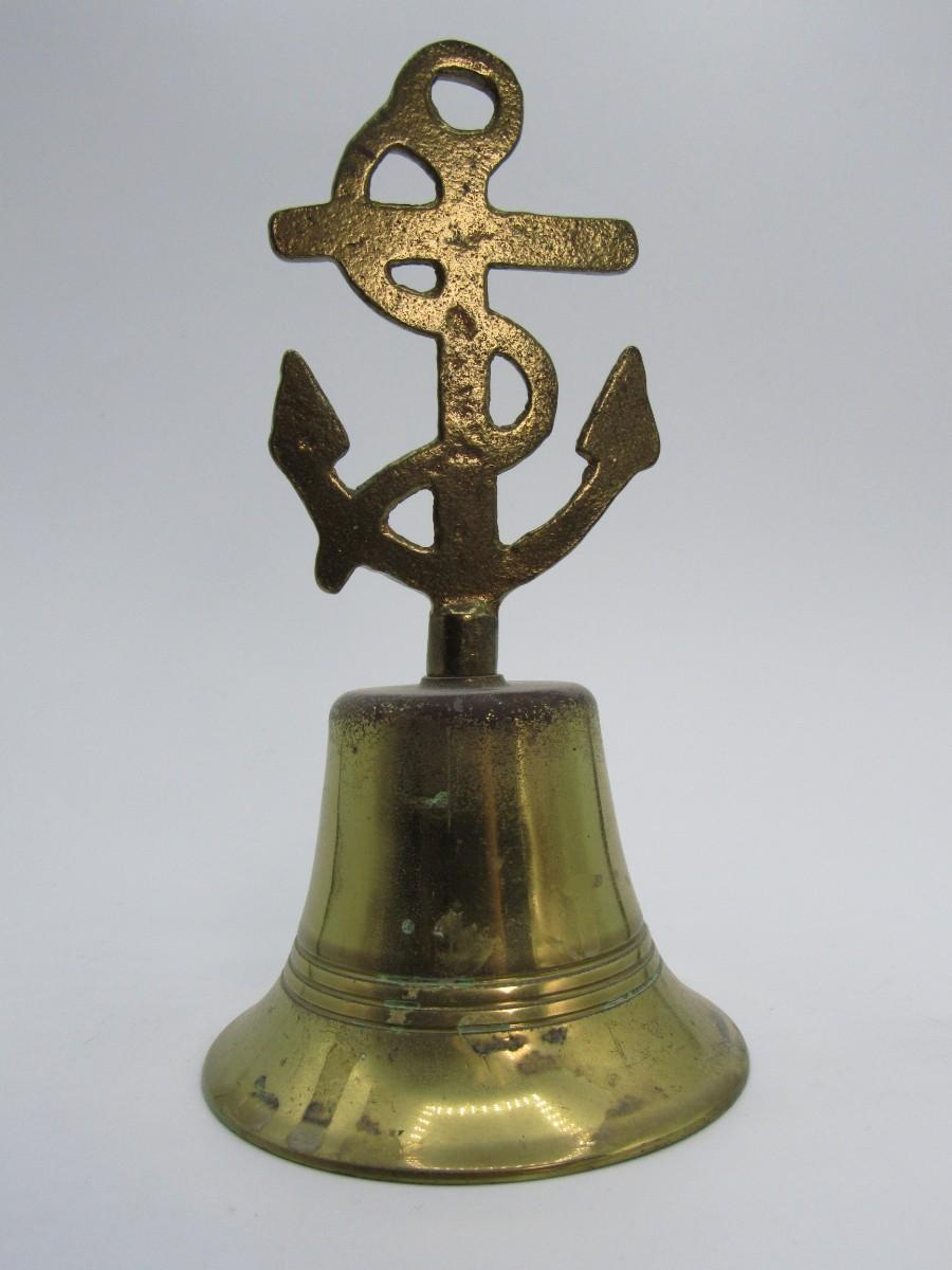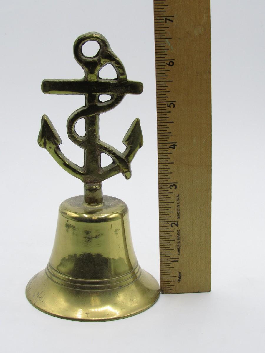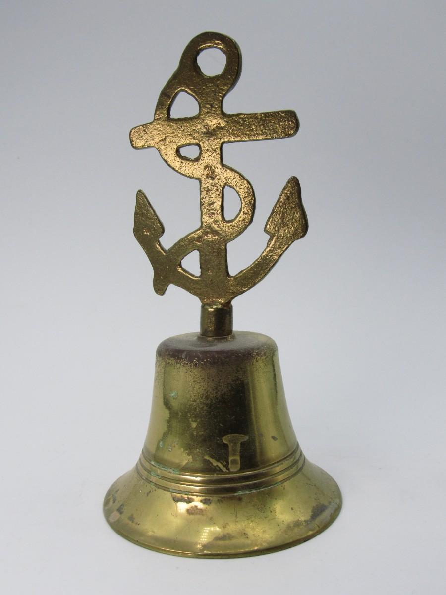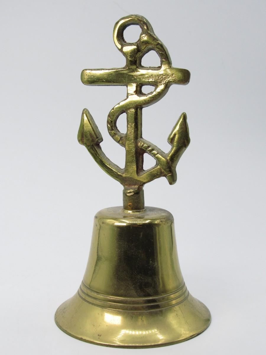 Vintage Brass Nautical Tied Off Anchor Designed Handle Made in England Bell