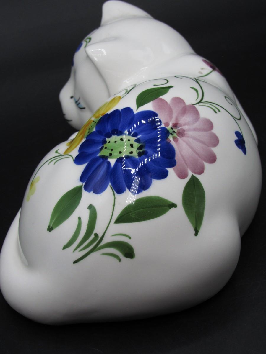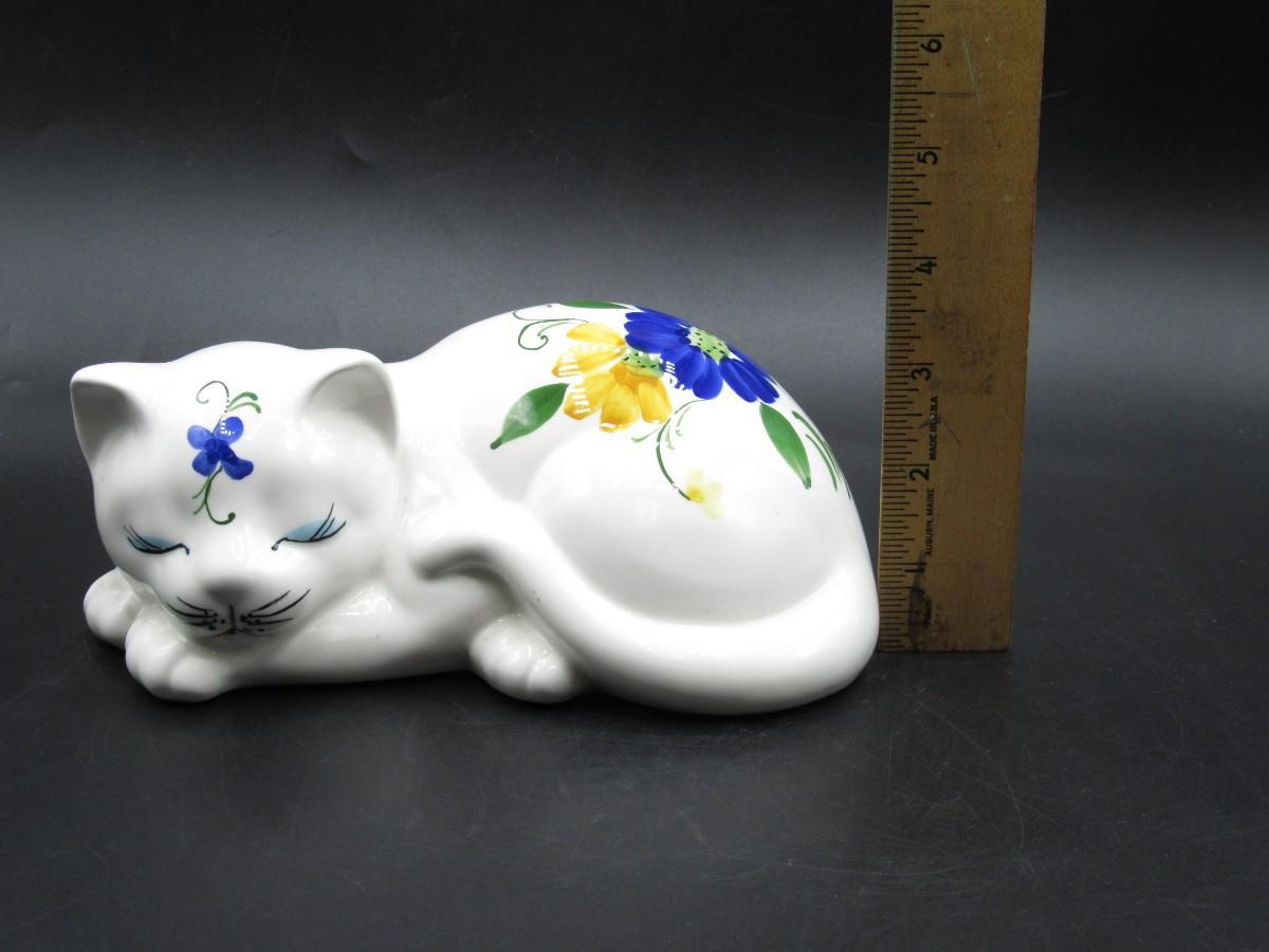 Retro Hand Painted Art Deco Ceramic Pottery Art Sleeping Flower Cat Figurine