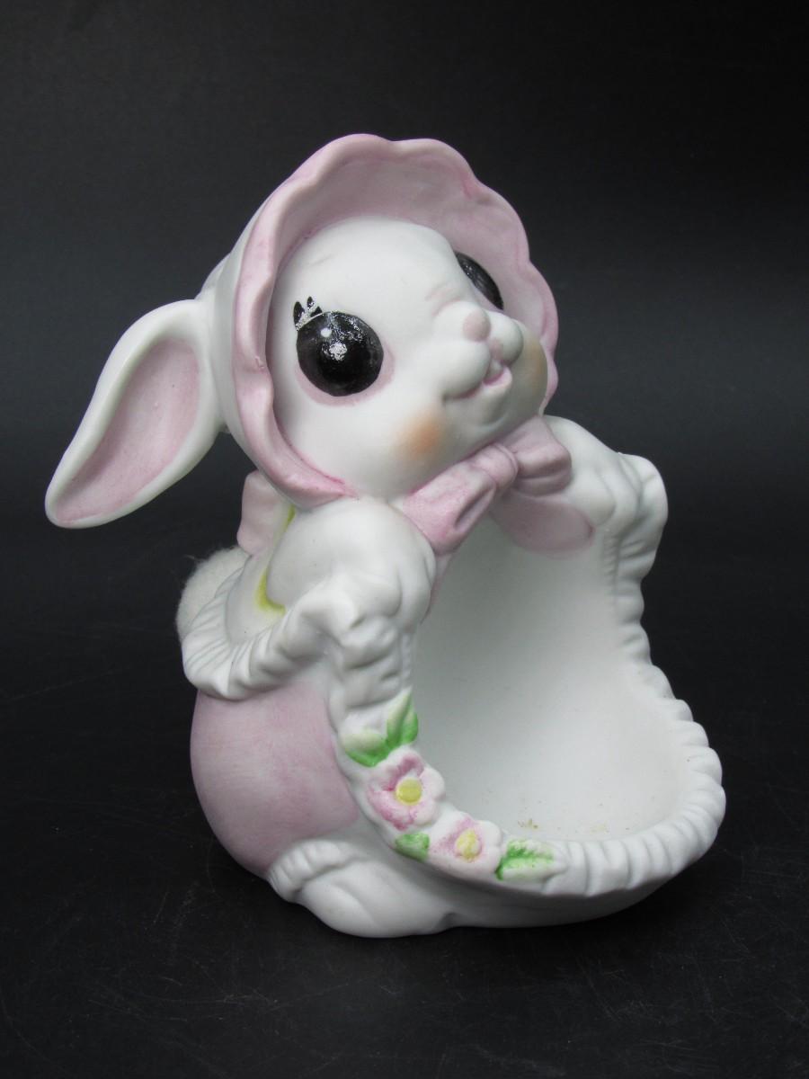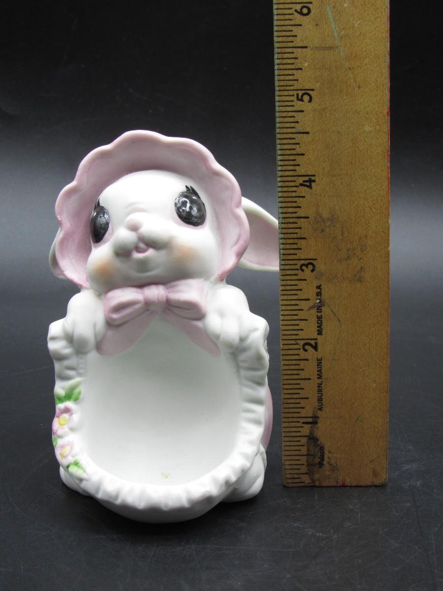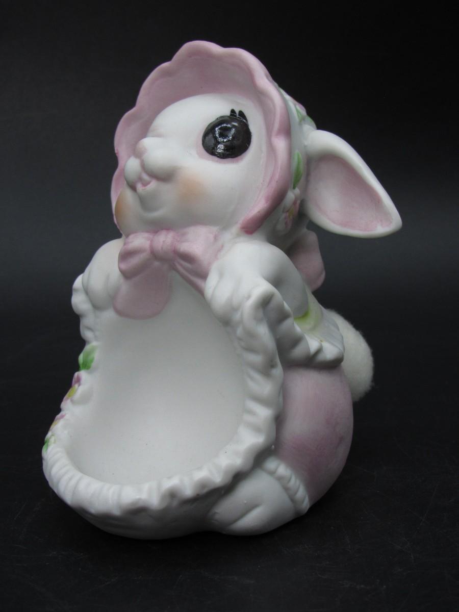 Vintage Pink Easter Bunny Holding Basket Egg Art Candy Soap Display Holder