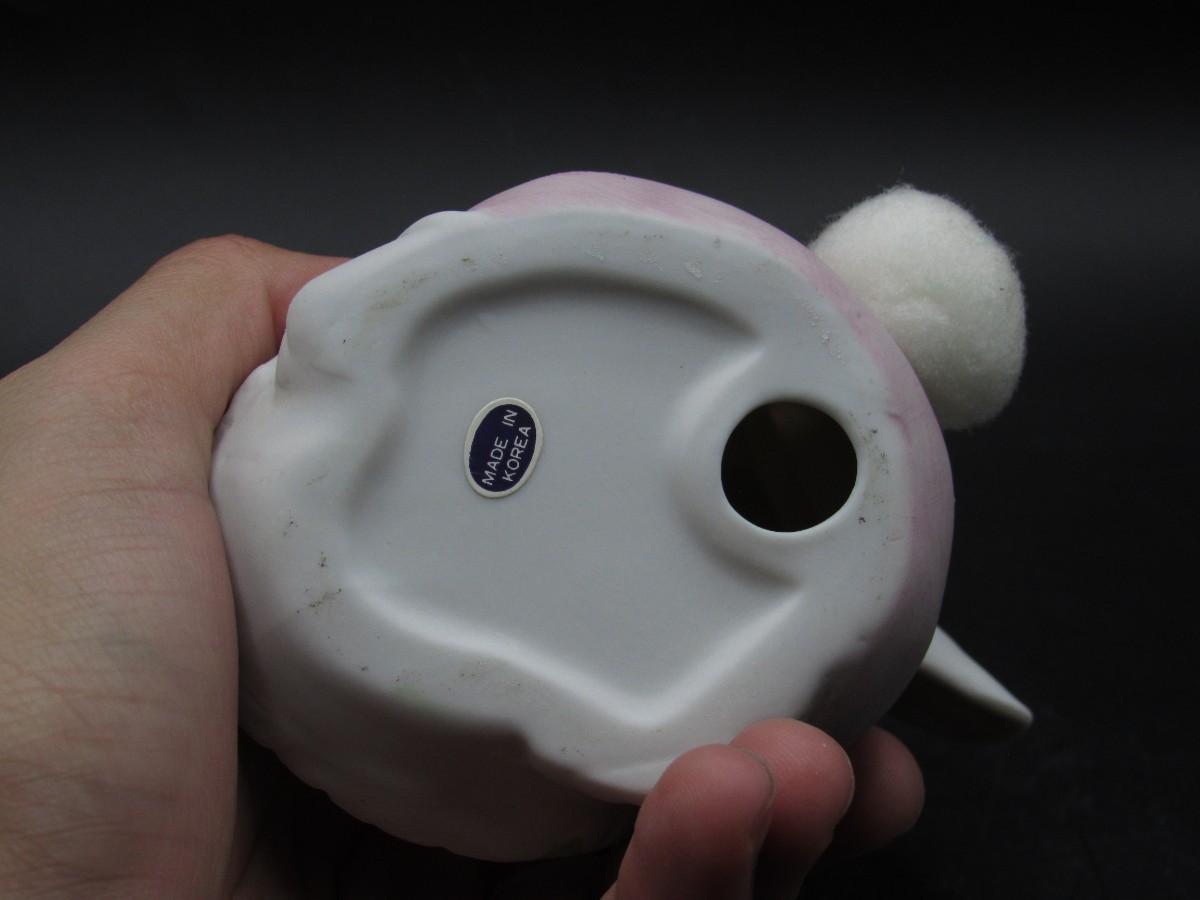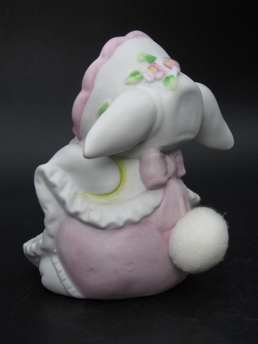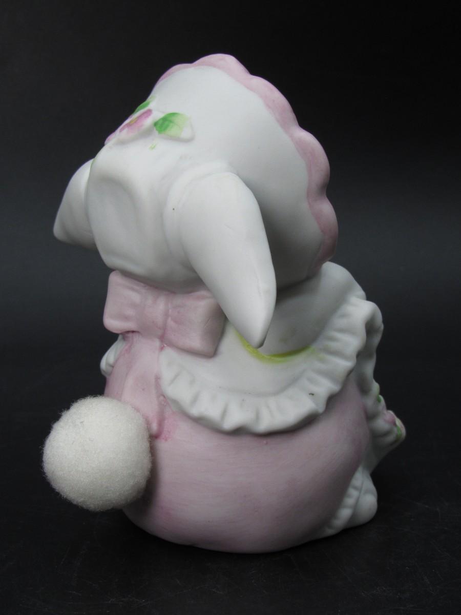 Vintage Pink Easter Bunny Holding Basket Egg Art Candy Soap Display Holder