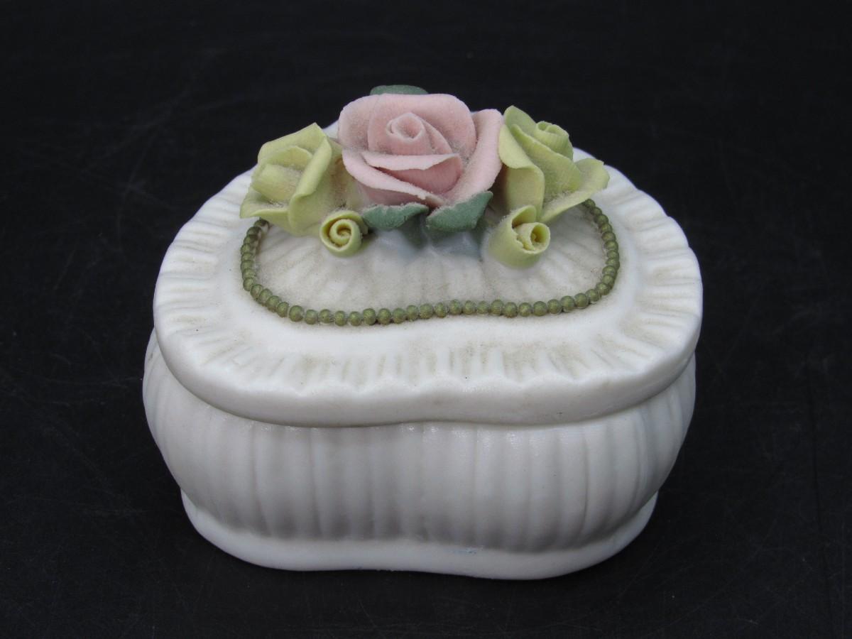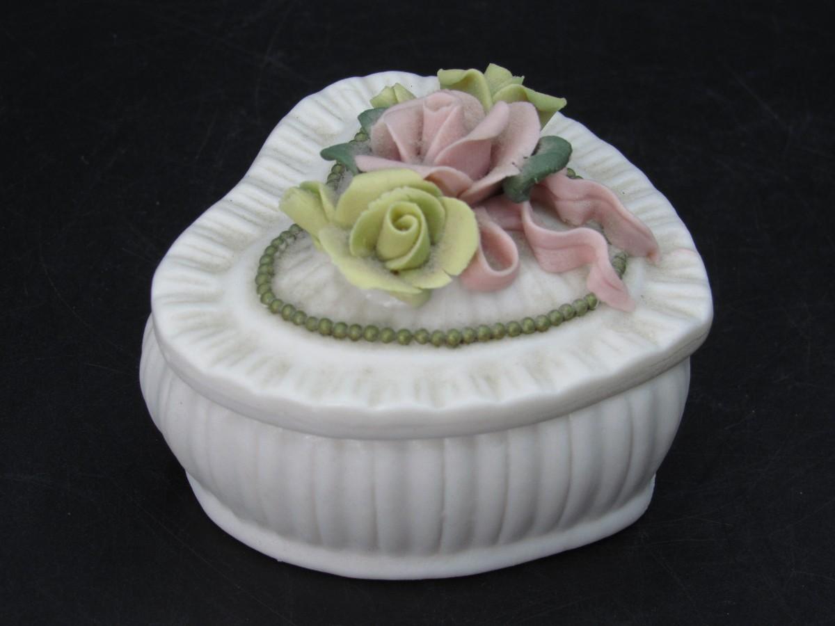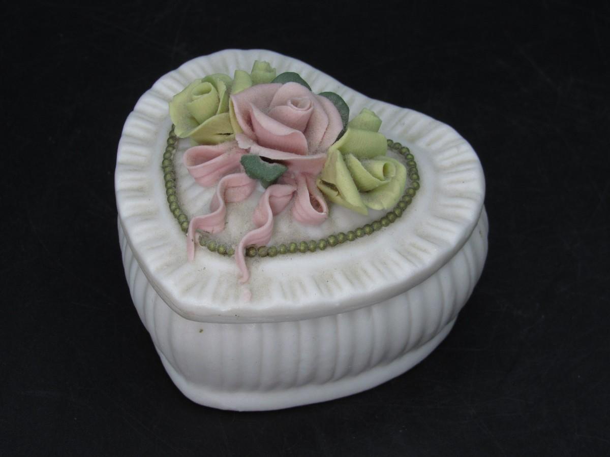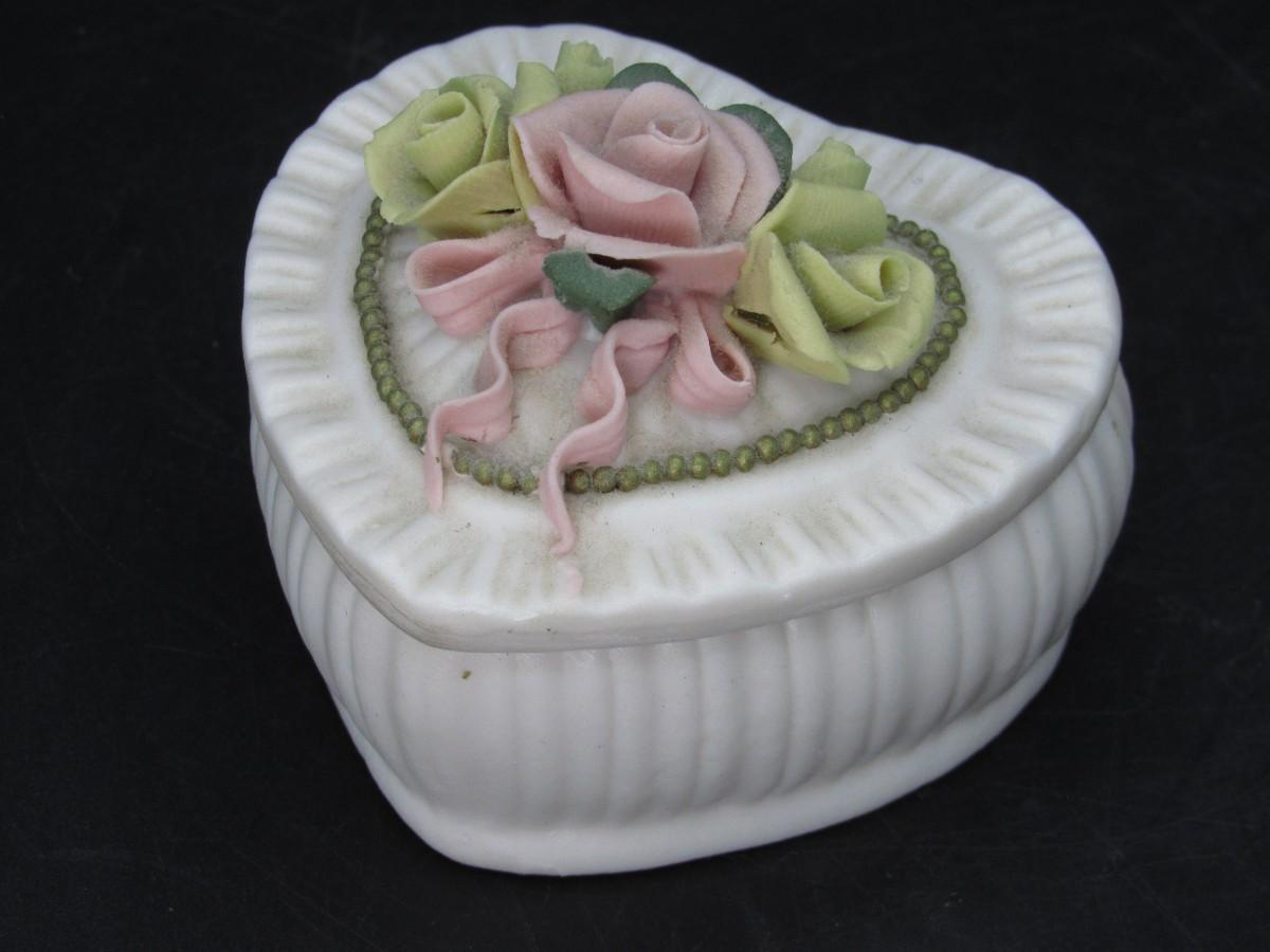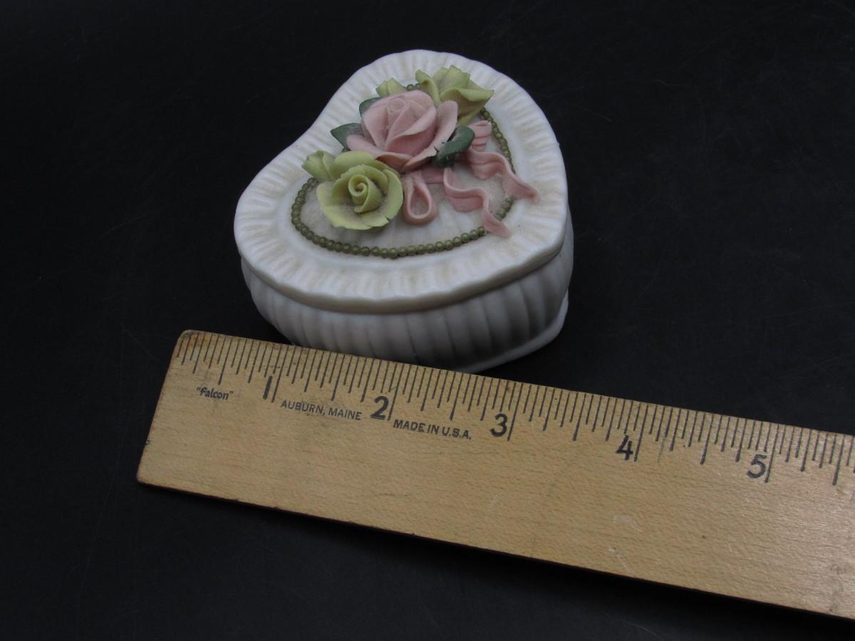Small Retro Heart Shaped Baby Bridal White Pink Floral Trinket Jewelry Snuff Box