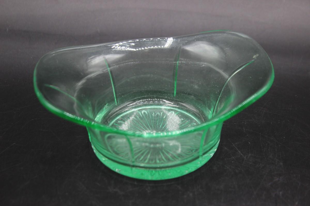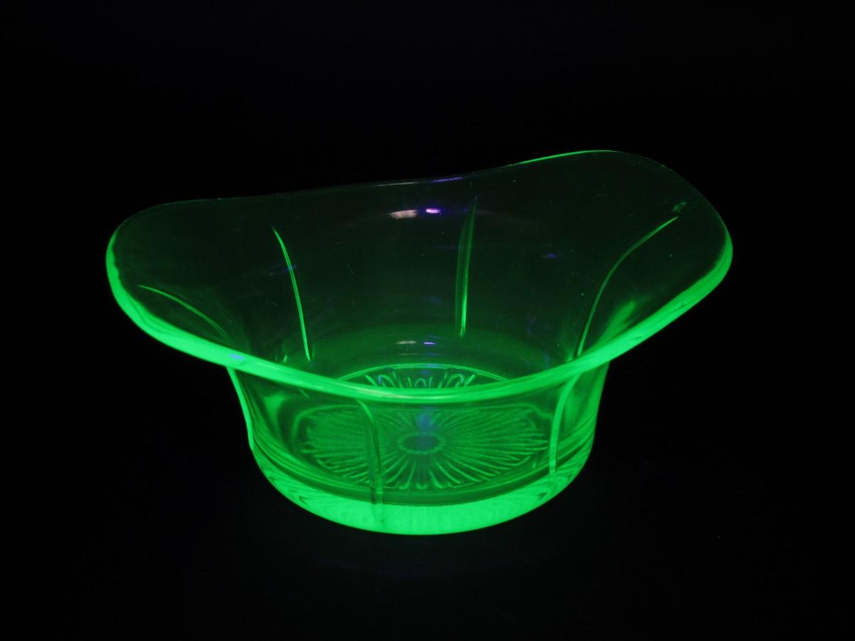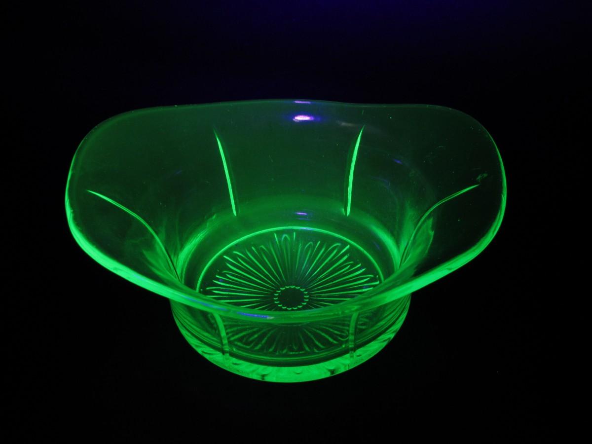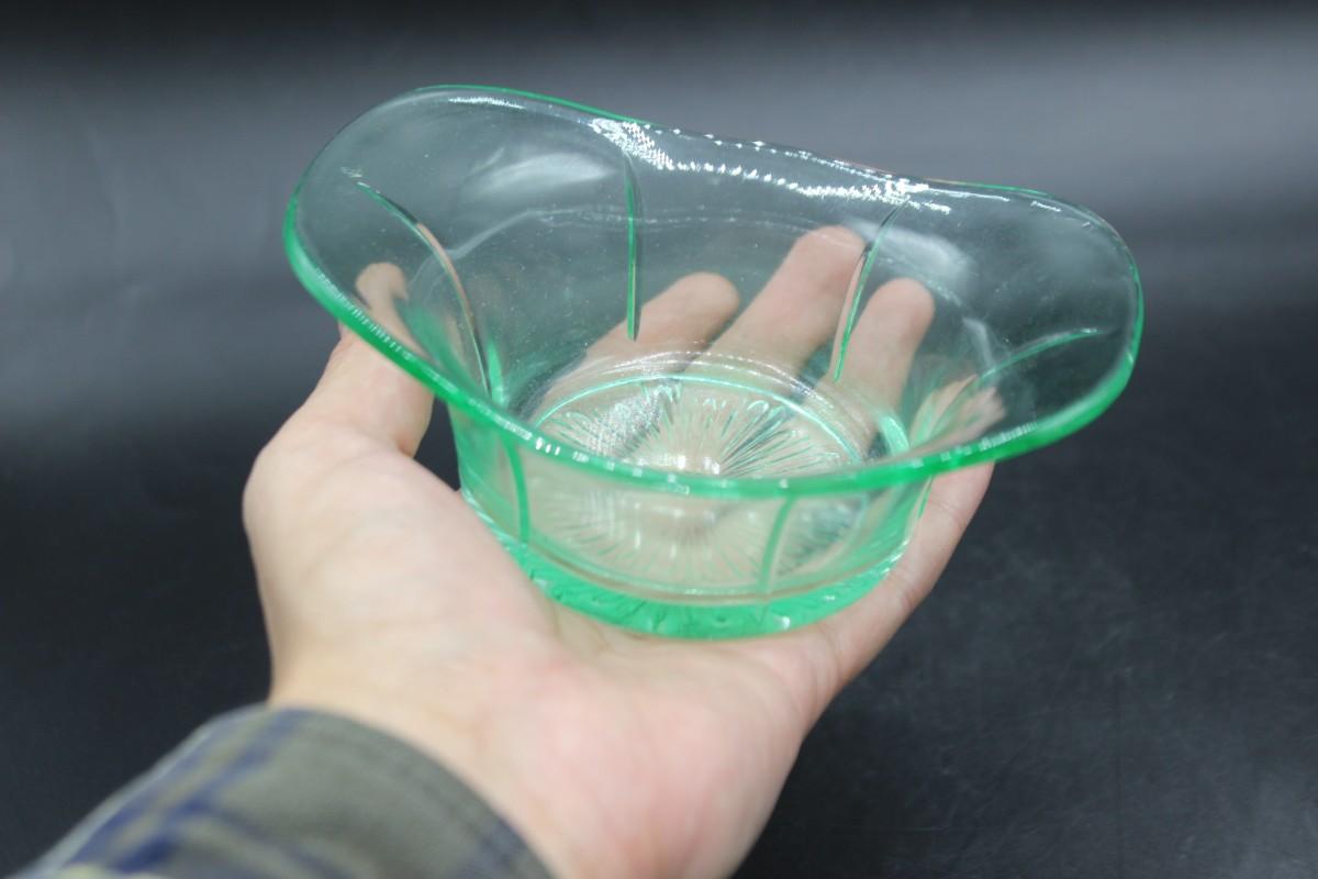 Vintage Glowing Vaseline Uranium Green Mid Century Glass Serving Display Dish