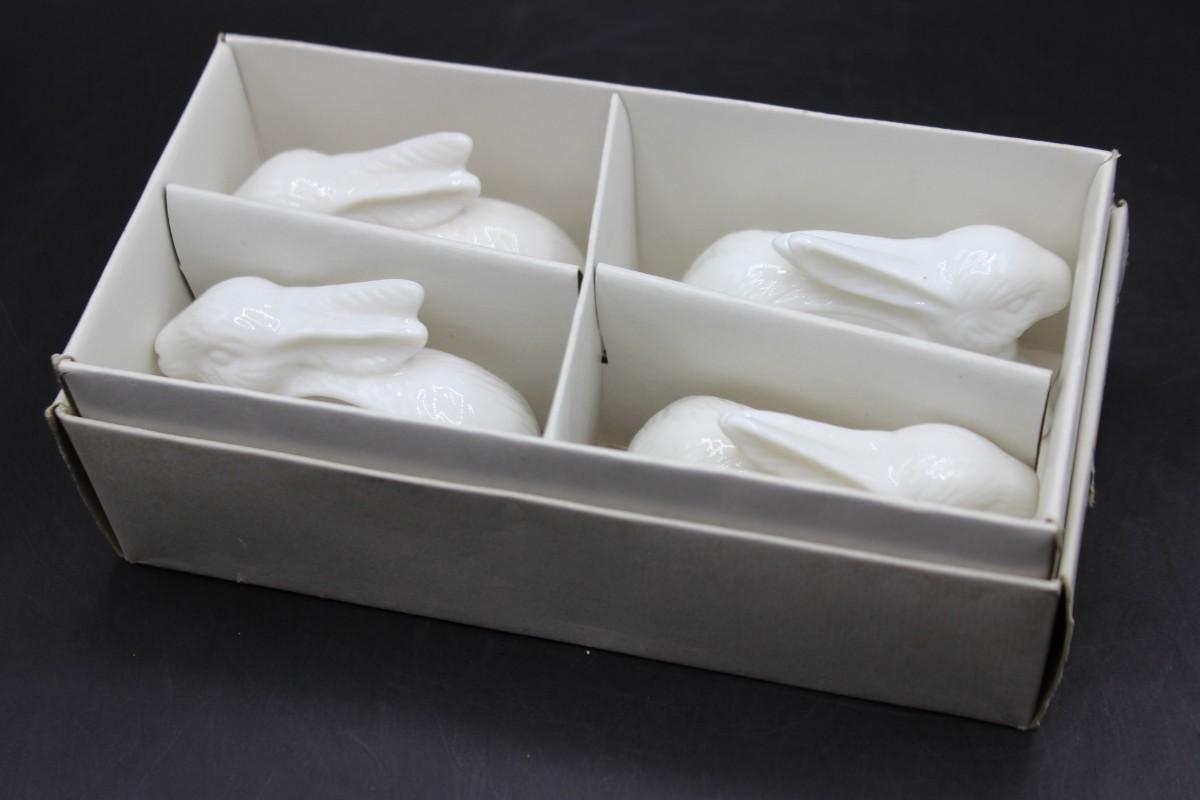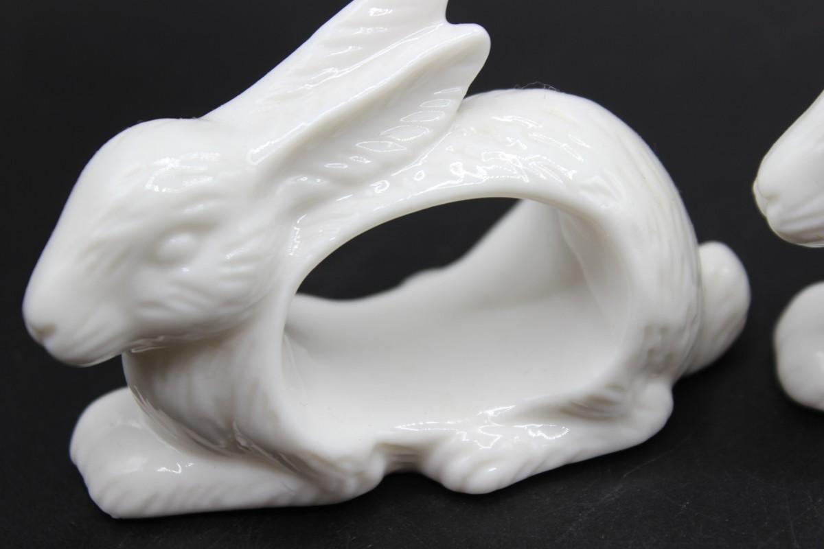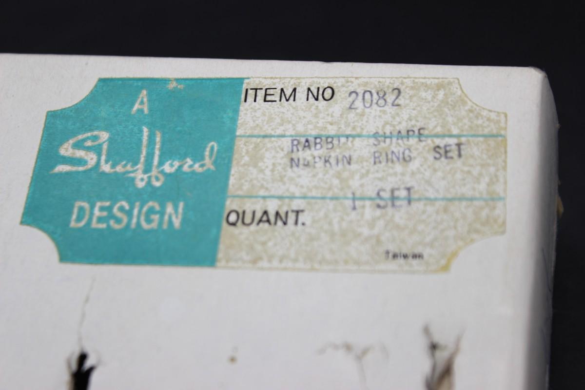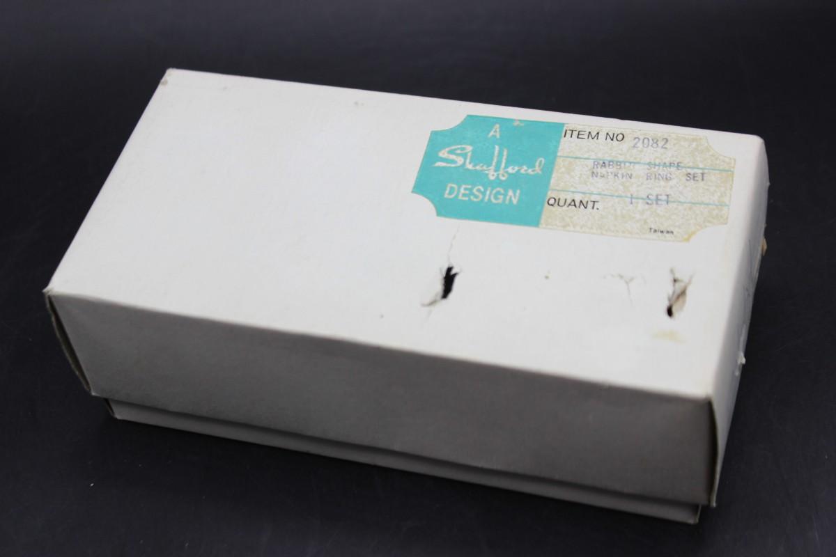 Vintage Shafford Design White Porcelain Rabbit Bunny Shape Napkin Ring Set with Original Box