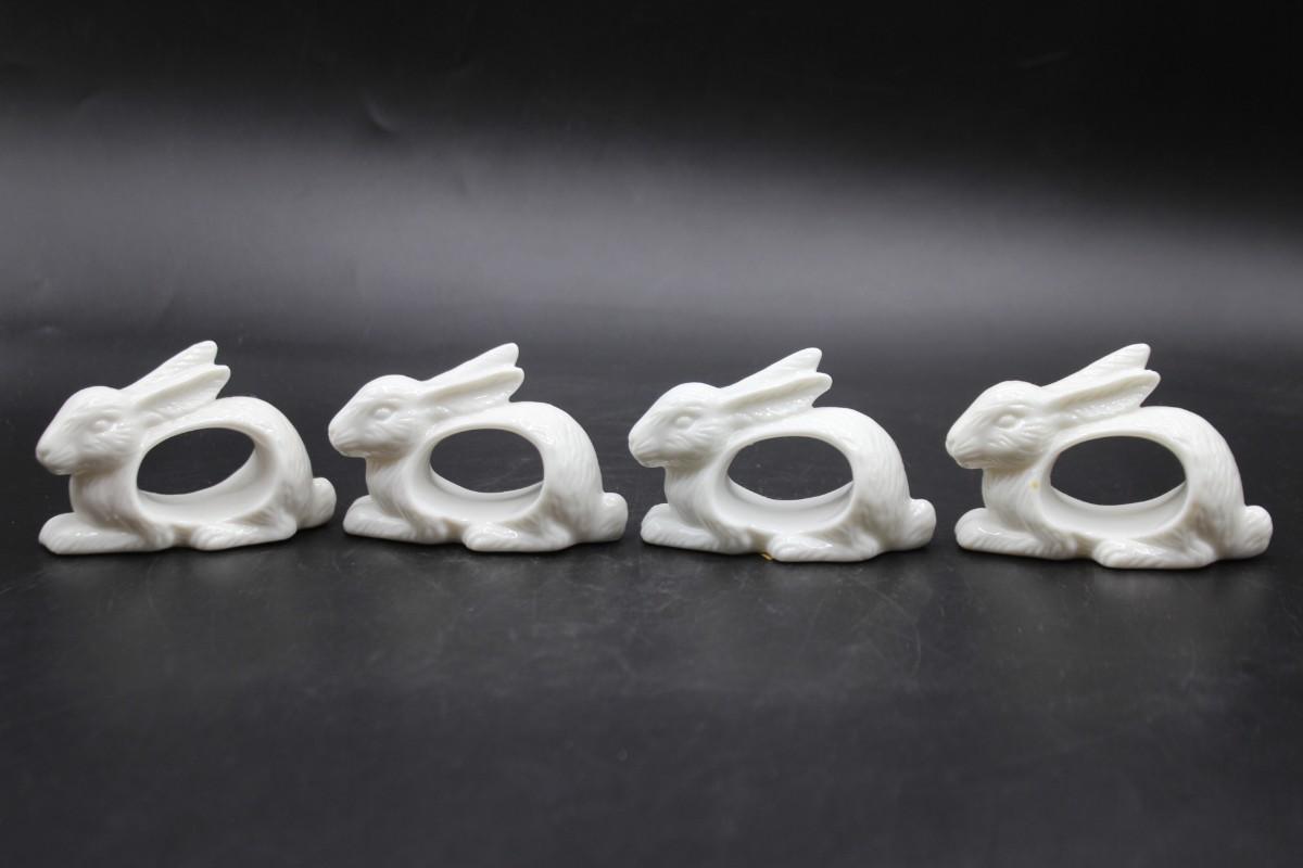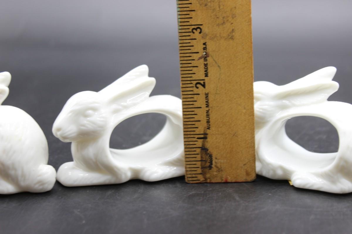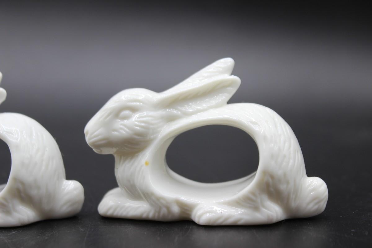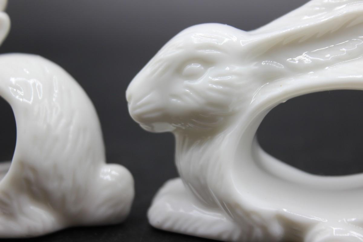 Vintage Shafford Design White Porcelain Rabbit Bunny Shape Napkin Ring Set with Original Box