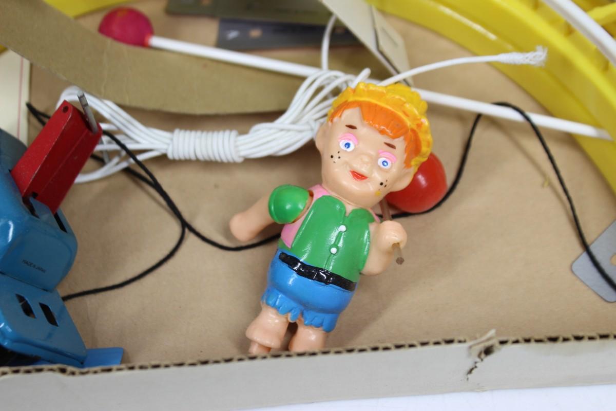 There is some normal vintage wear to the toy pieces and there is some ripping on the box. Has not been checked for completeness and has not been tested.