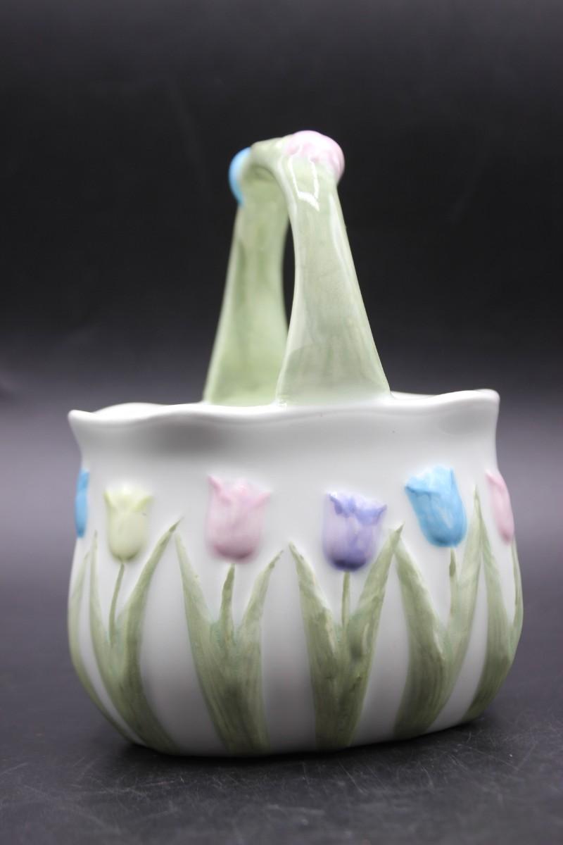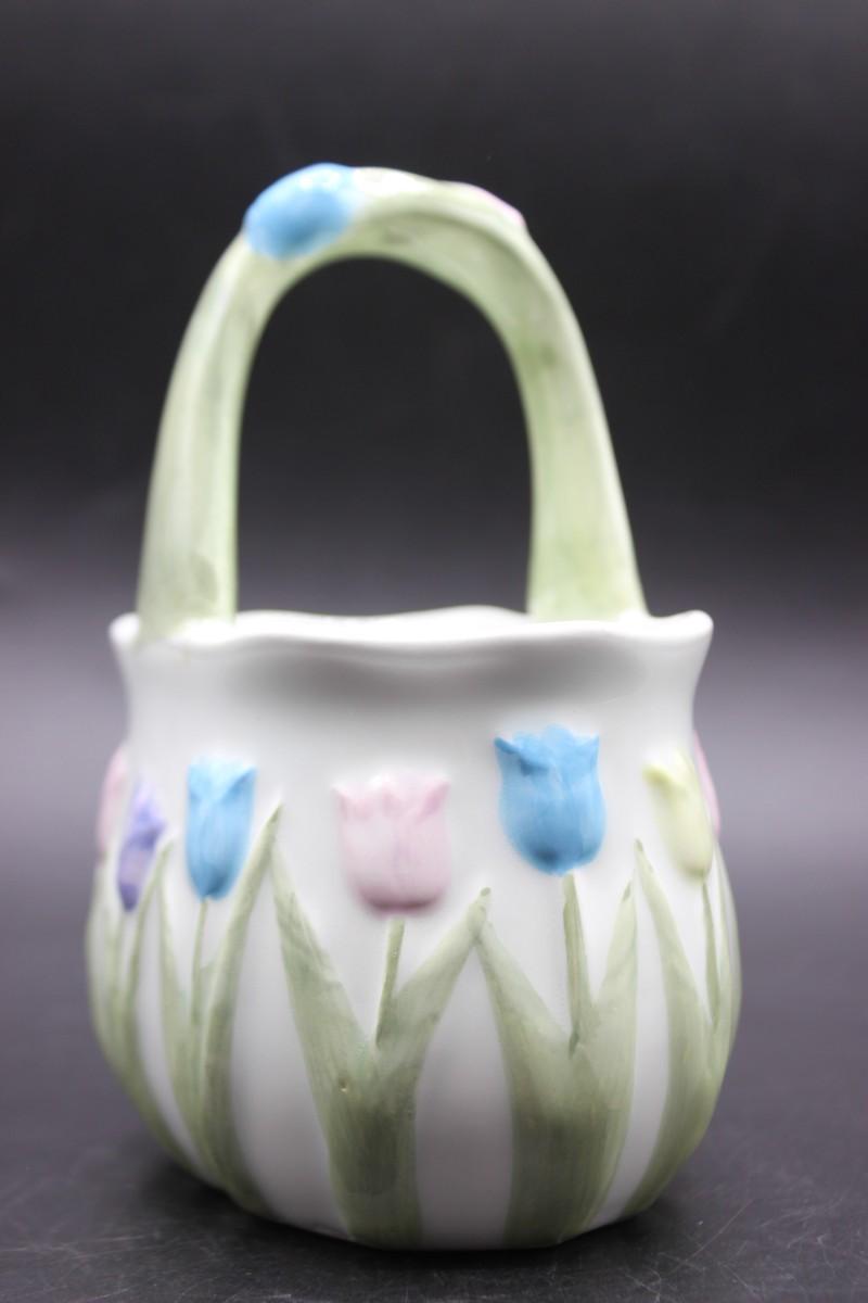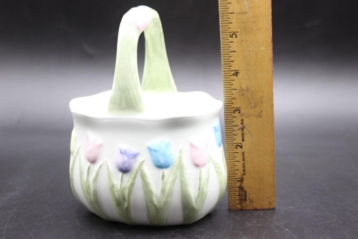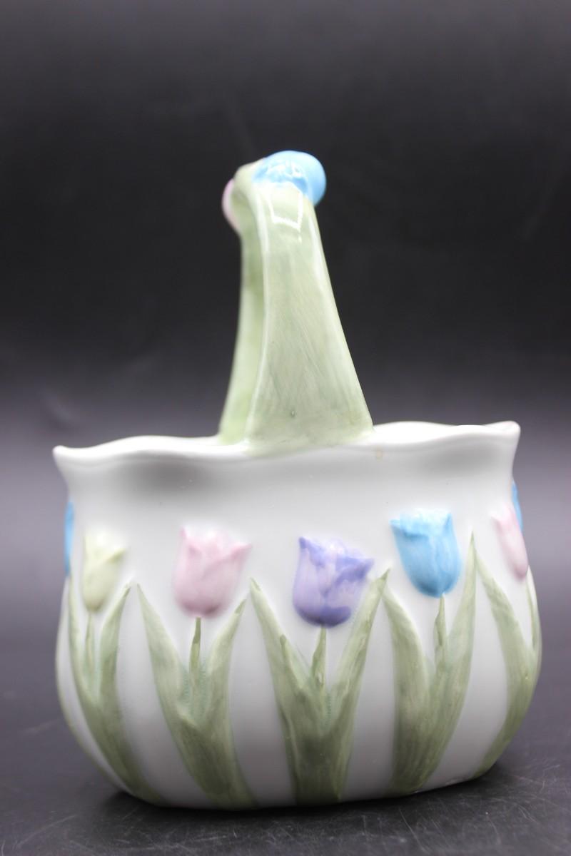 Vintage Takahashi Accents Japanese Ceramic Basket Flower Tulip Figurine Piece