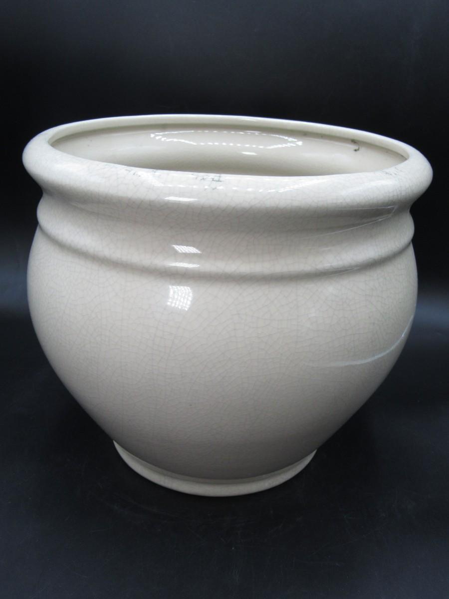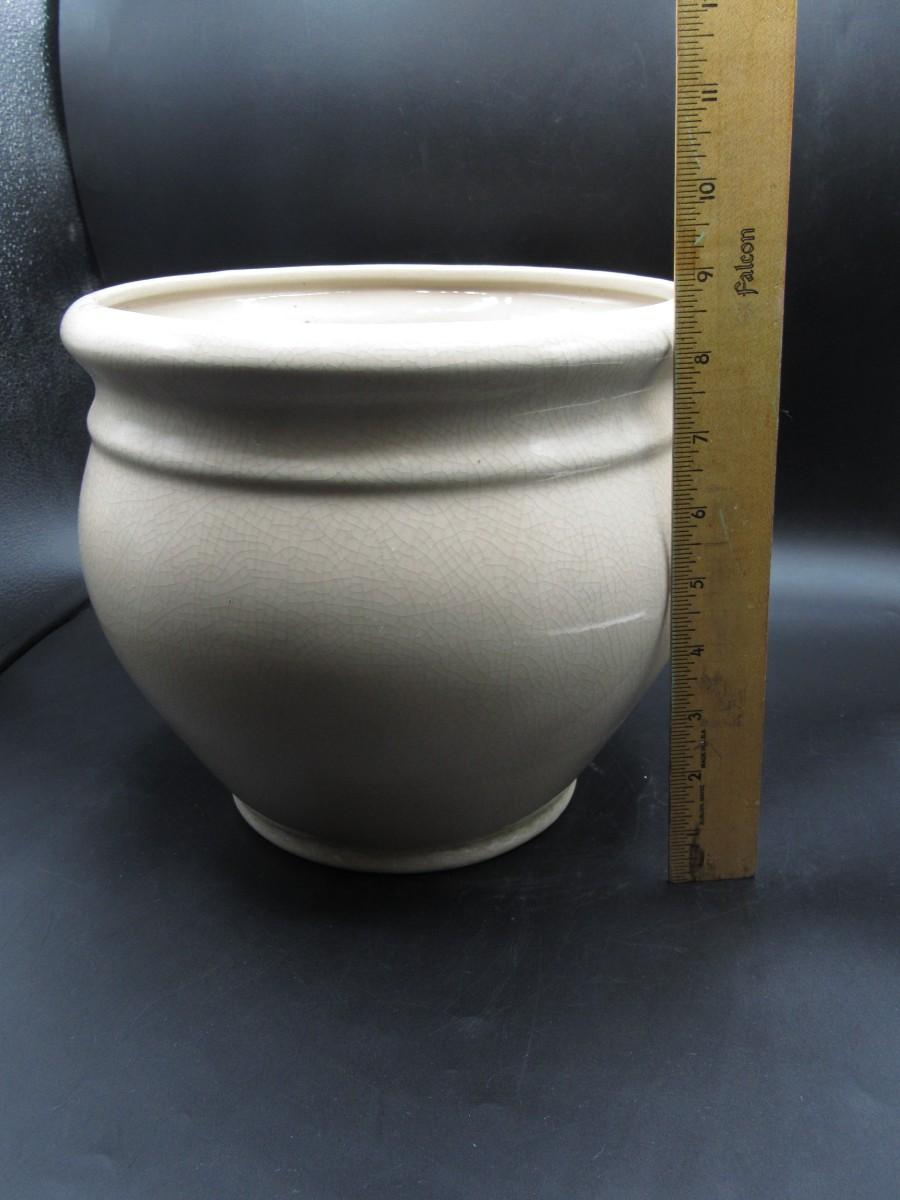 There is crazing all over the planter, but there is no significant damage and in overall good useable condition. Check pictures for more details and sizing.