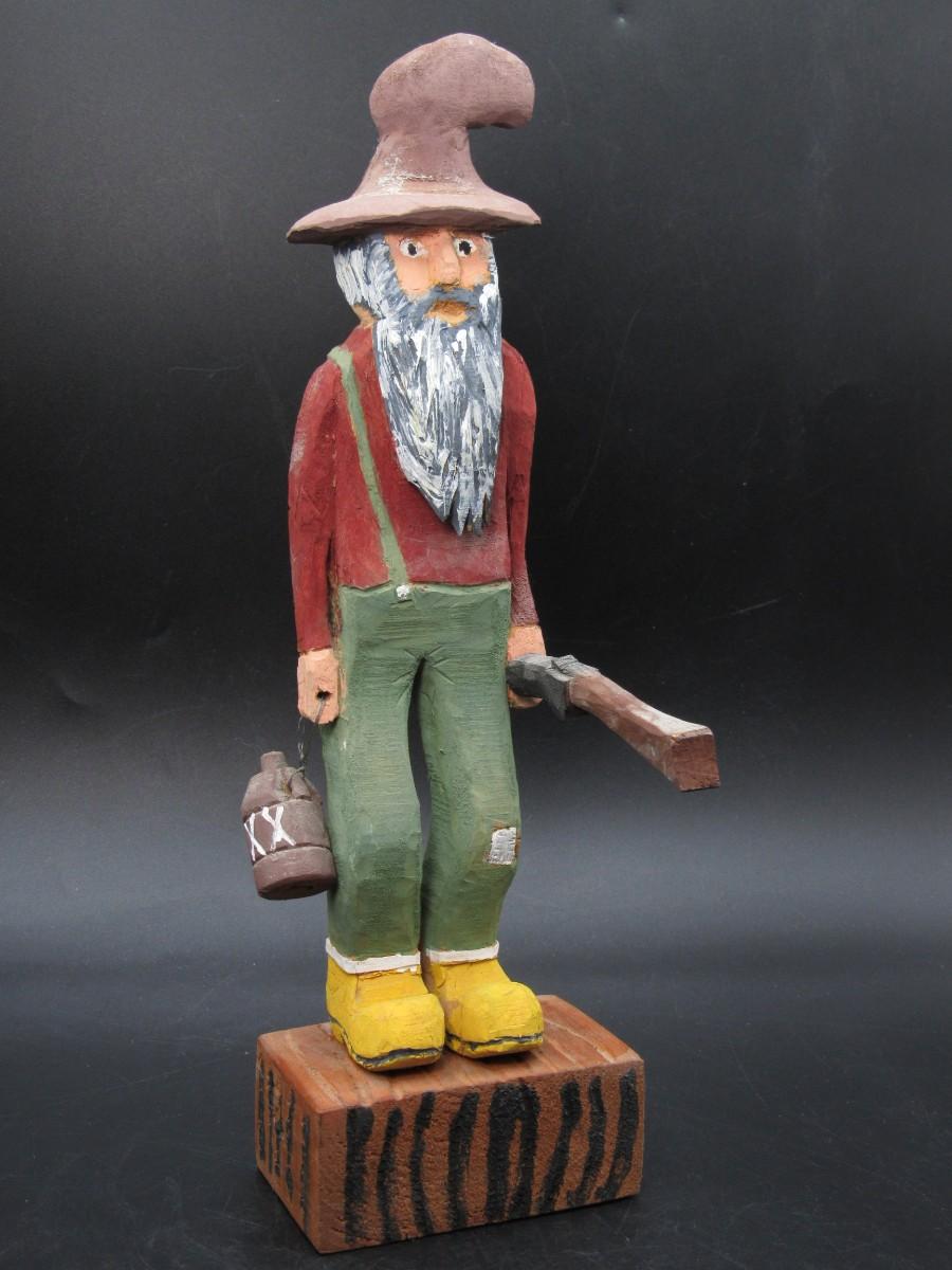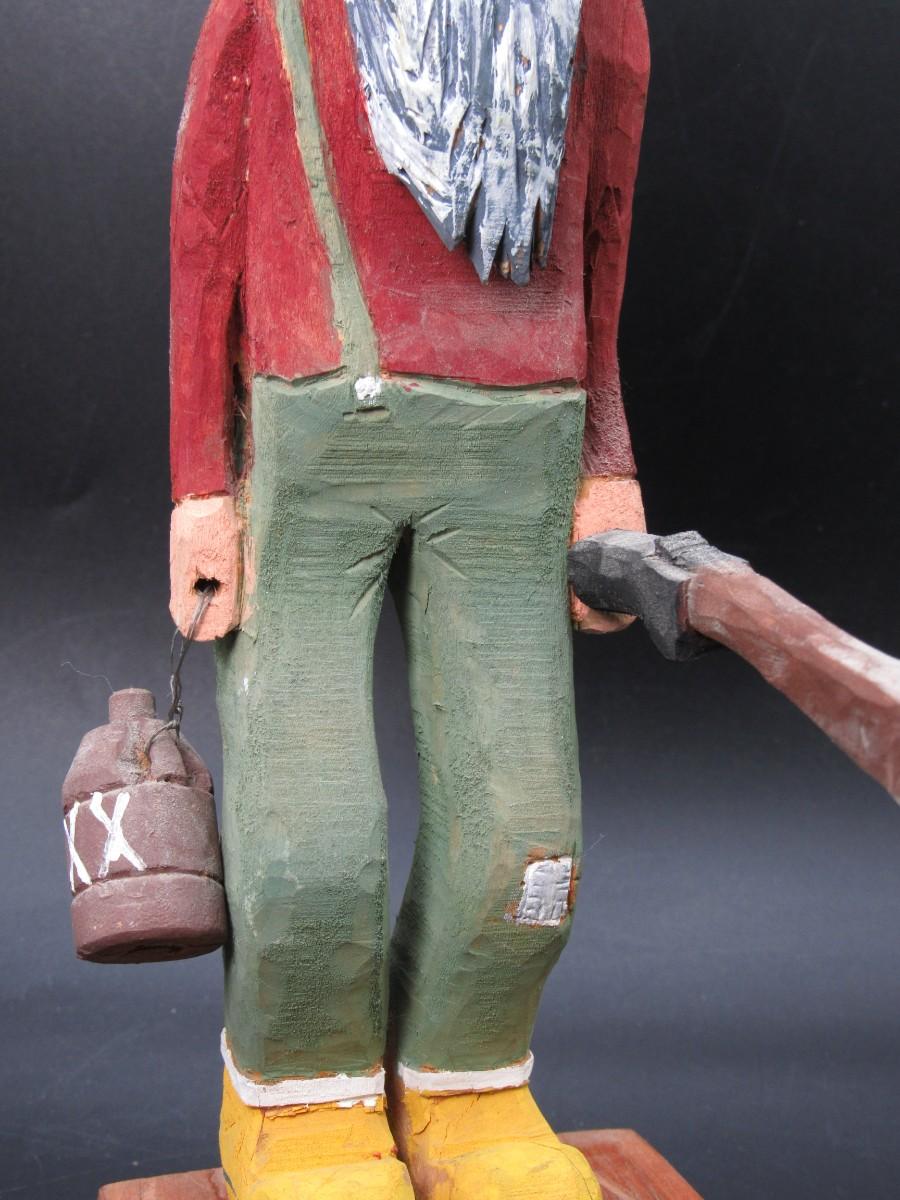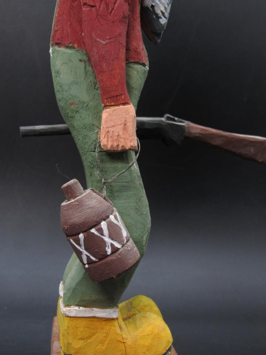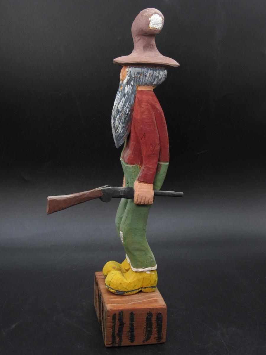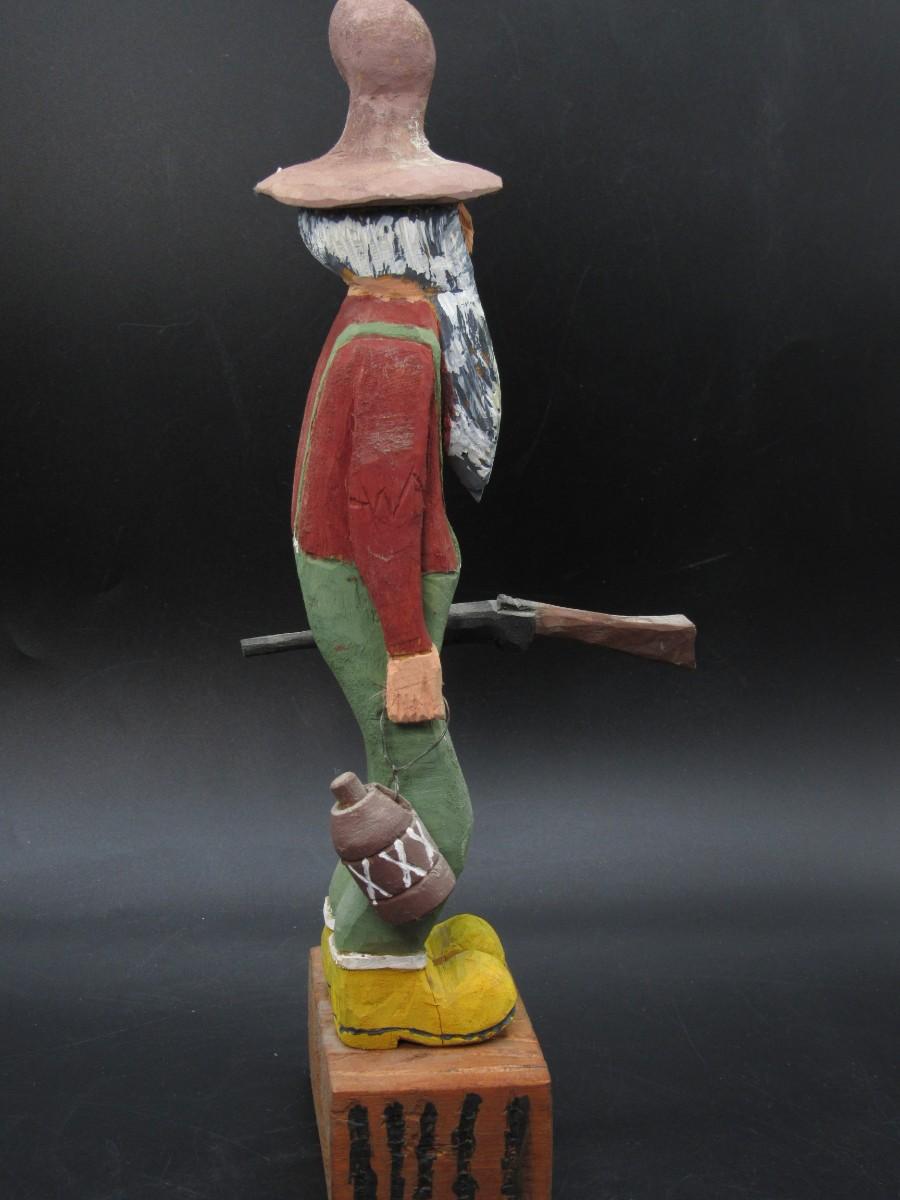 American Folk Art Carved Wooden Old Timer Holding Gun & Moonshine Figurine