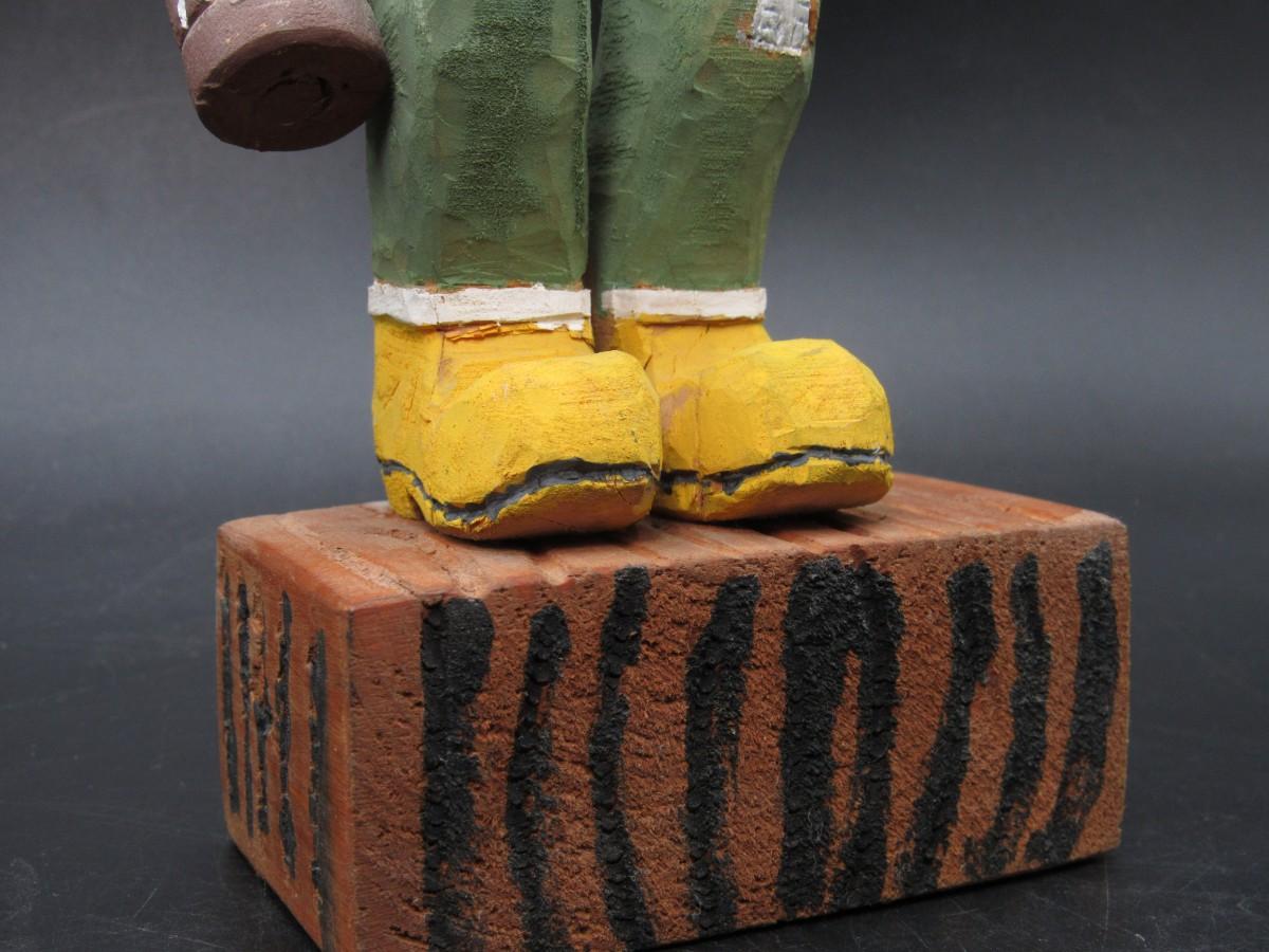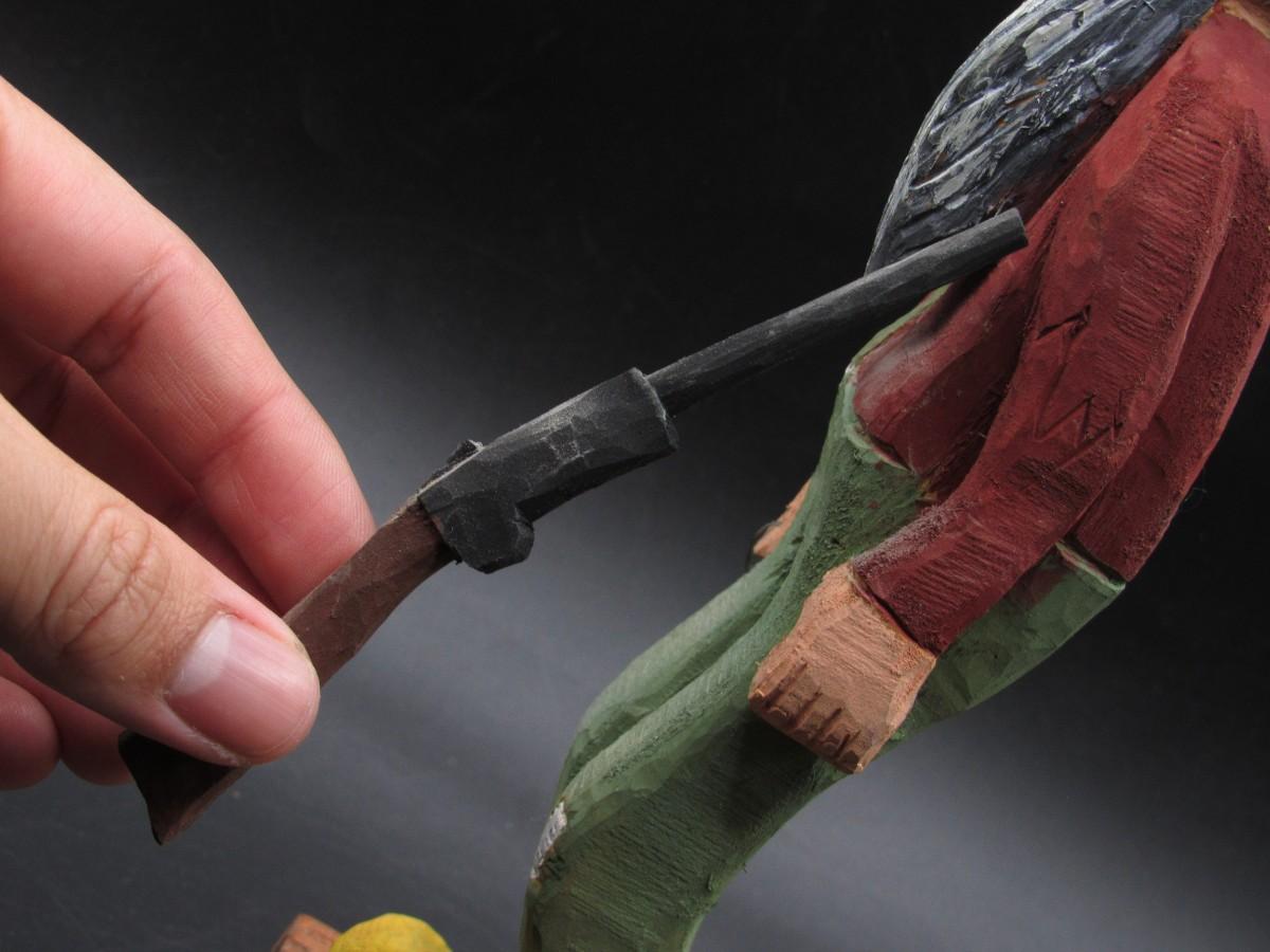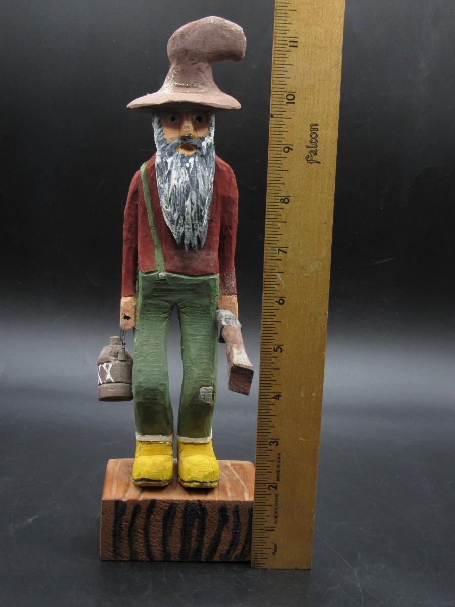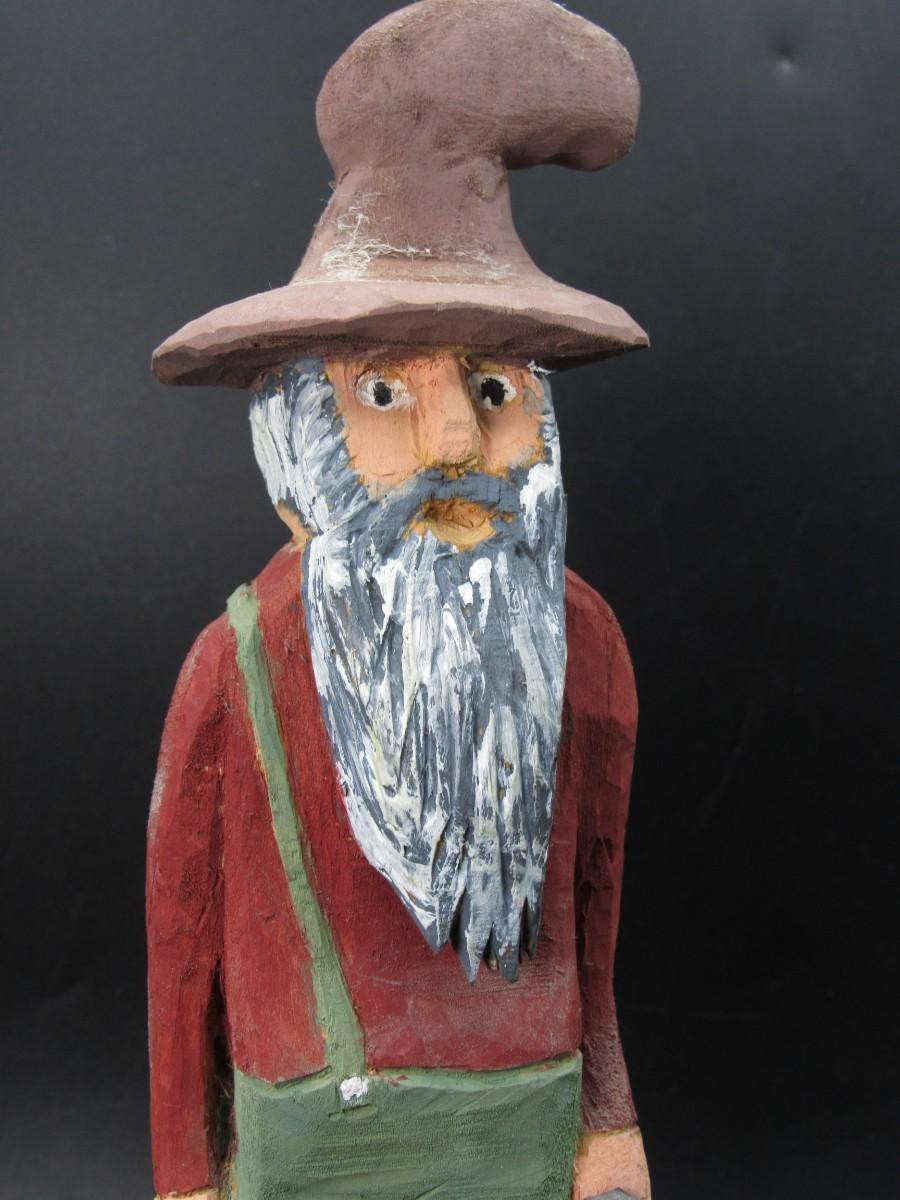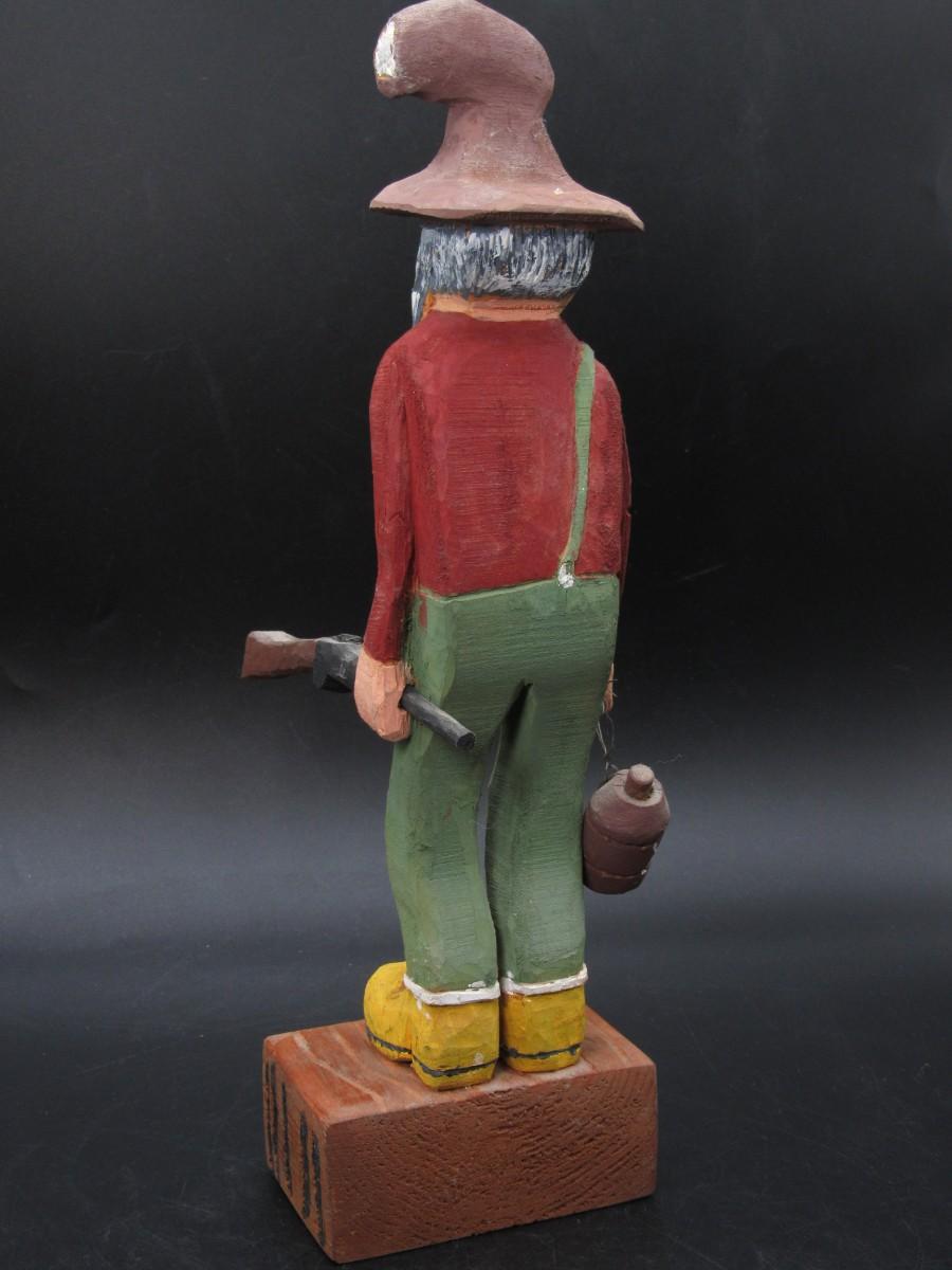 American Folk Art Carved Wooden Old Timer Holding Gun & Moonshine Figurine