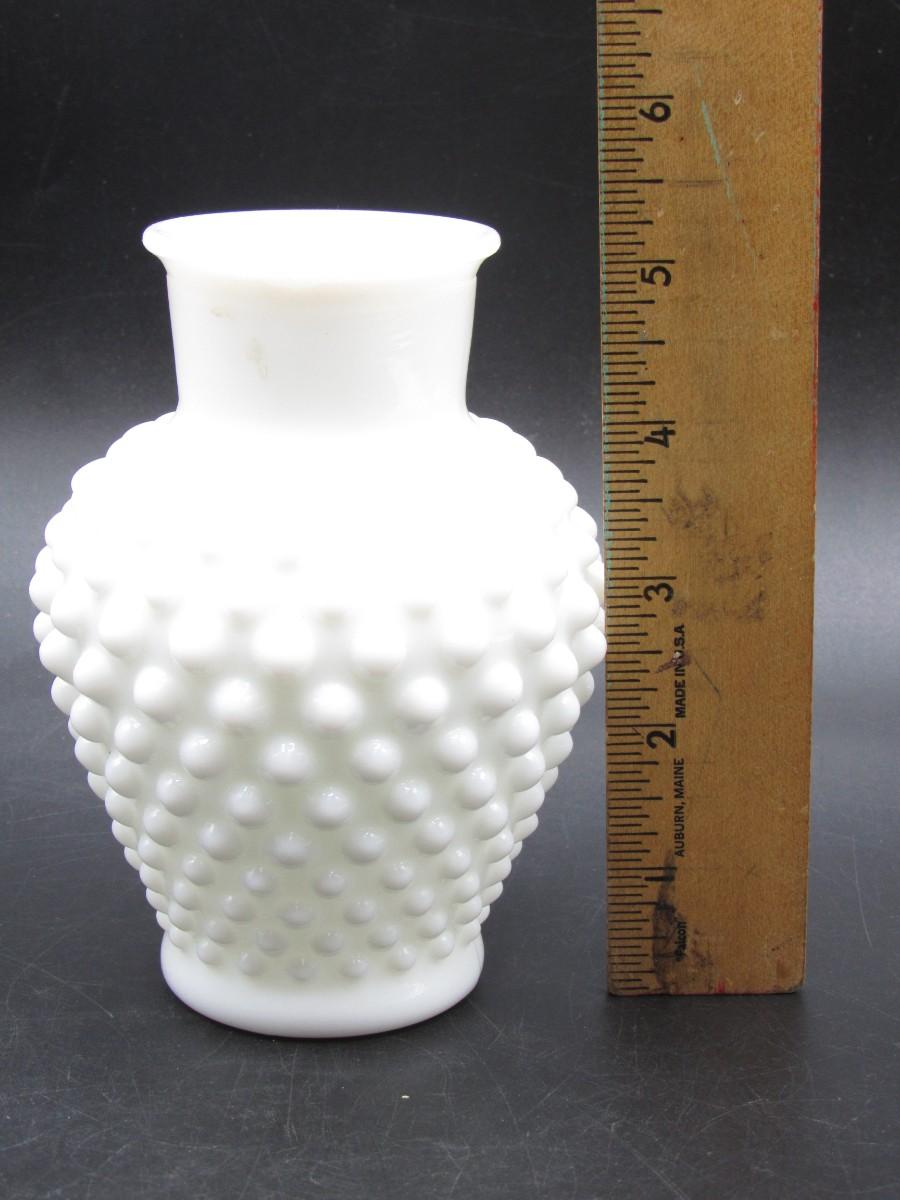Small Vintage Fenton Hobnail Milk Glass Bud Flower Vase Bottle