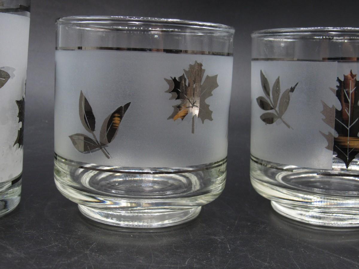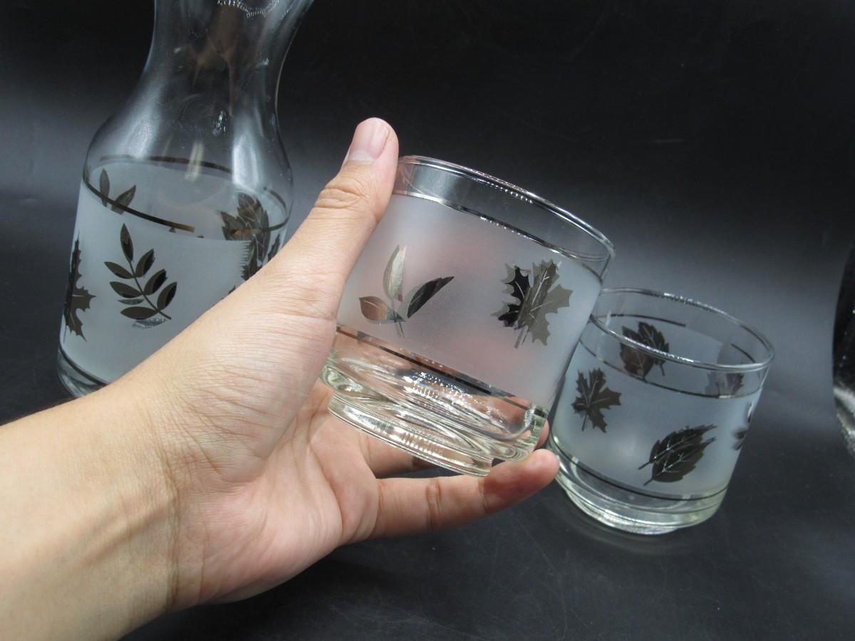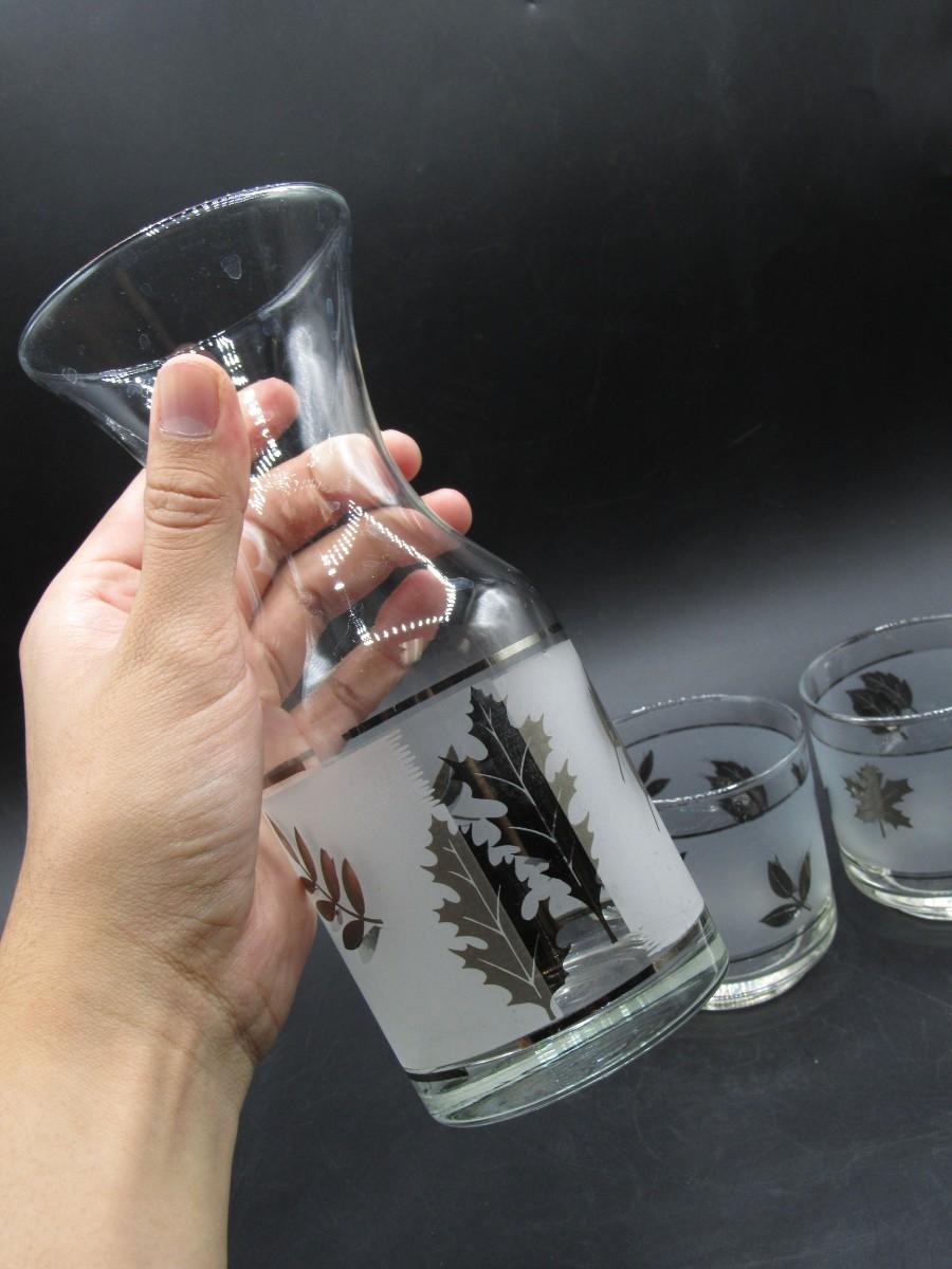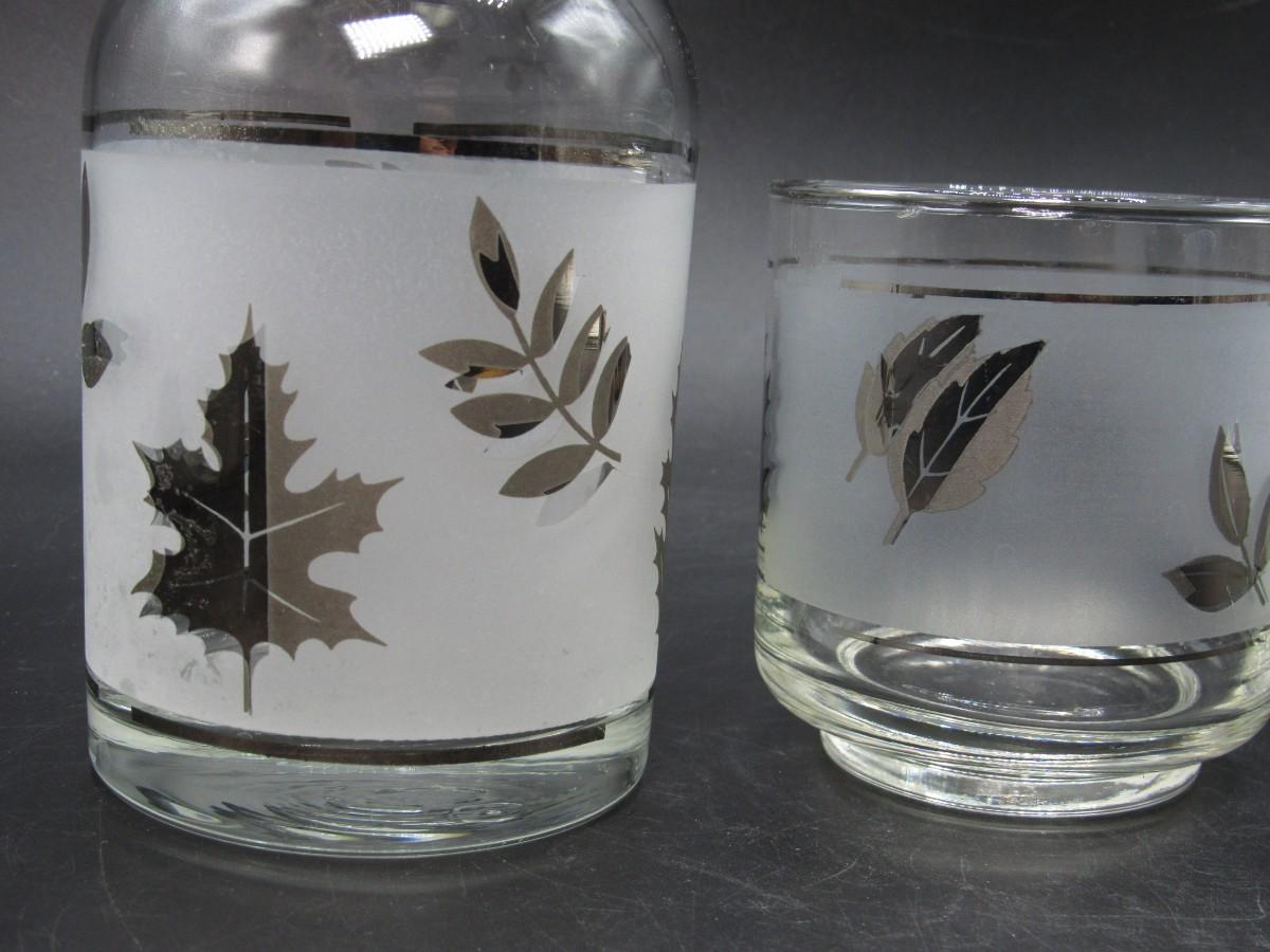 Set of Libbey Glass Silver Leaf Juice Cocktail Carafe Decanter & Drinking Tumblers