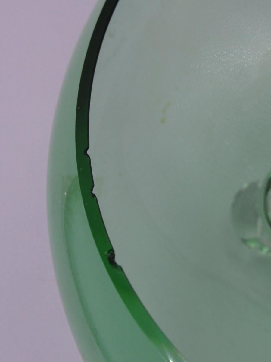 There is some chipping on the lip of the bowl, but there is no significant damage and in overall good displayable condition. Check pictures for more details and sizing.