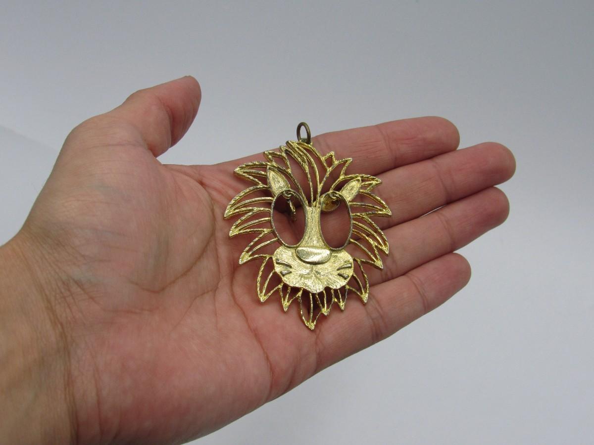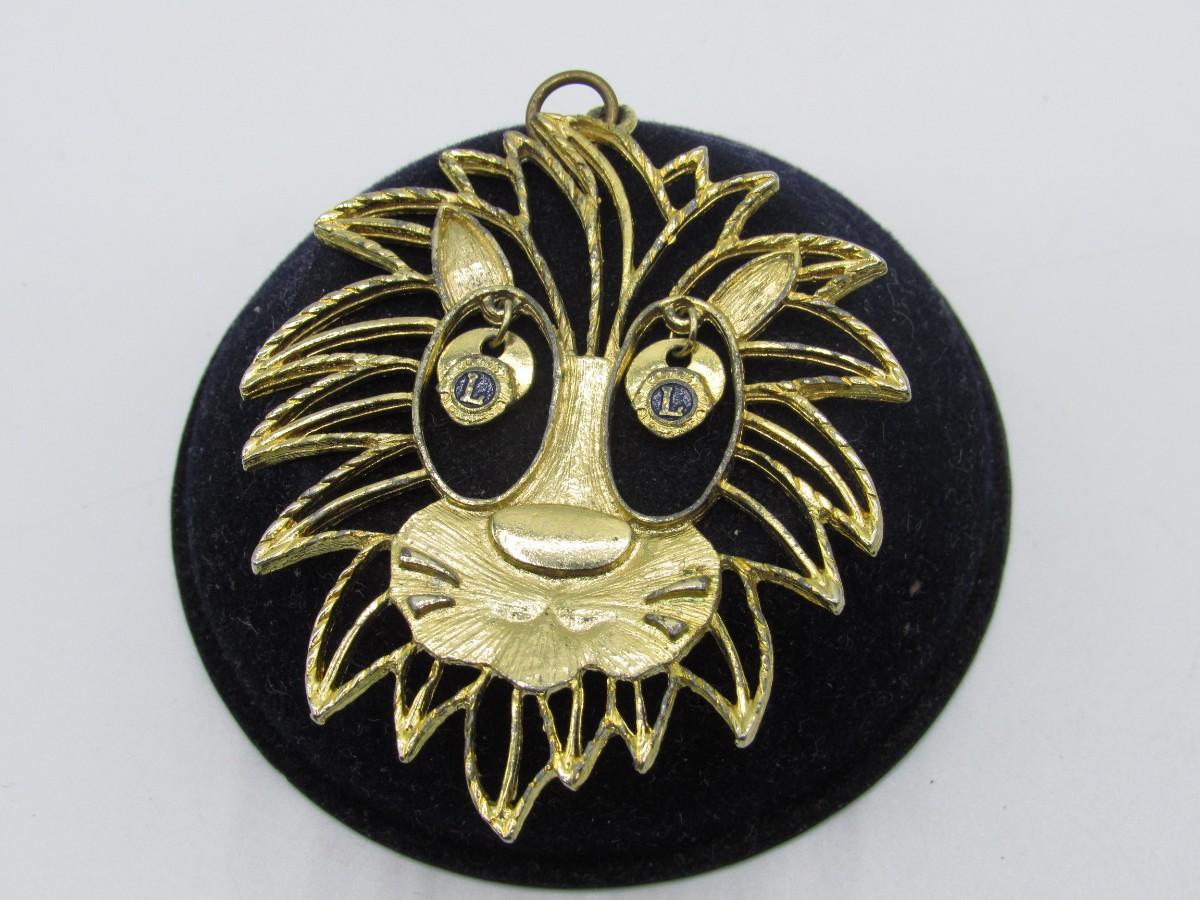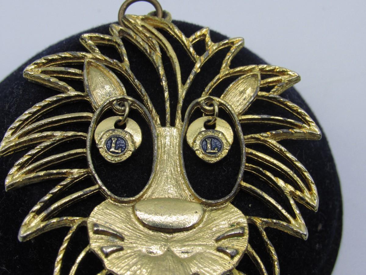 Vintage Lions Club Lion Head Jewelry Figural Pendant Necklace Pice