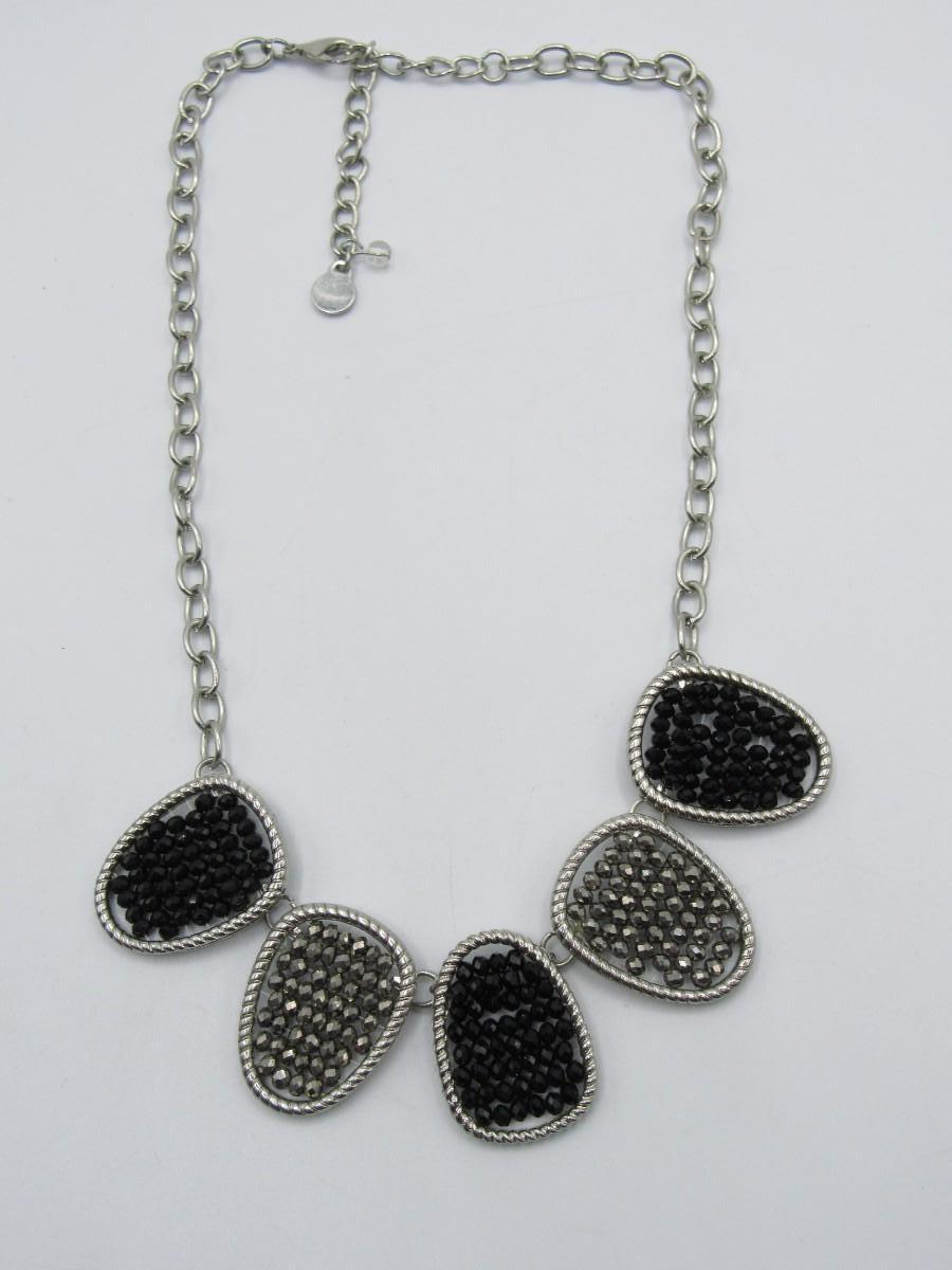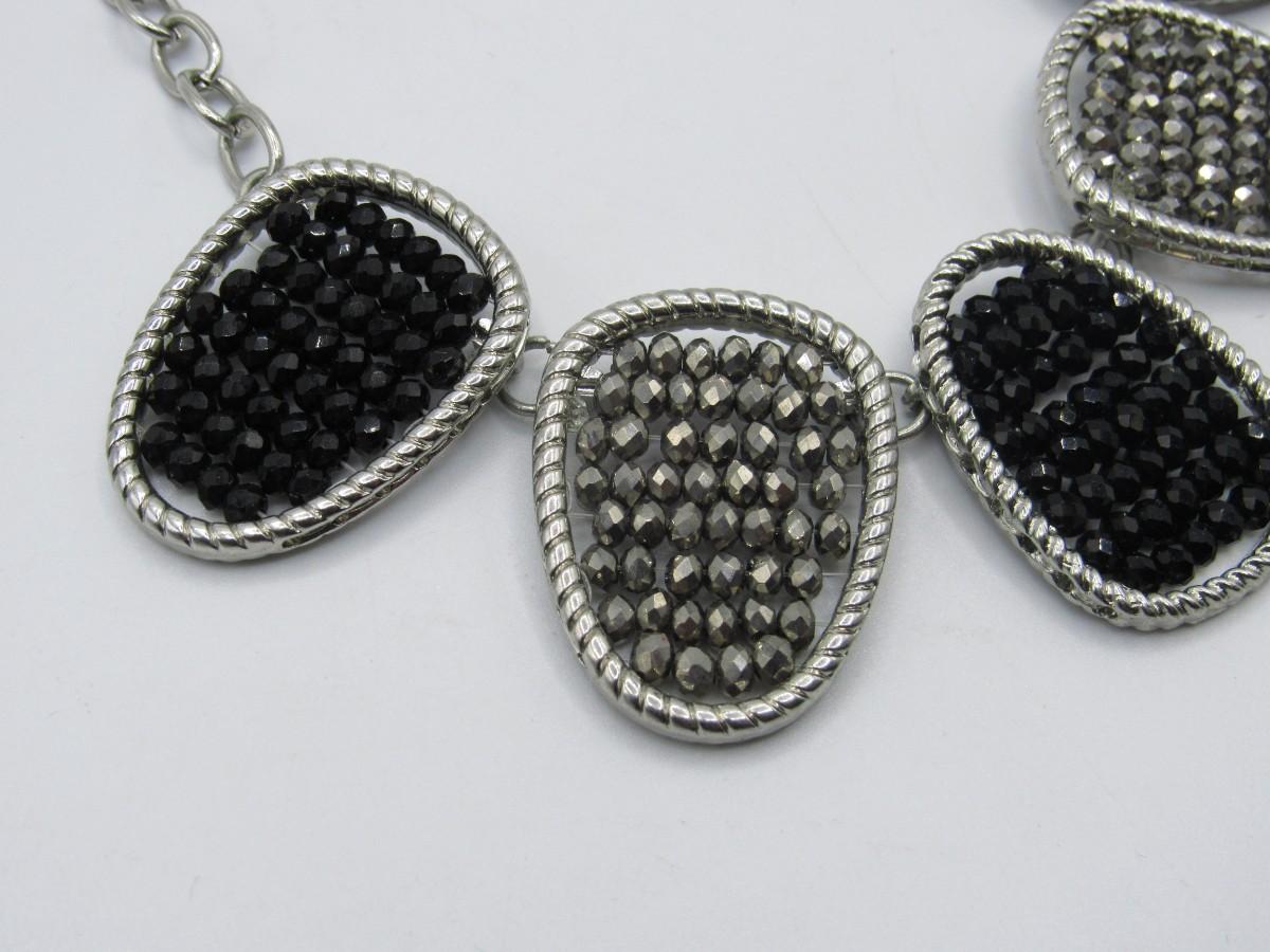Linked Black & Silver Beaded Jewelry Choker Style Necklace