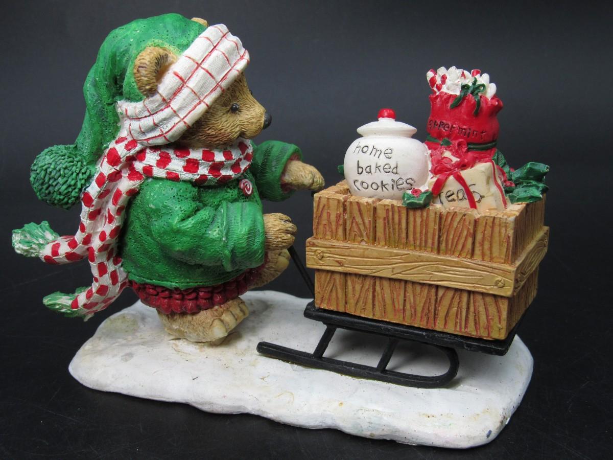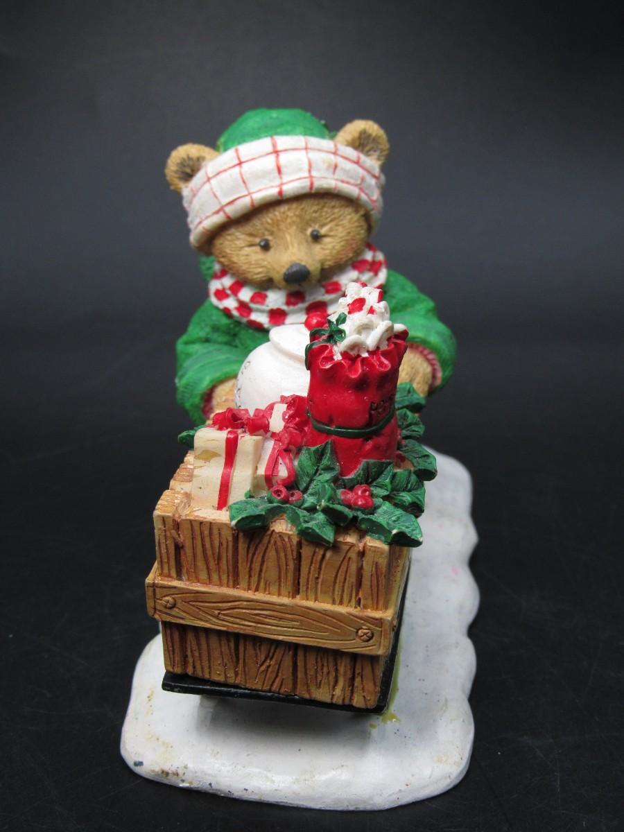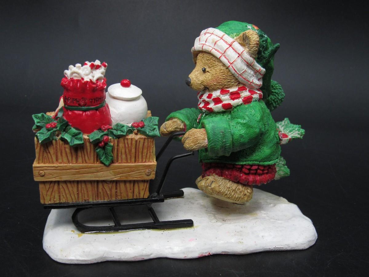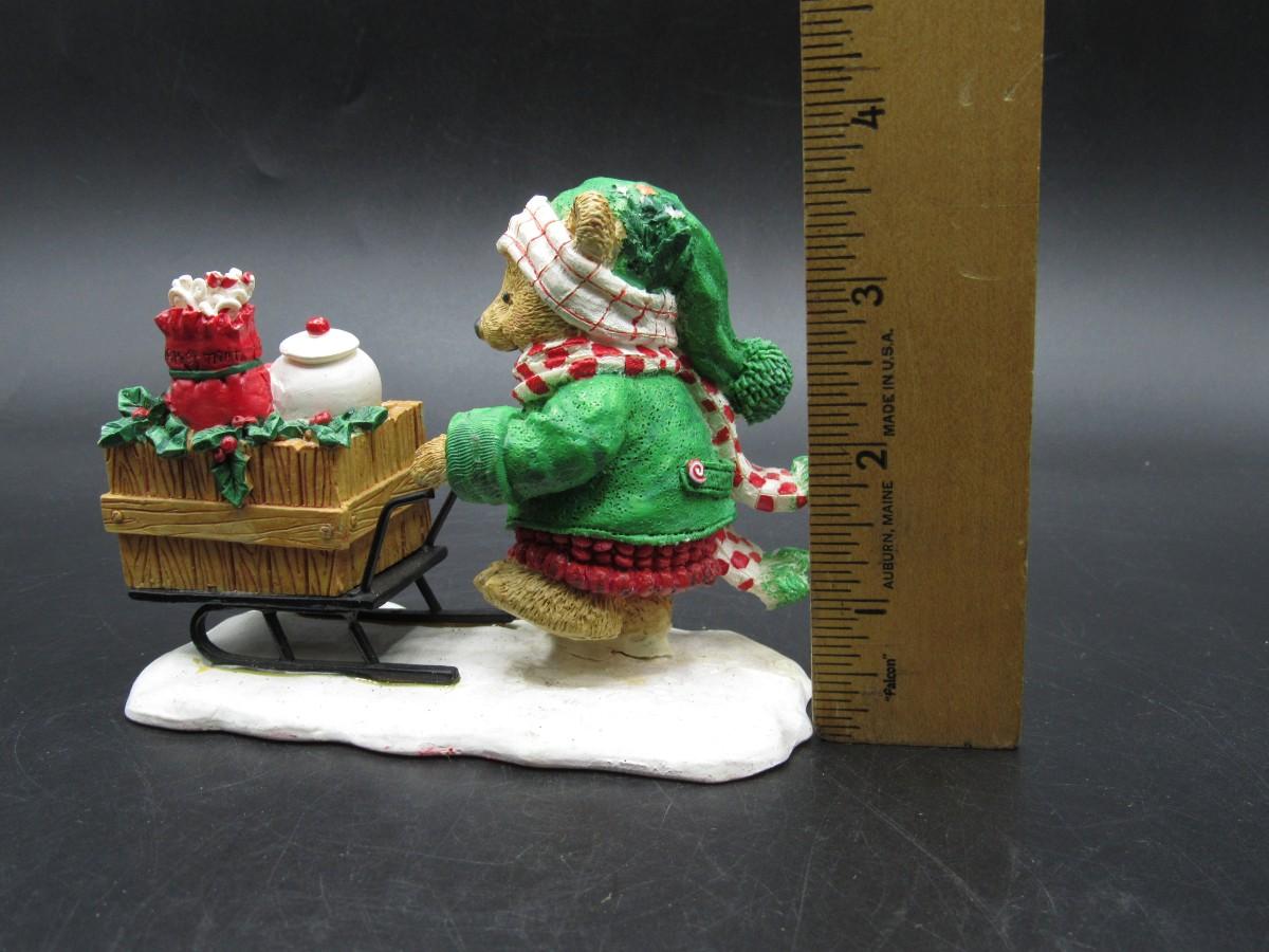 Small Holiday Christmas Decor Bear Pushing Sled Figurine