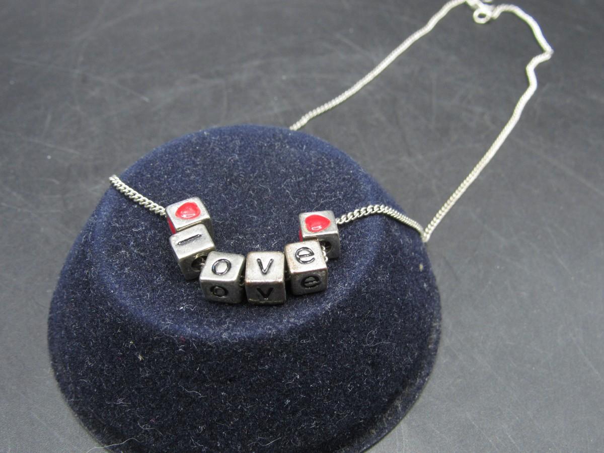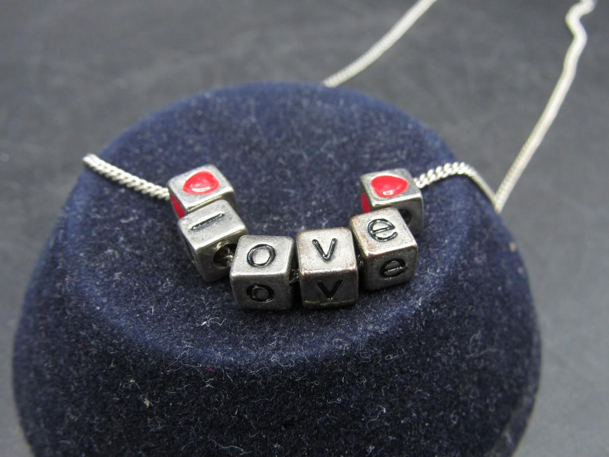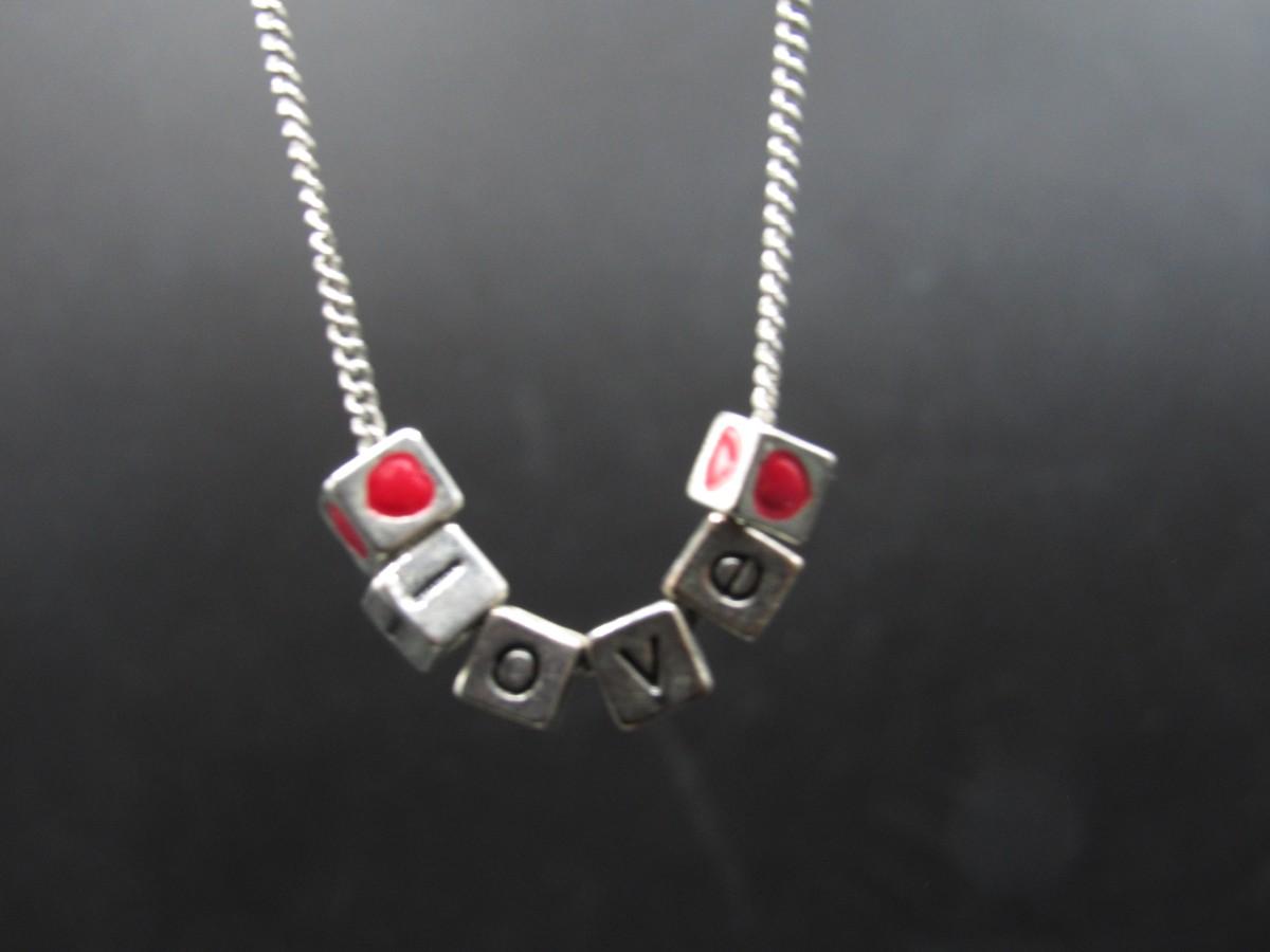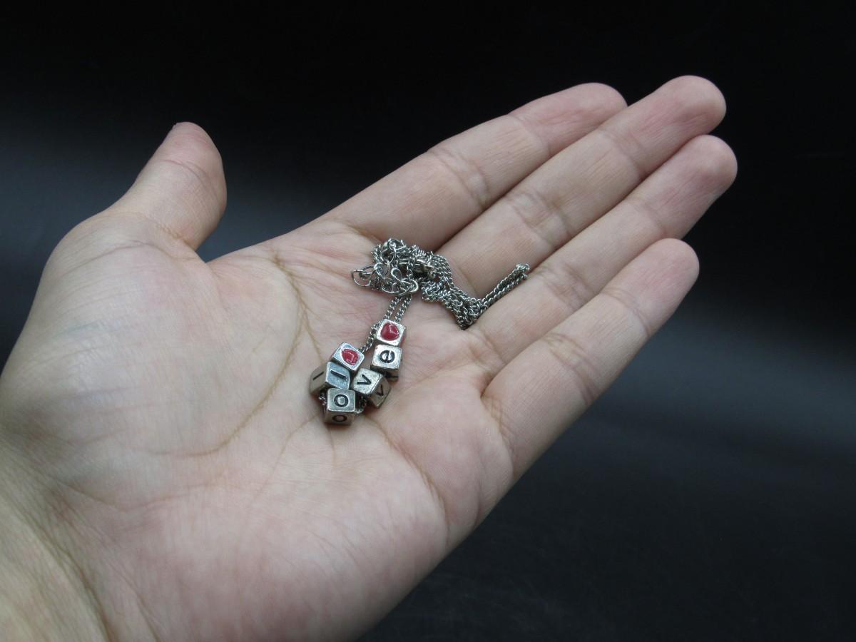 Small Cubed Love Letter Heart Charm Jewelry Necklace