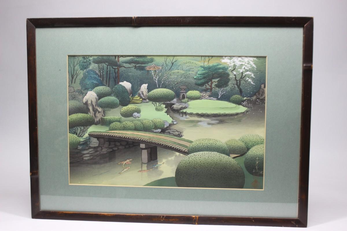 Ohno Bakufu Kurodani Garden in Kyoto Framed Collectible Woodblock Art Print