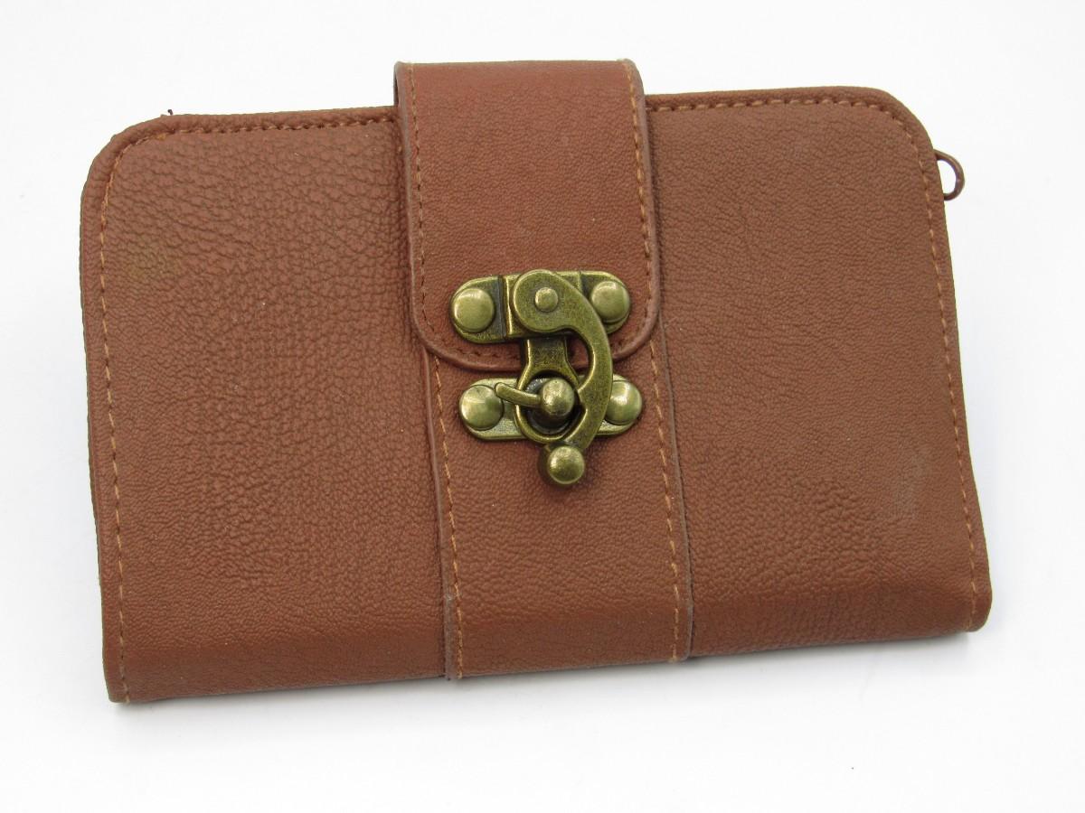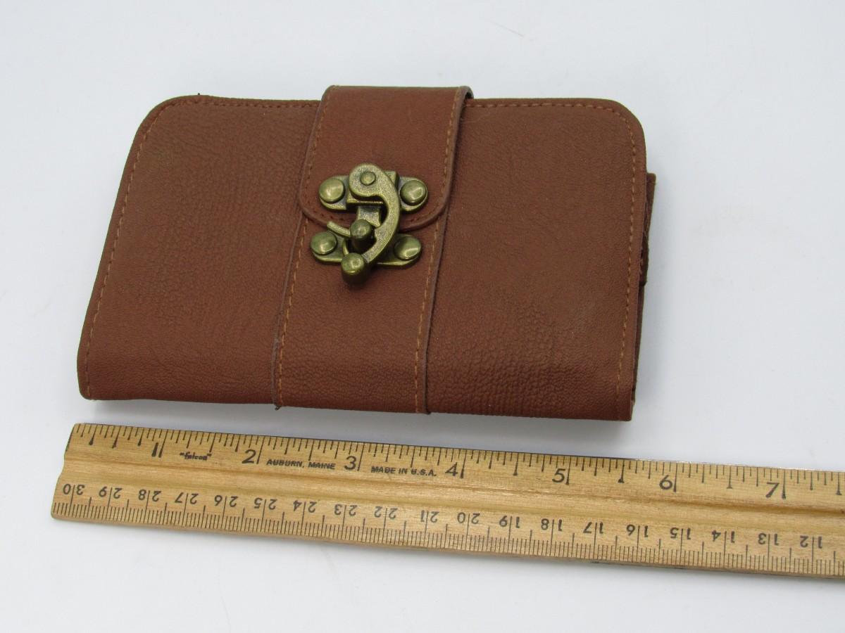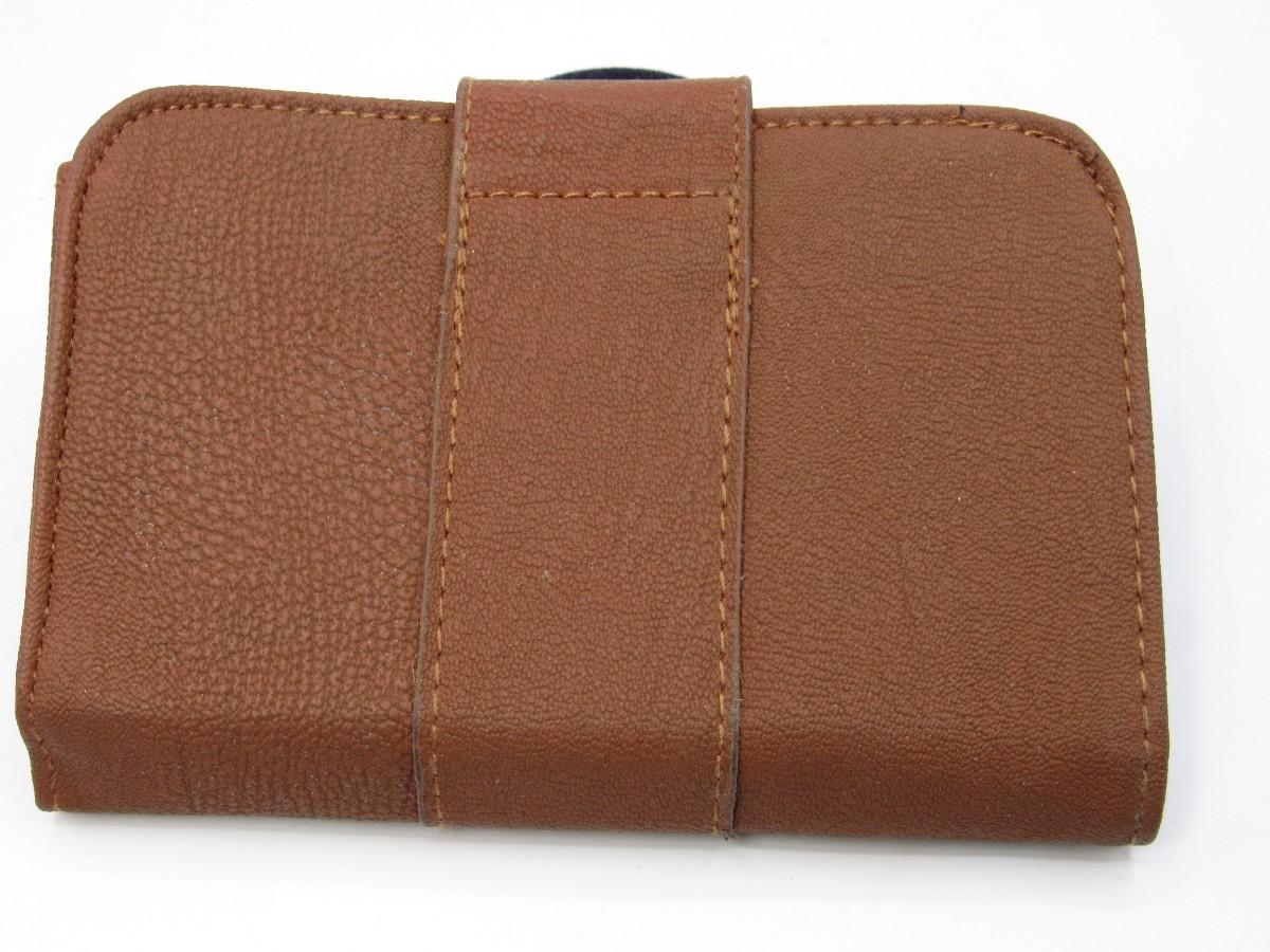 New Womens Brown Fastening Pin Zip Up Pouch Card Organizer Wallet