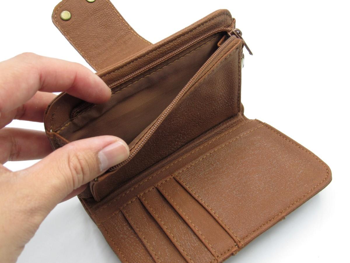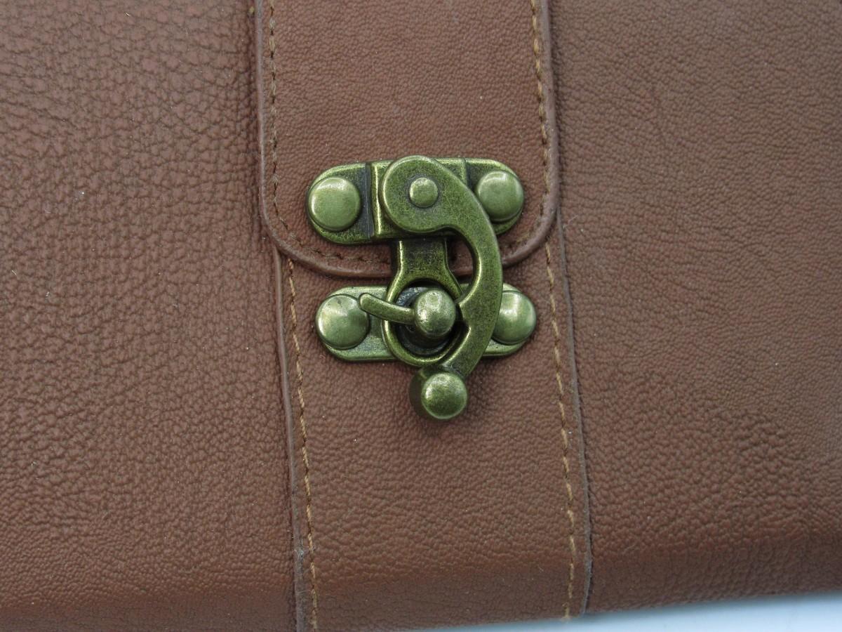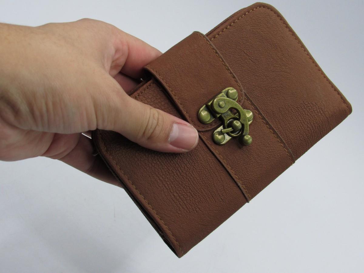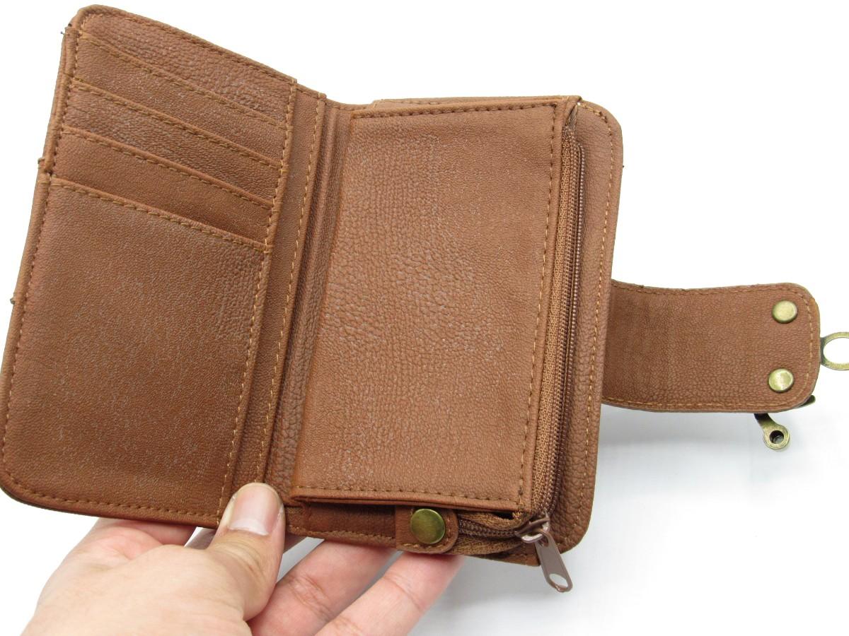 New Womens Brown Fastening Pin Zip Up Pouch Card Organizer Wallet