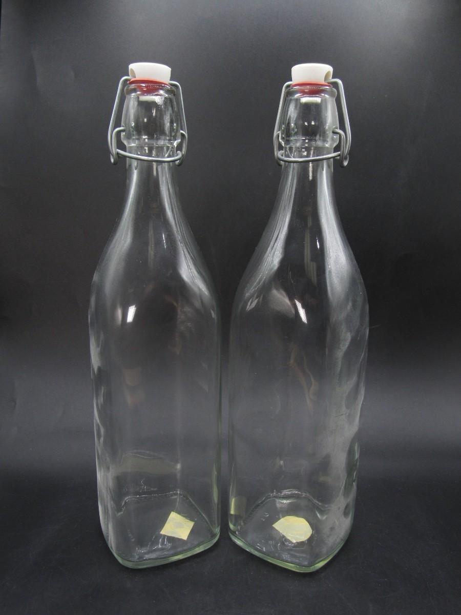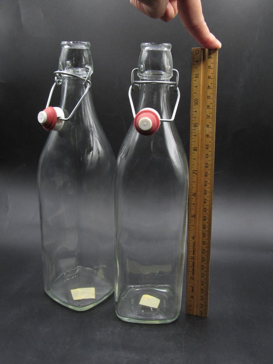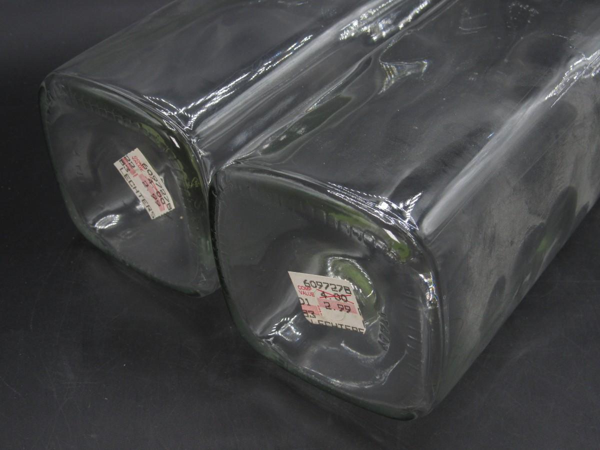 Pair of Retro Tall Sealing Glass Liquor Mixing Drinking Storage Bottles