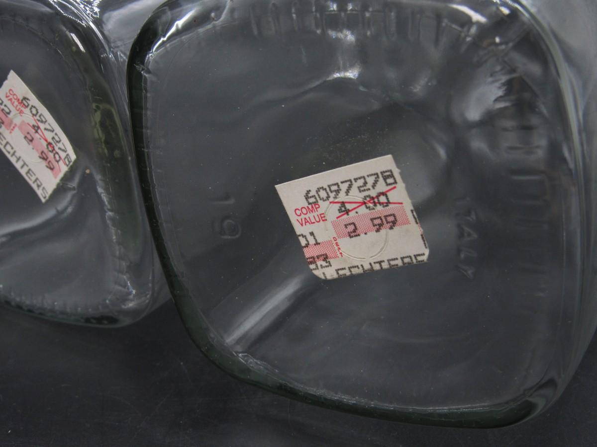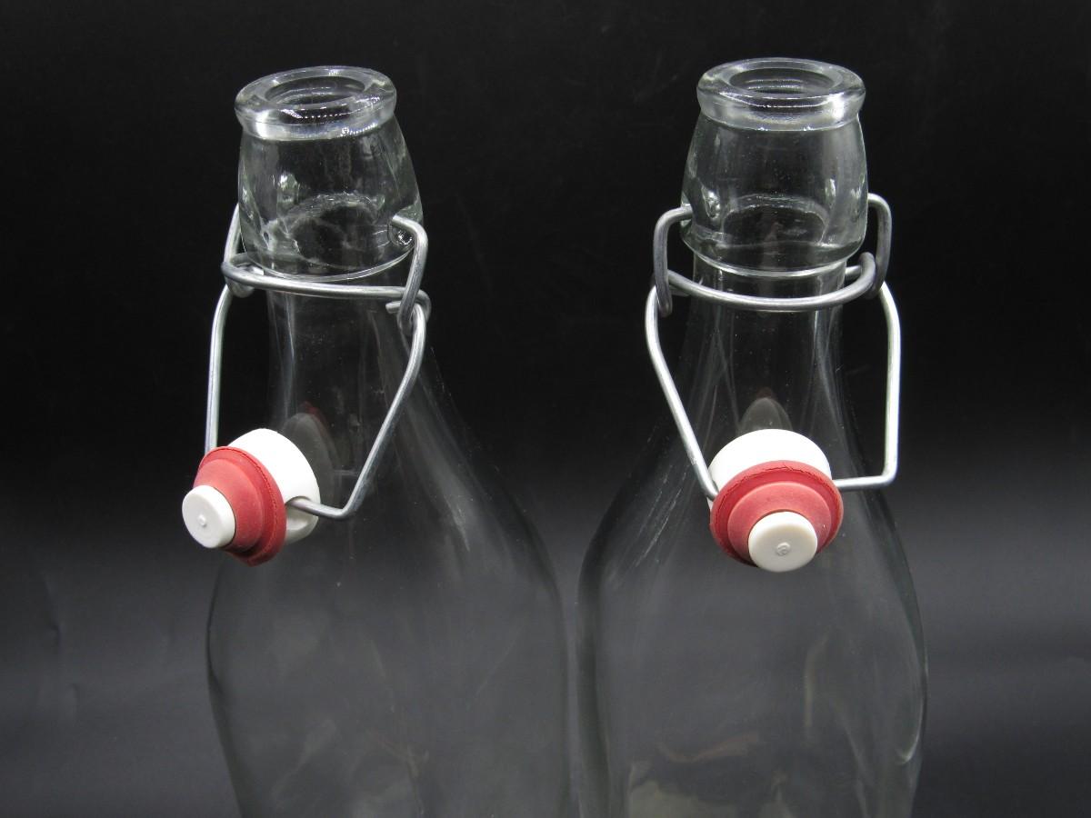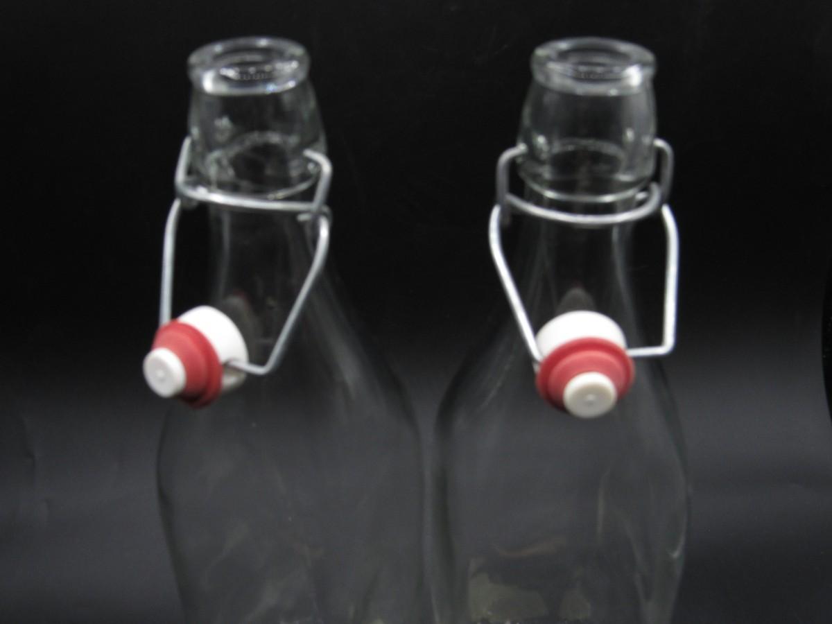 Pair of Retro Tall Sealing Glass Liquor Mixing Drinking Storage Bottles